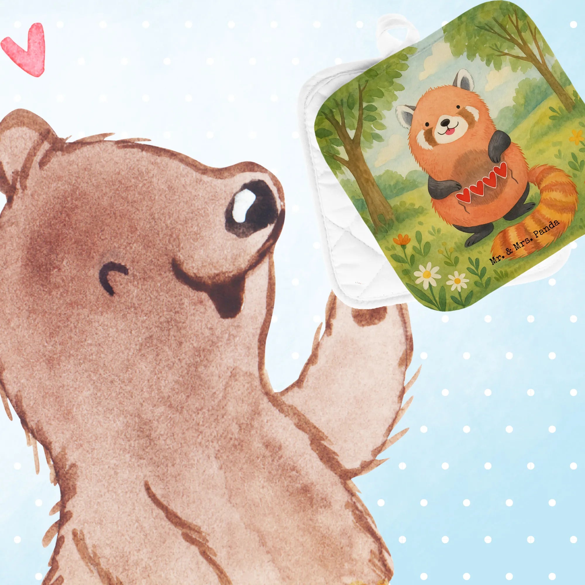 2er Set Topflappen  Roter Panda Design Topflappen, Topfuntersetzer, Ofenhandschuh, Topflappen Set, Topflappen lustig, Topflappen mit Spruch, Ofenhandschuhe, Topfhandschuhe, Topfhandschuh, Topflappenset, Topflappen 2er Set, Schöne Topflappen, Tiermotive, Gute Laune, lustige Sprüche, Tiere, Panda, Liebe, Rot, Herz, Liebling, Lieblingsmensch