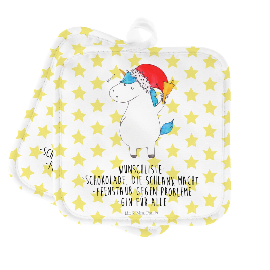2-elementowy zestaw podkładek pod garnki Jednorożec Mikołaj - z napisem - biały