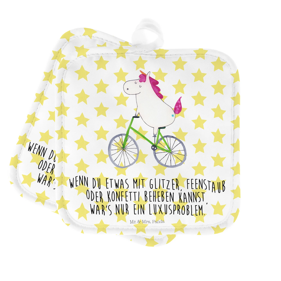 2-elementowy zestaw podkładek pod garnki Jednorożec Rowerzysta - z napisem - Biały