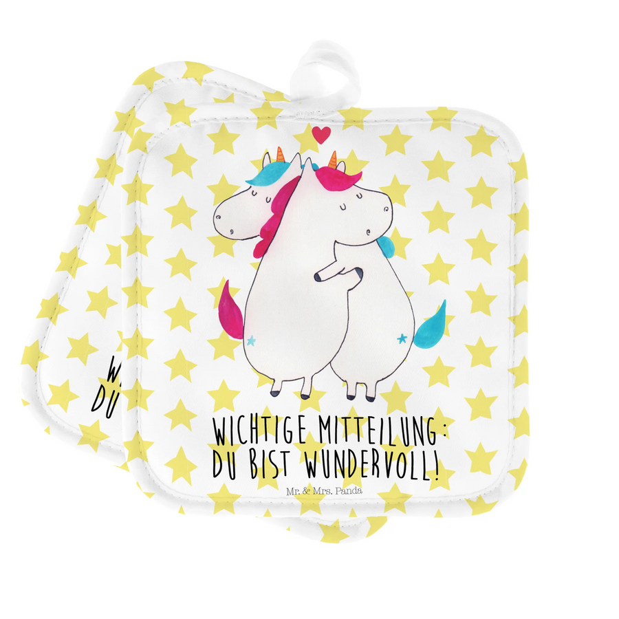 2-elementowy zestaw podkładek pod garnki jednorożec Wiadomość - z napisem - Biały