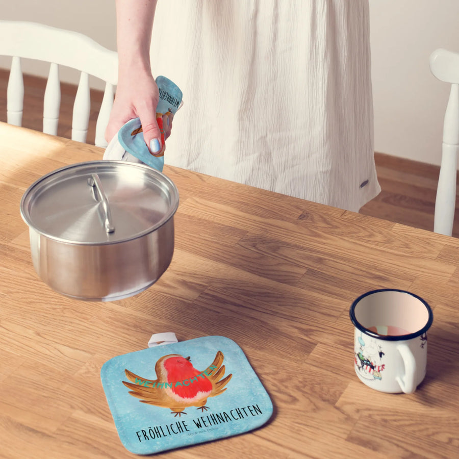 2-elementowy zestaw podkładek pod garnki rudzik Boże Narodzenie - z napisem - lodowoniebieski