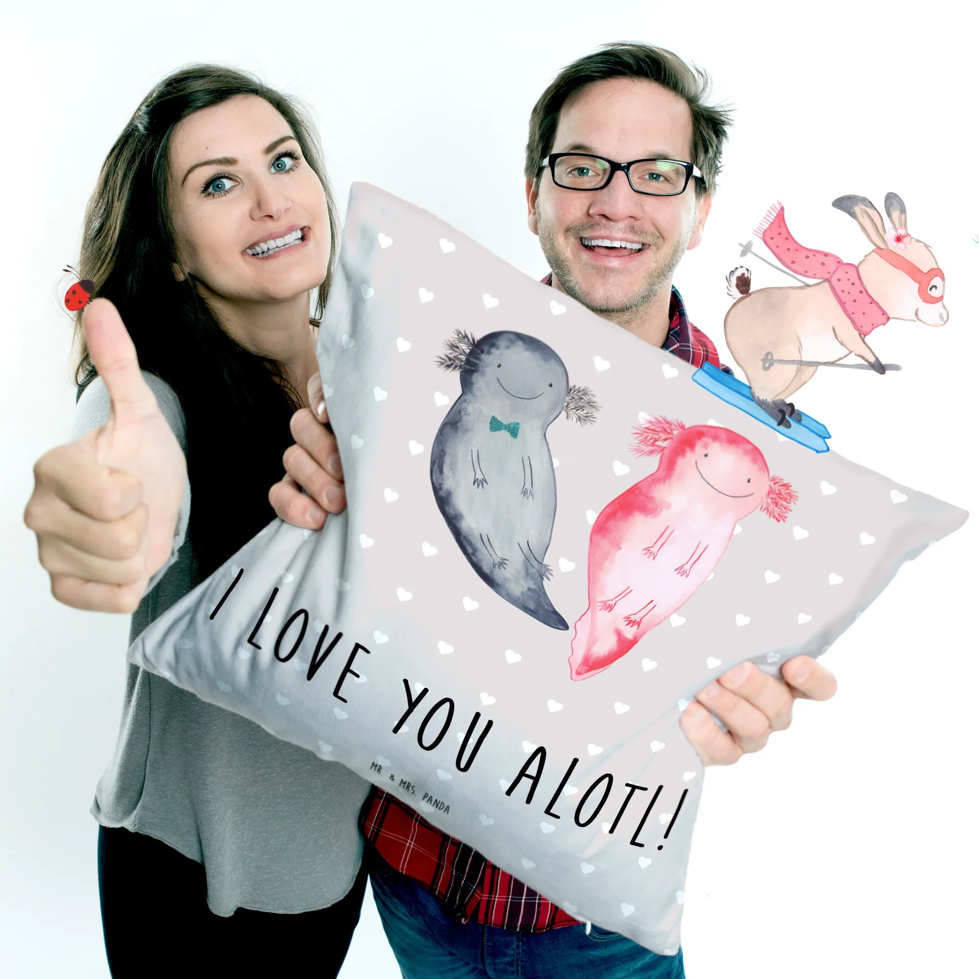 Kuscheliges Mr. & Mrs. Panda Kissen „Axolotl Liebe“ – dein neuer Liebling für Sofa & Schlafzimmer