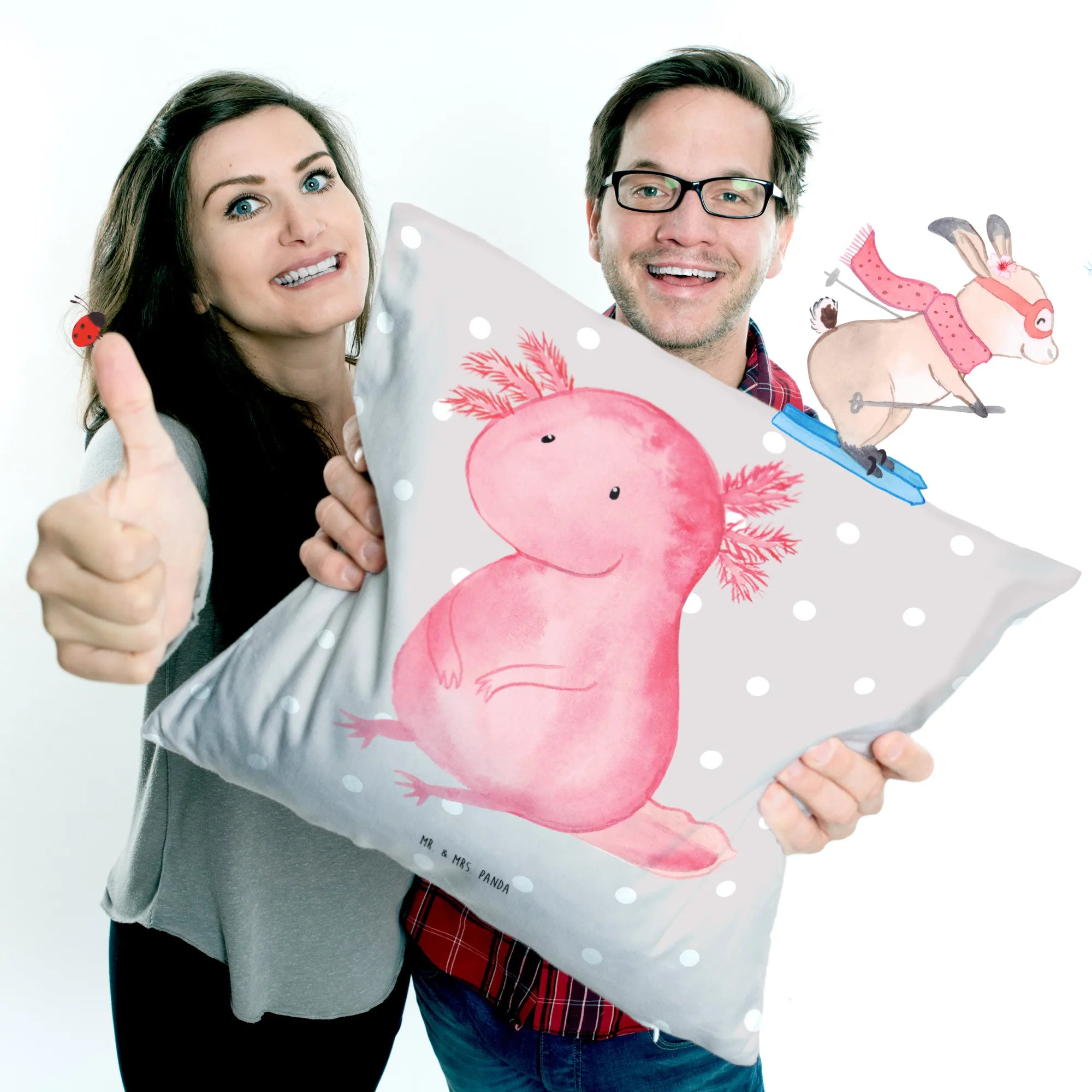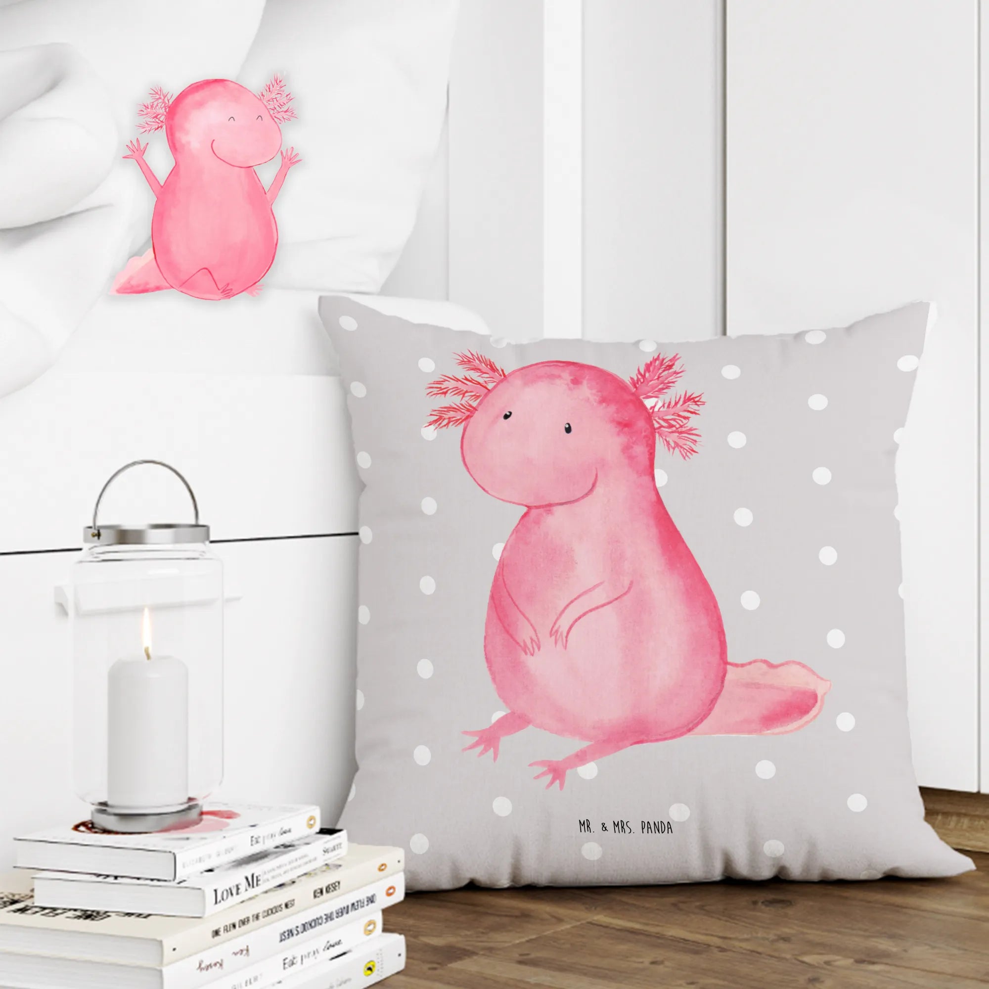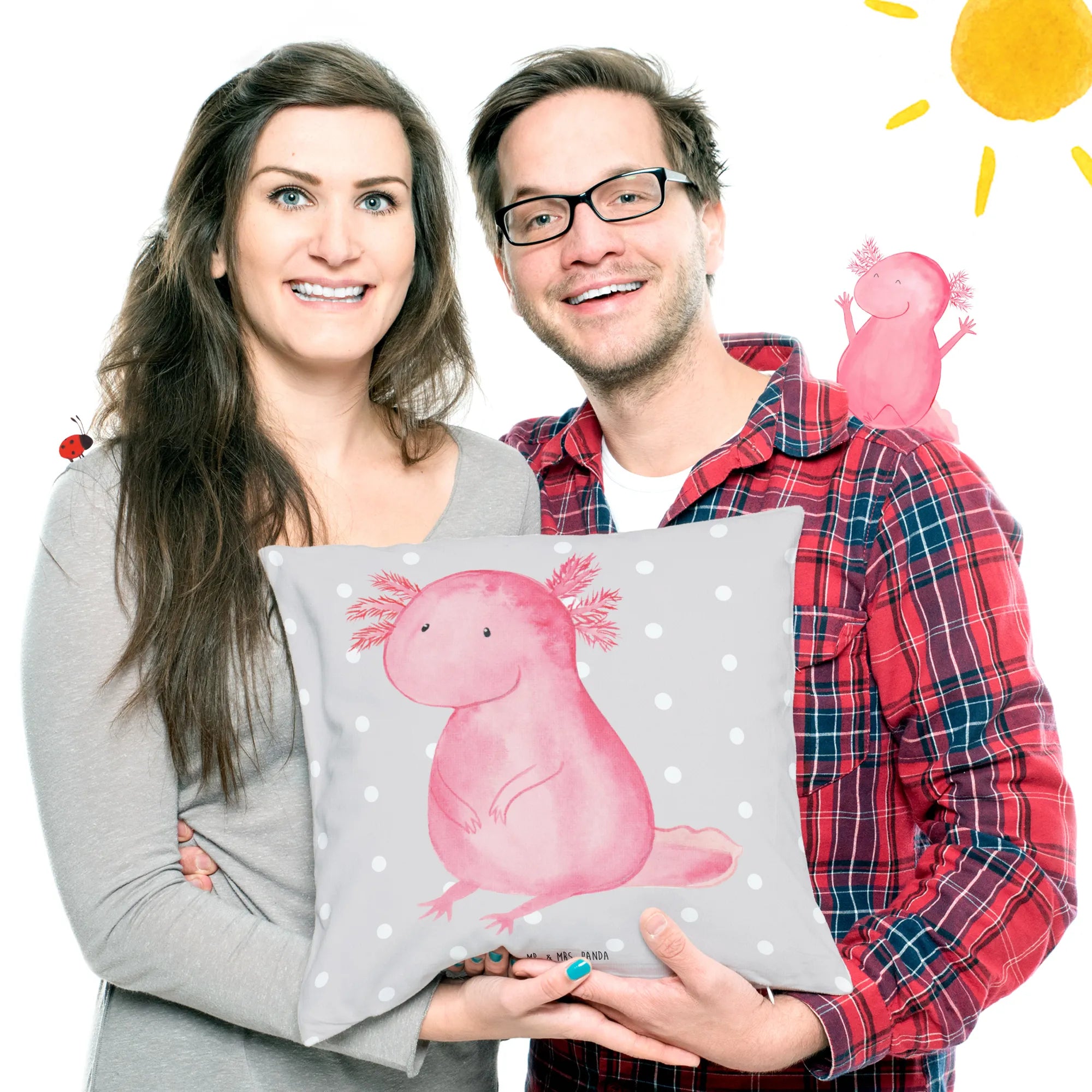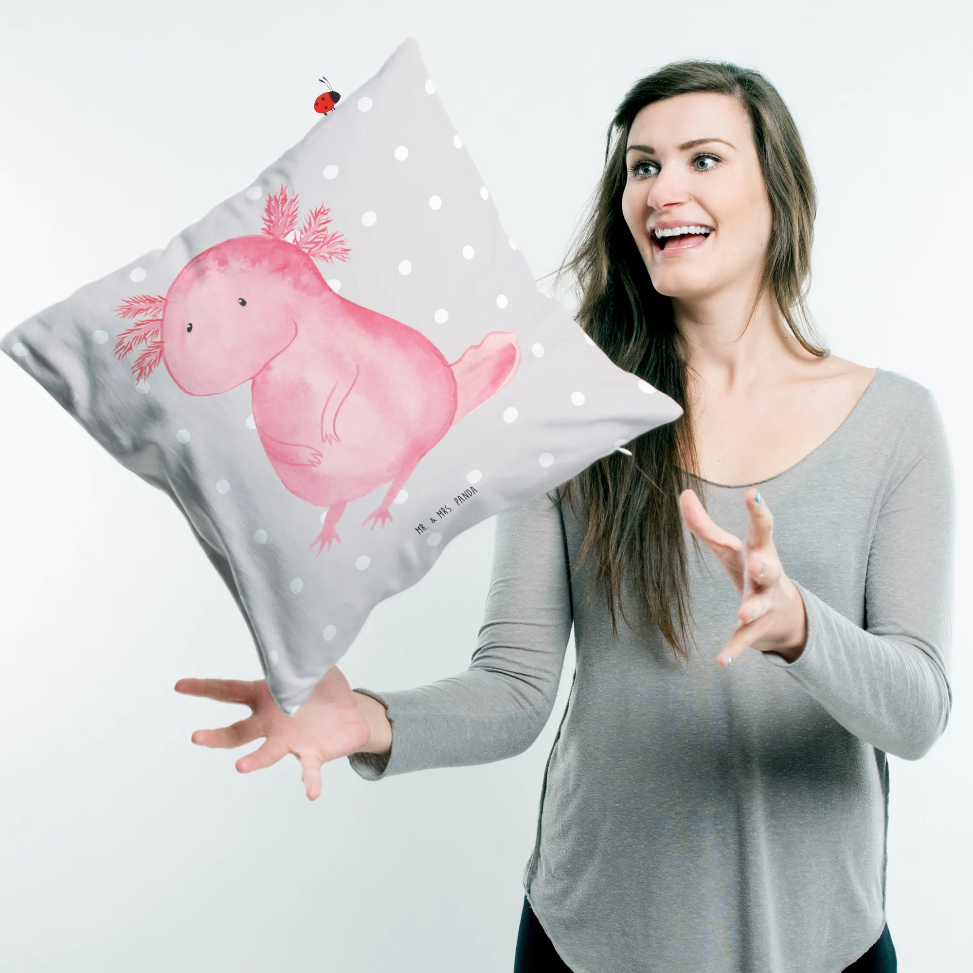 40x40 poduszka aksolotl null - z napisem - Pastelowy szary