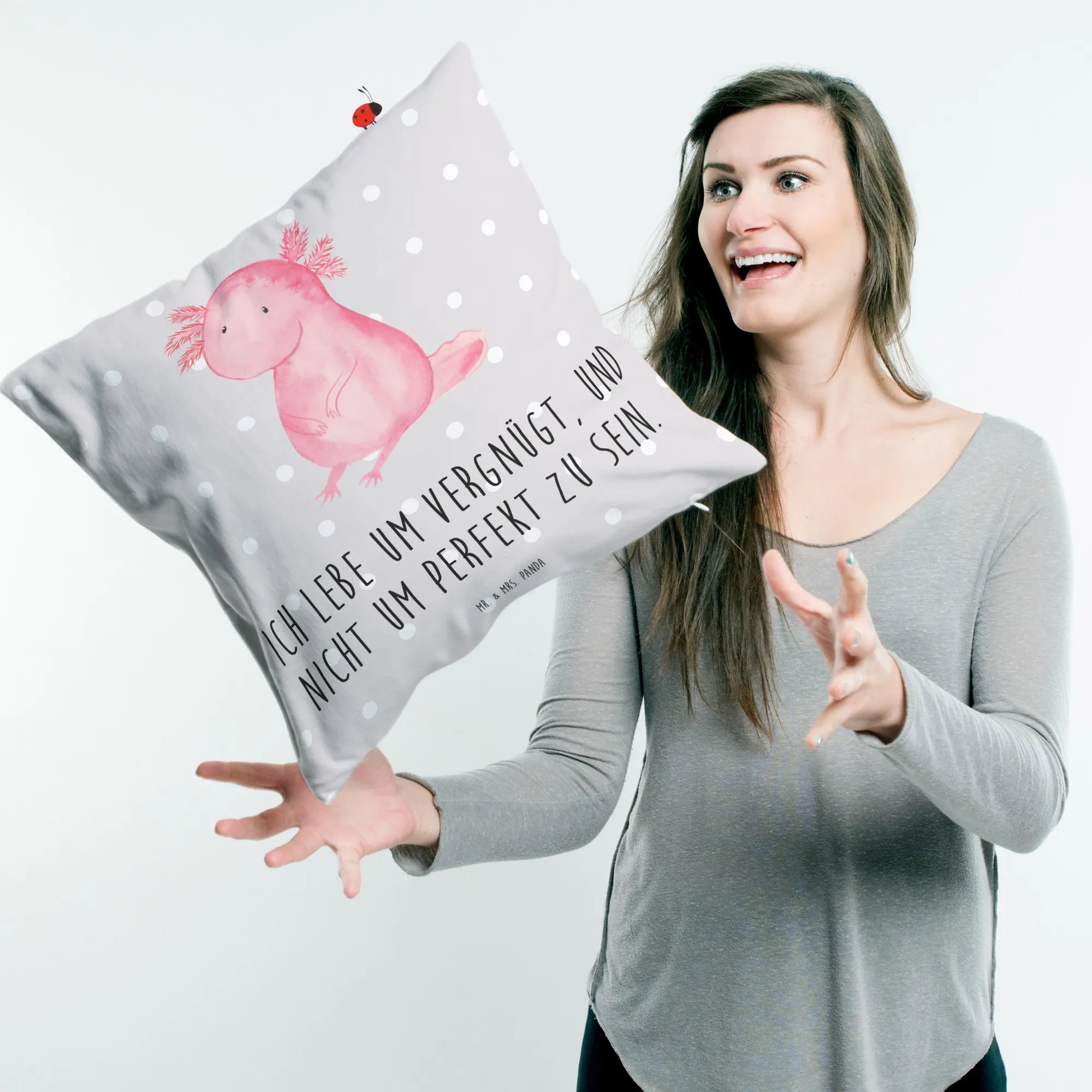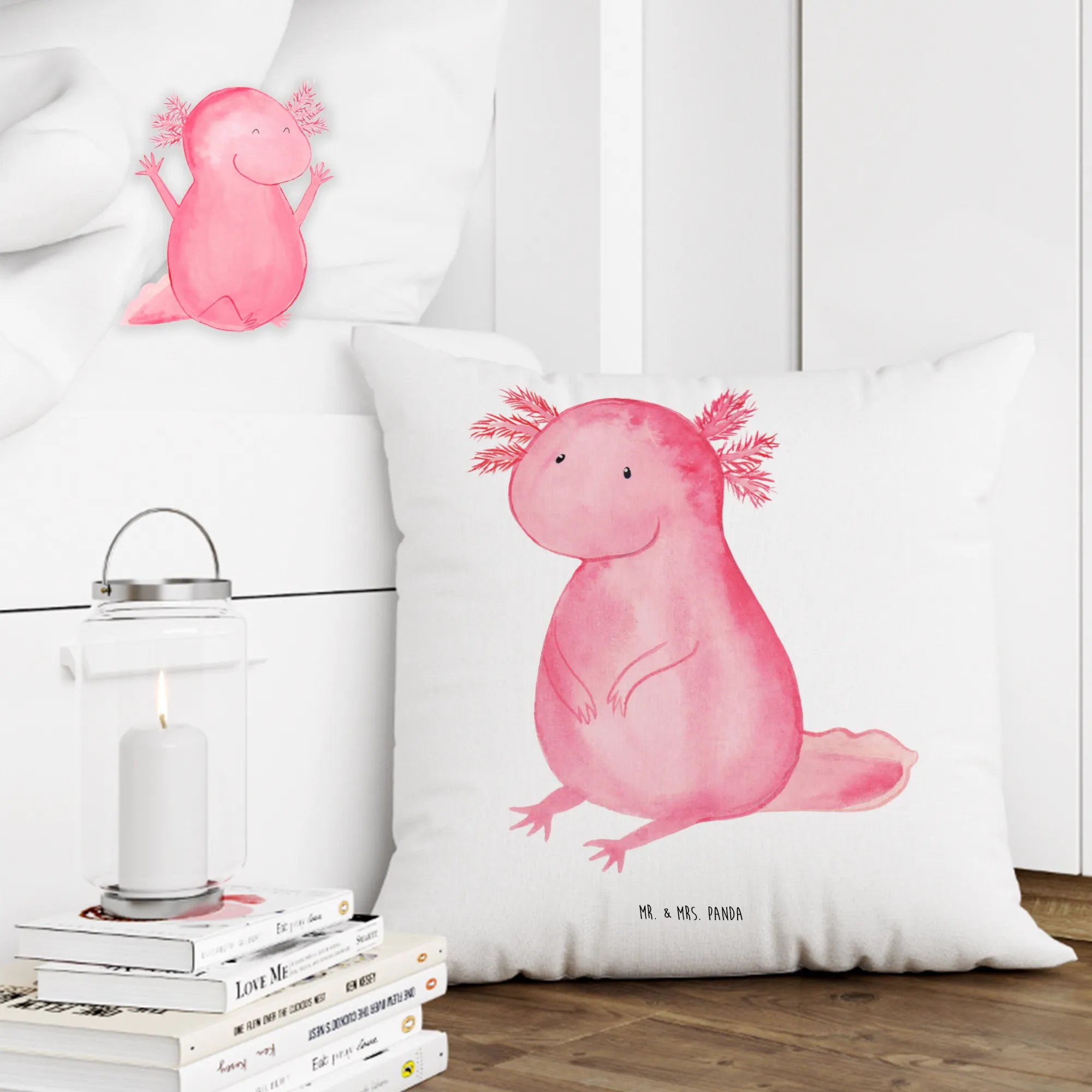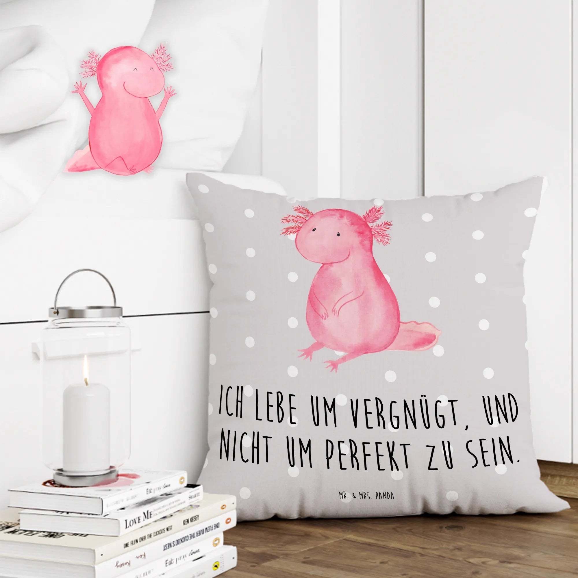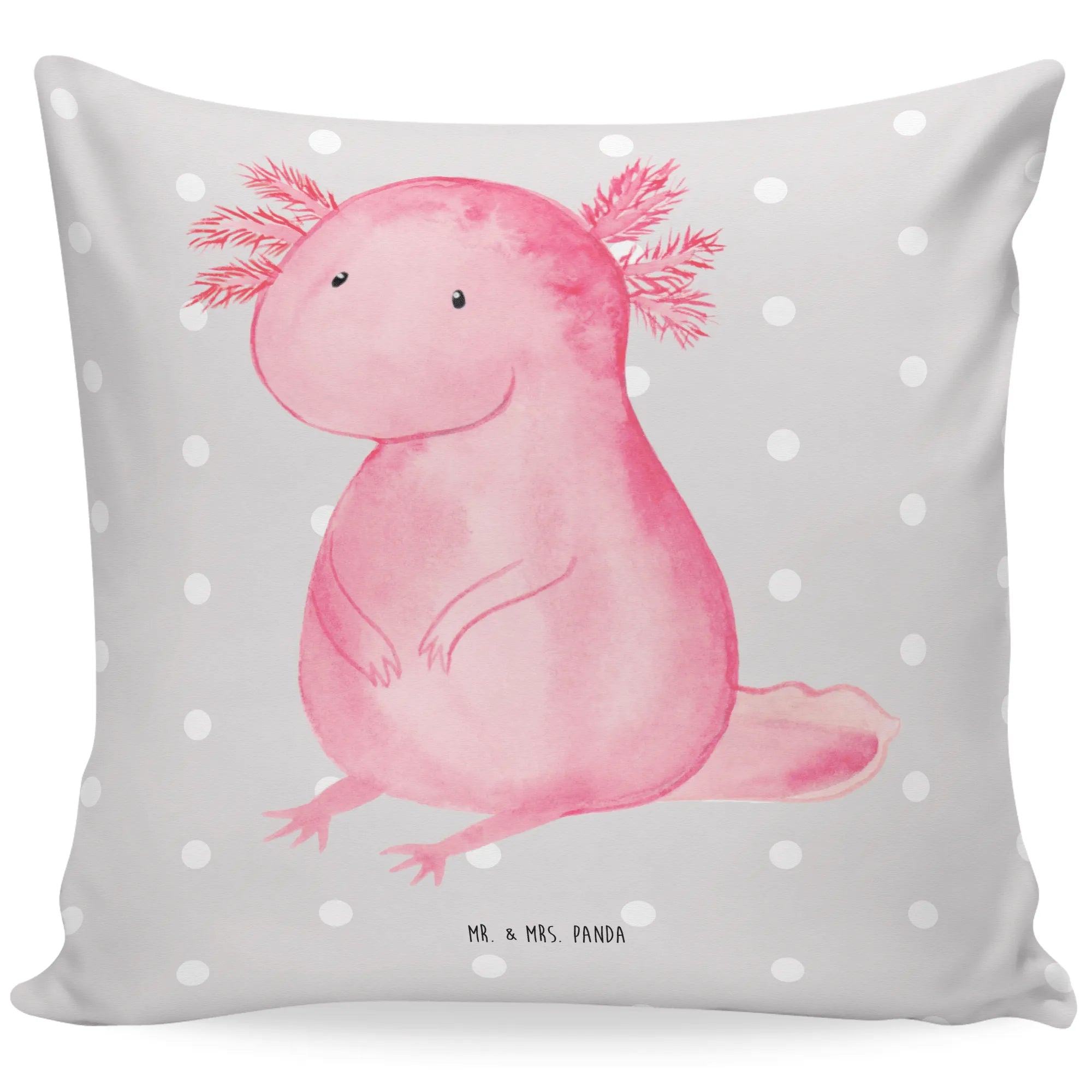 40x40 poduszka aksolotl null - z napisem - Pastelowy szary