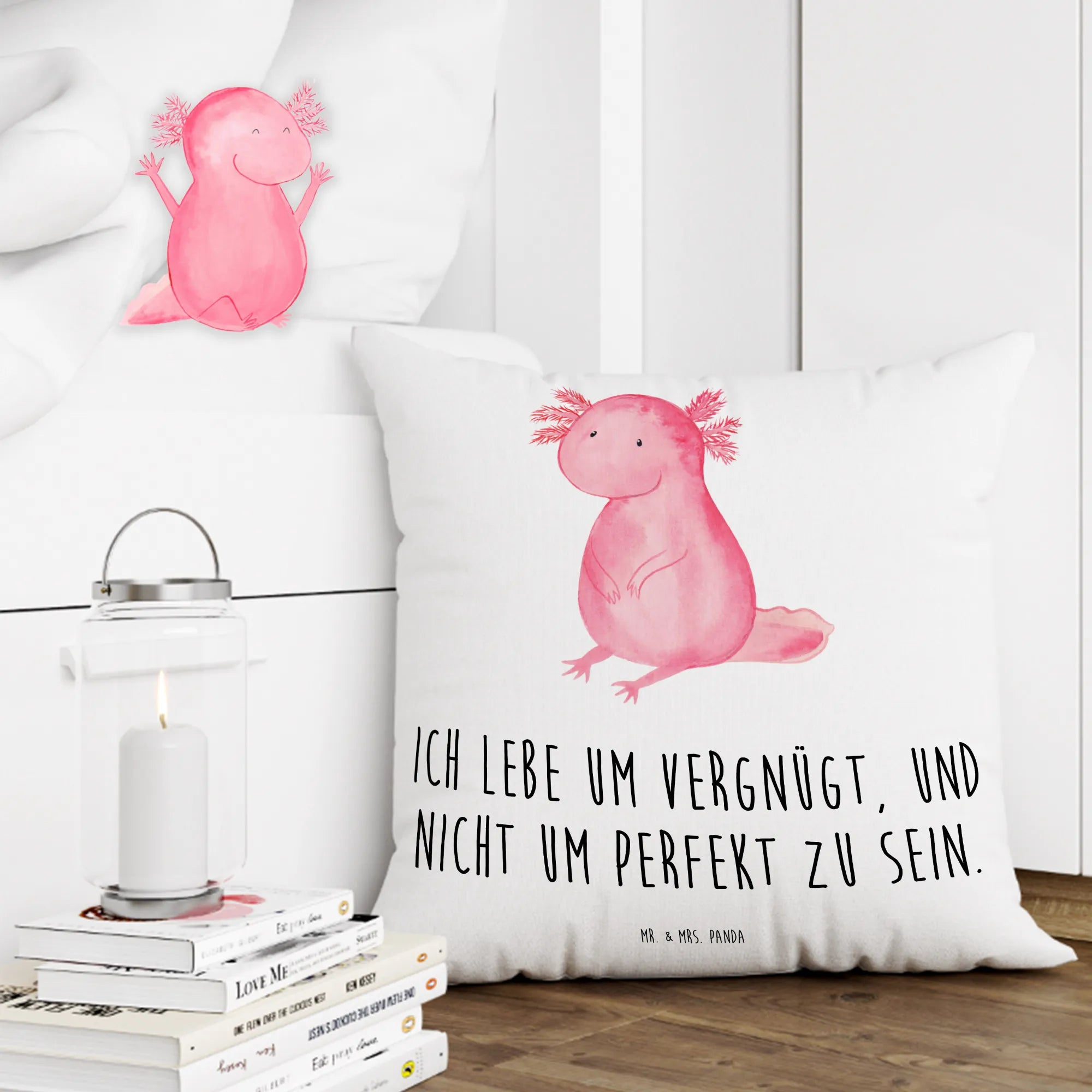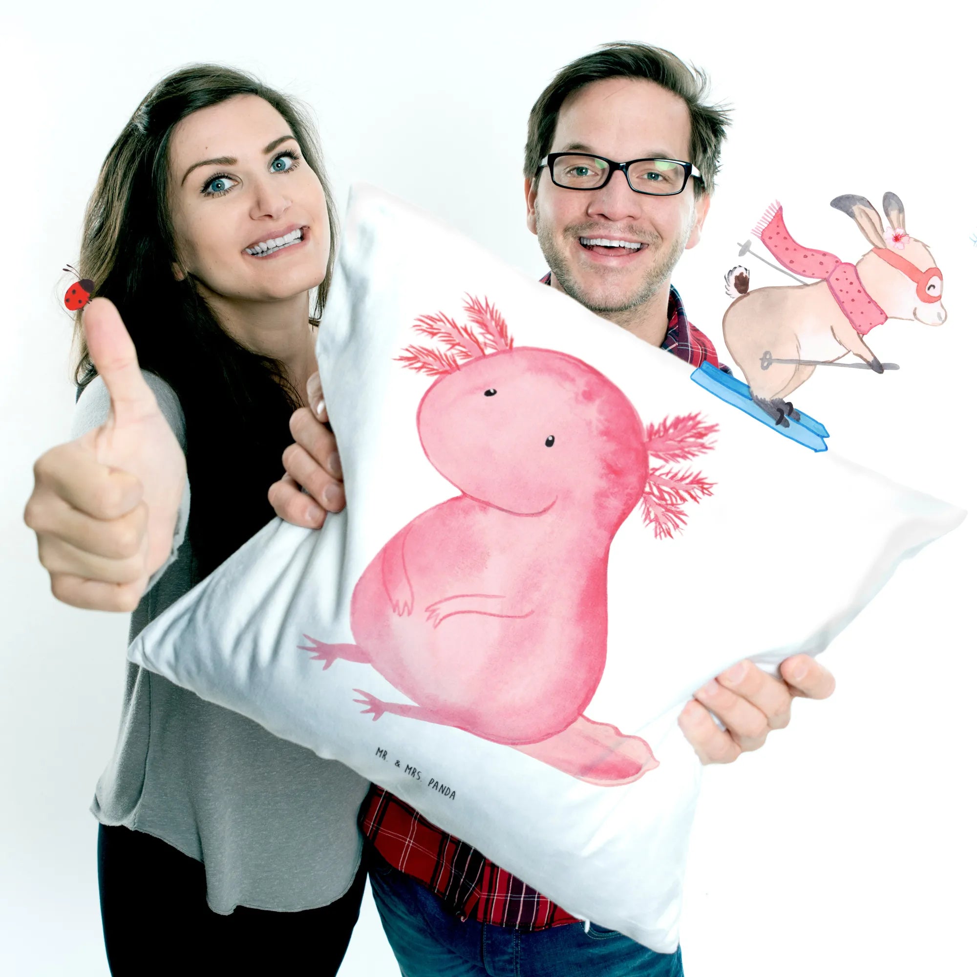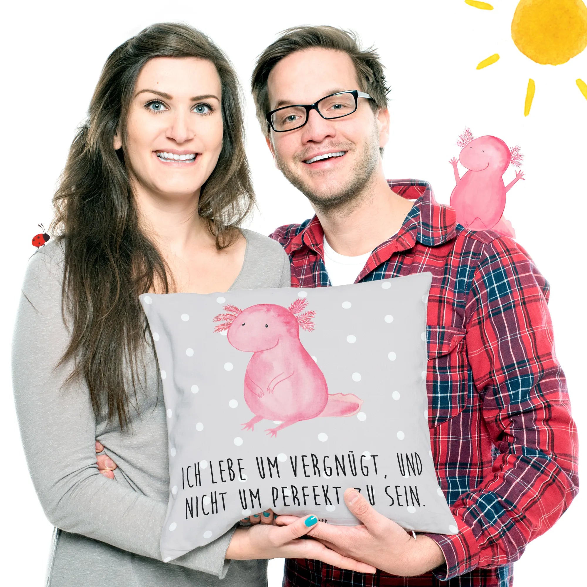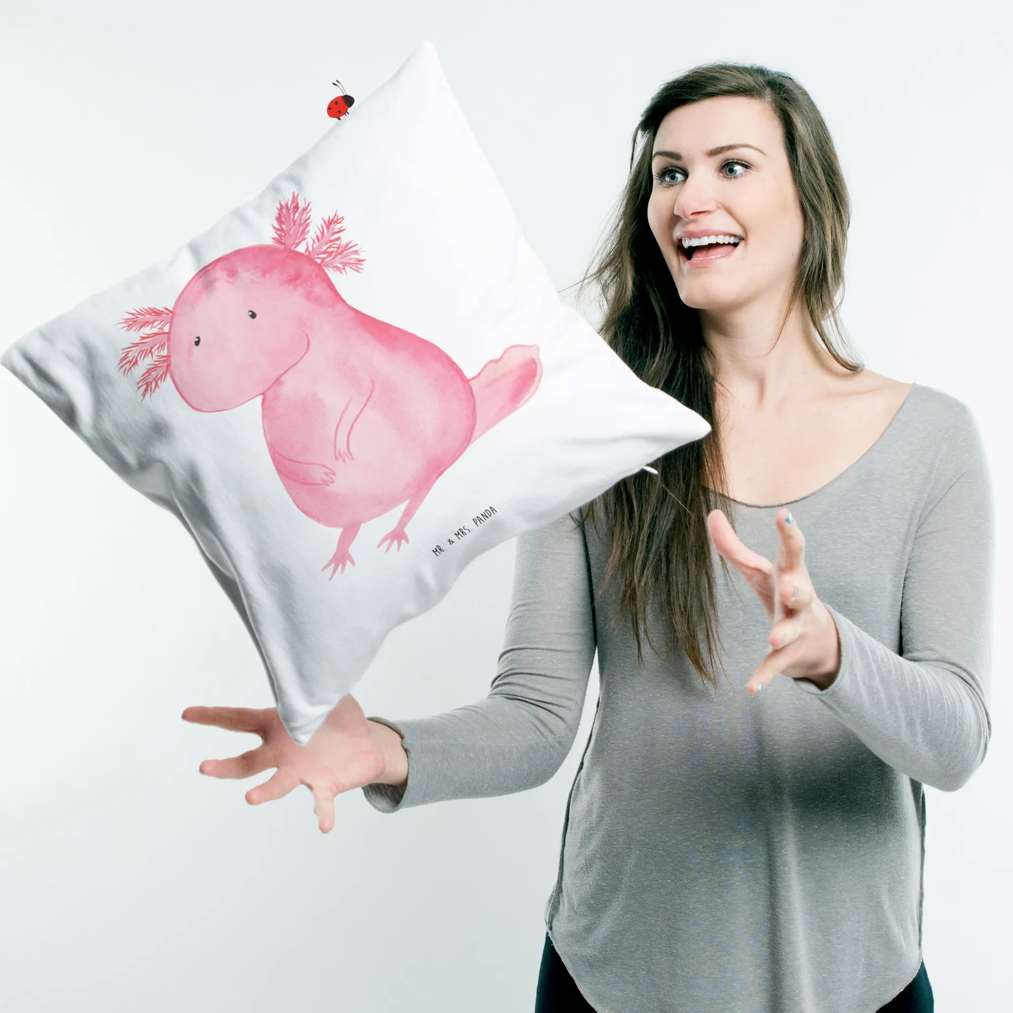 40x40 poduszka aksolotl null - z napisem - Pastelowy szary