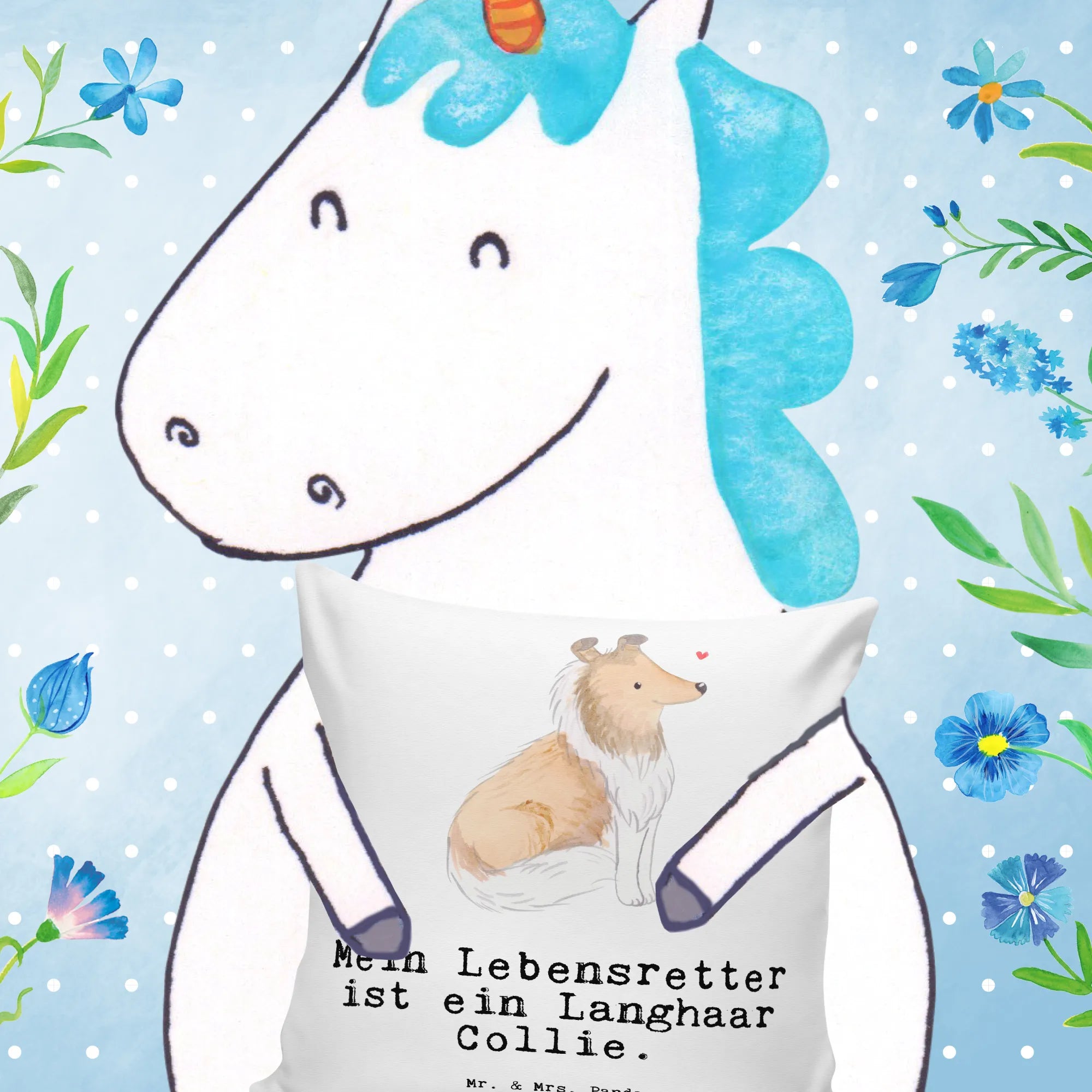 40x40 poduszka długowłosy collie Ratownik życia – Mr. & Mrs. Panda
