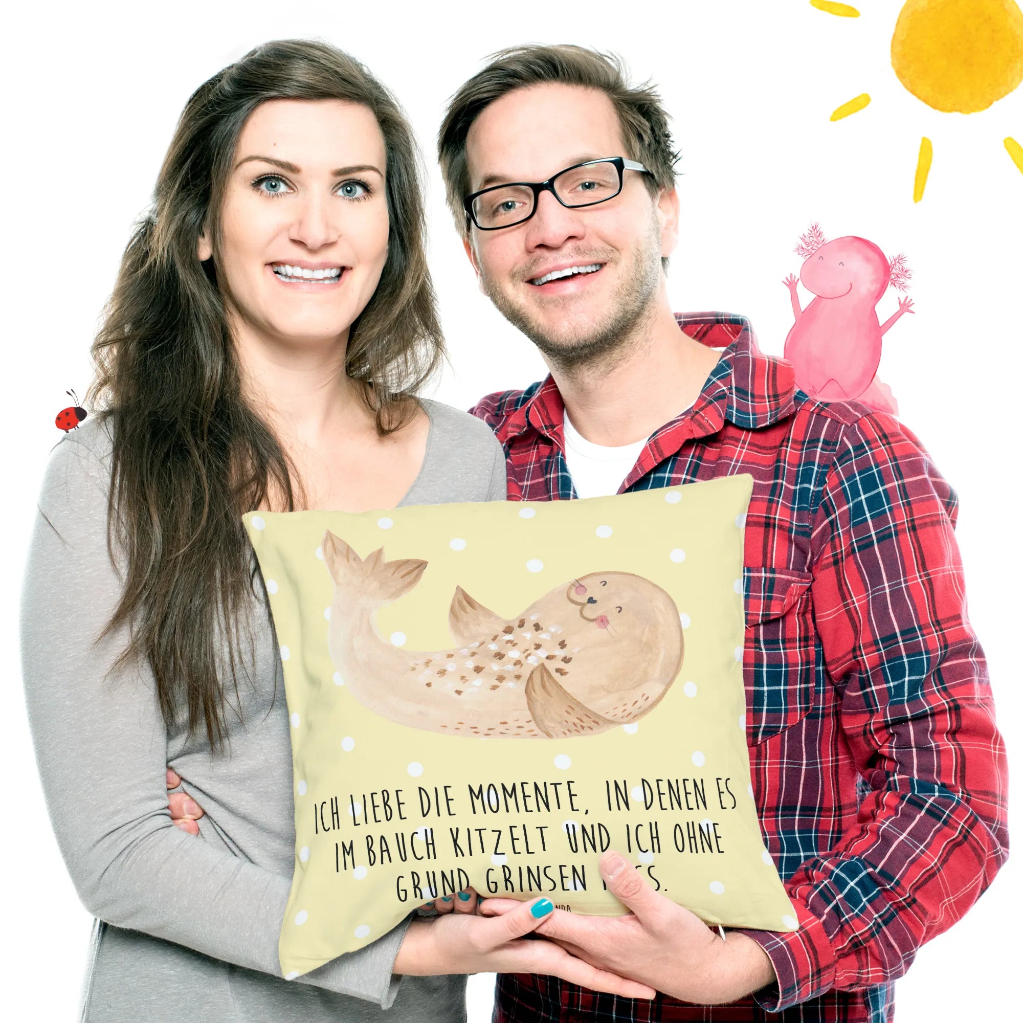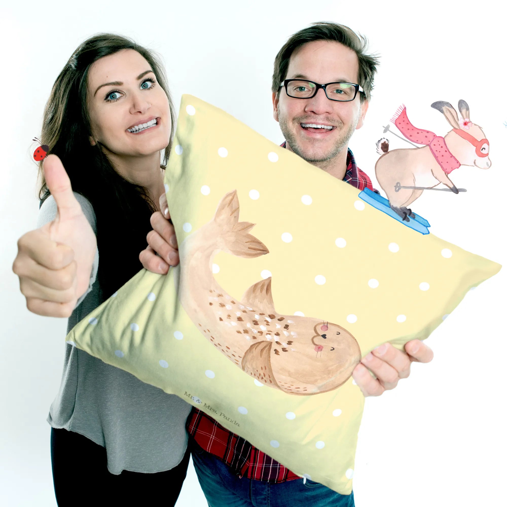 40x40 poduszka foka Leżeć - z napisem - Pastelowy żółty