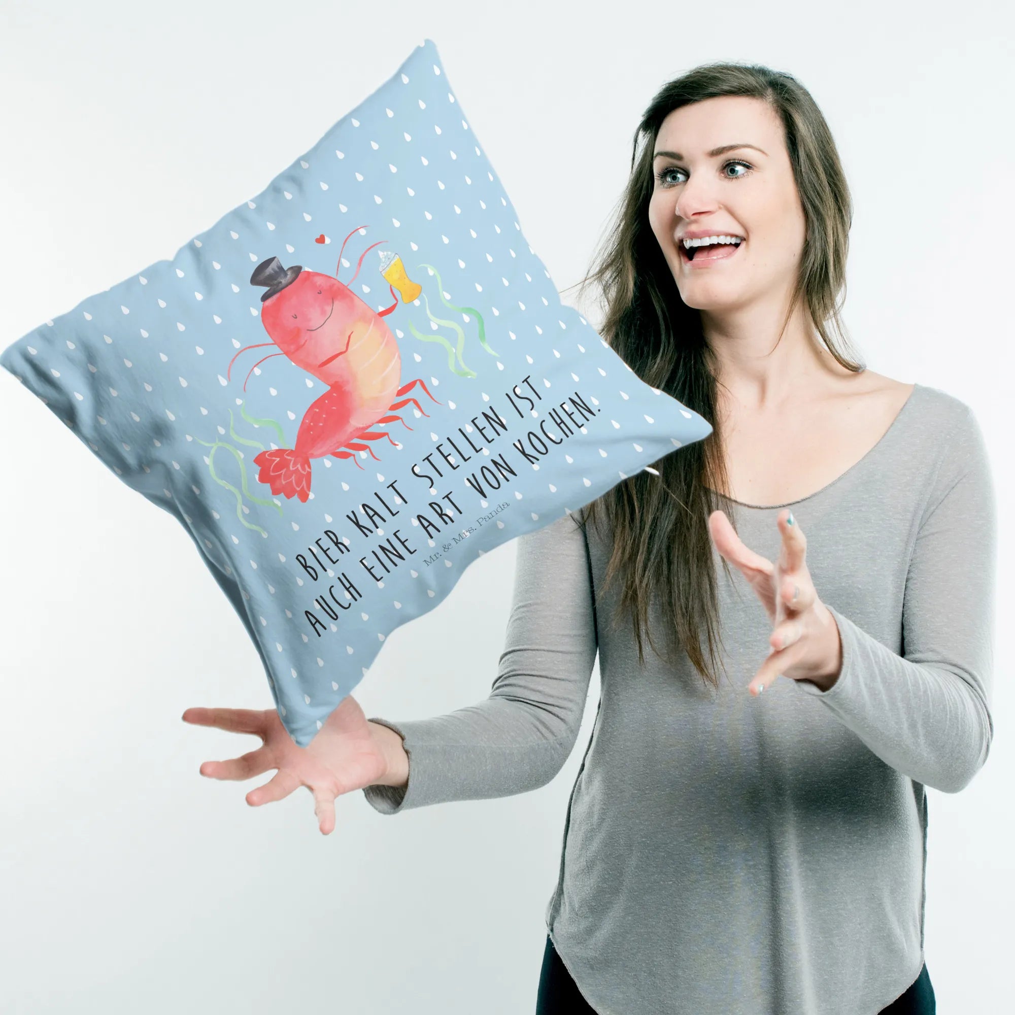 40x40 poduszka homar pszenica - z napisem - Pastelowy niebieski