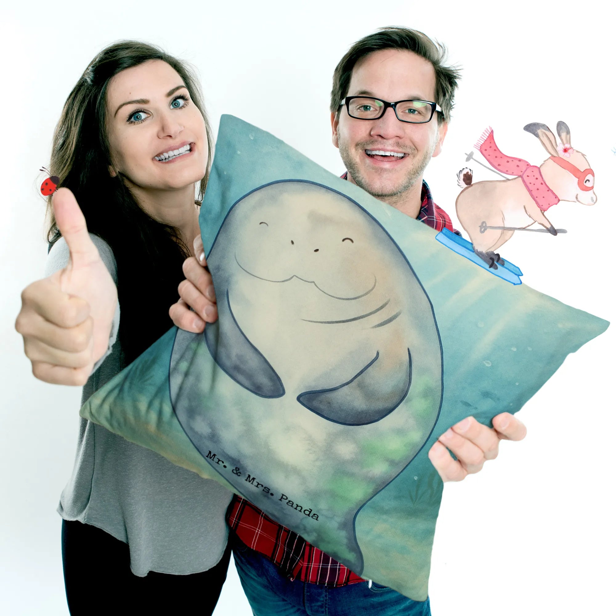 Mr. & Mrs. Panda – Kuscheliges 40x40 Kissen „Seekuh happy“ aus der Meerestiere Kollektion