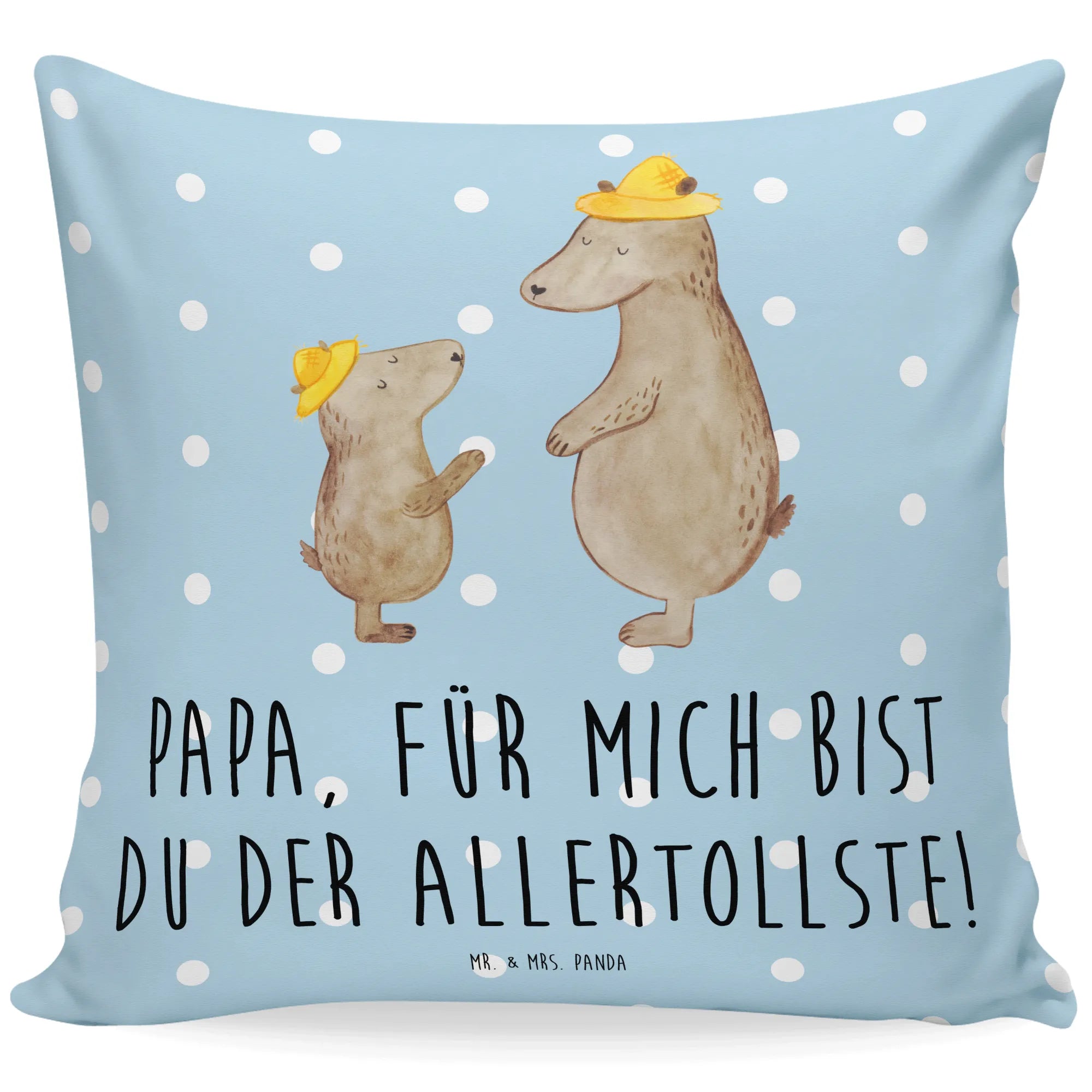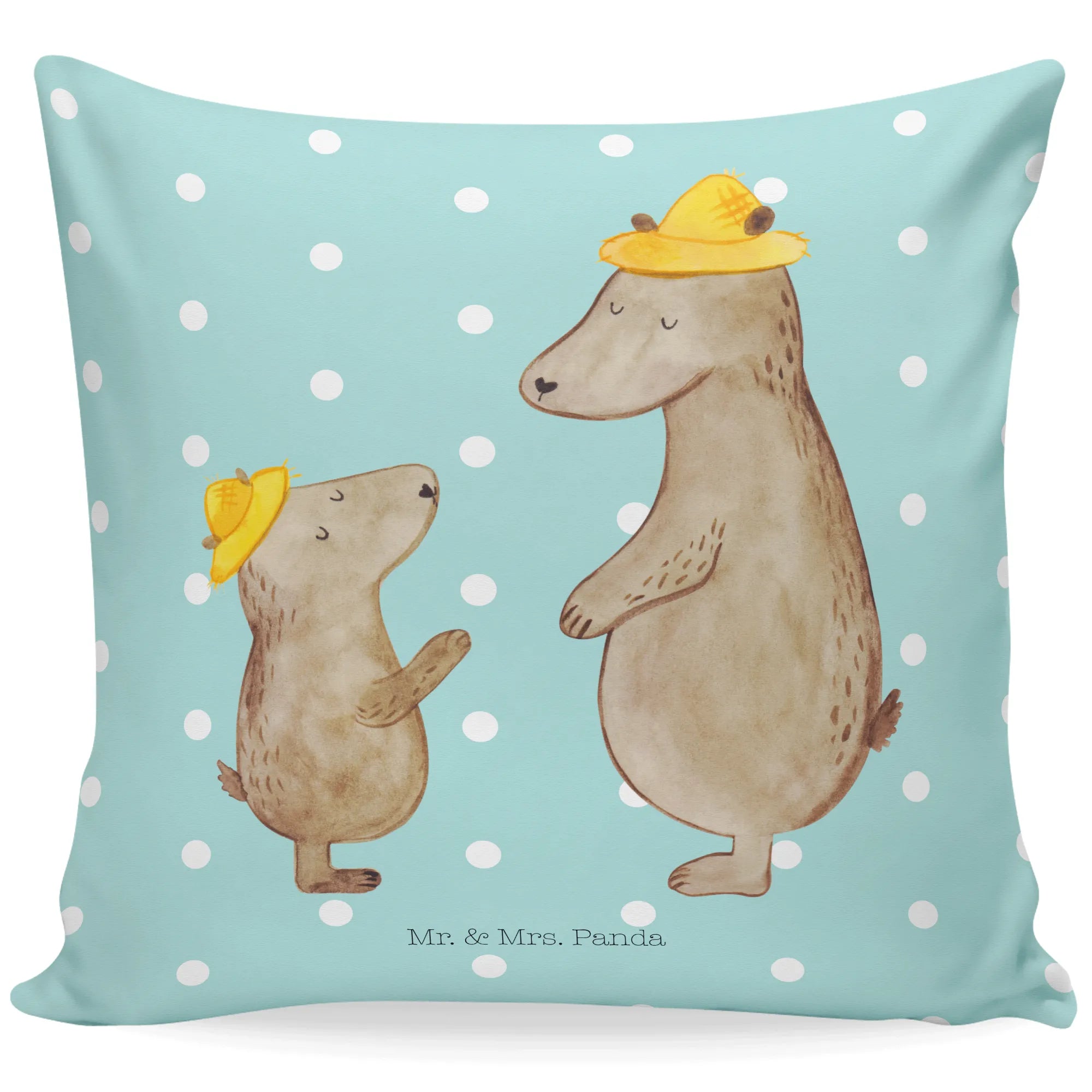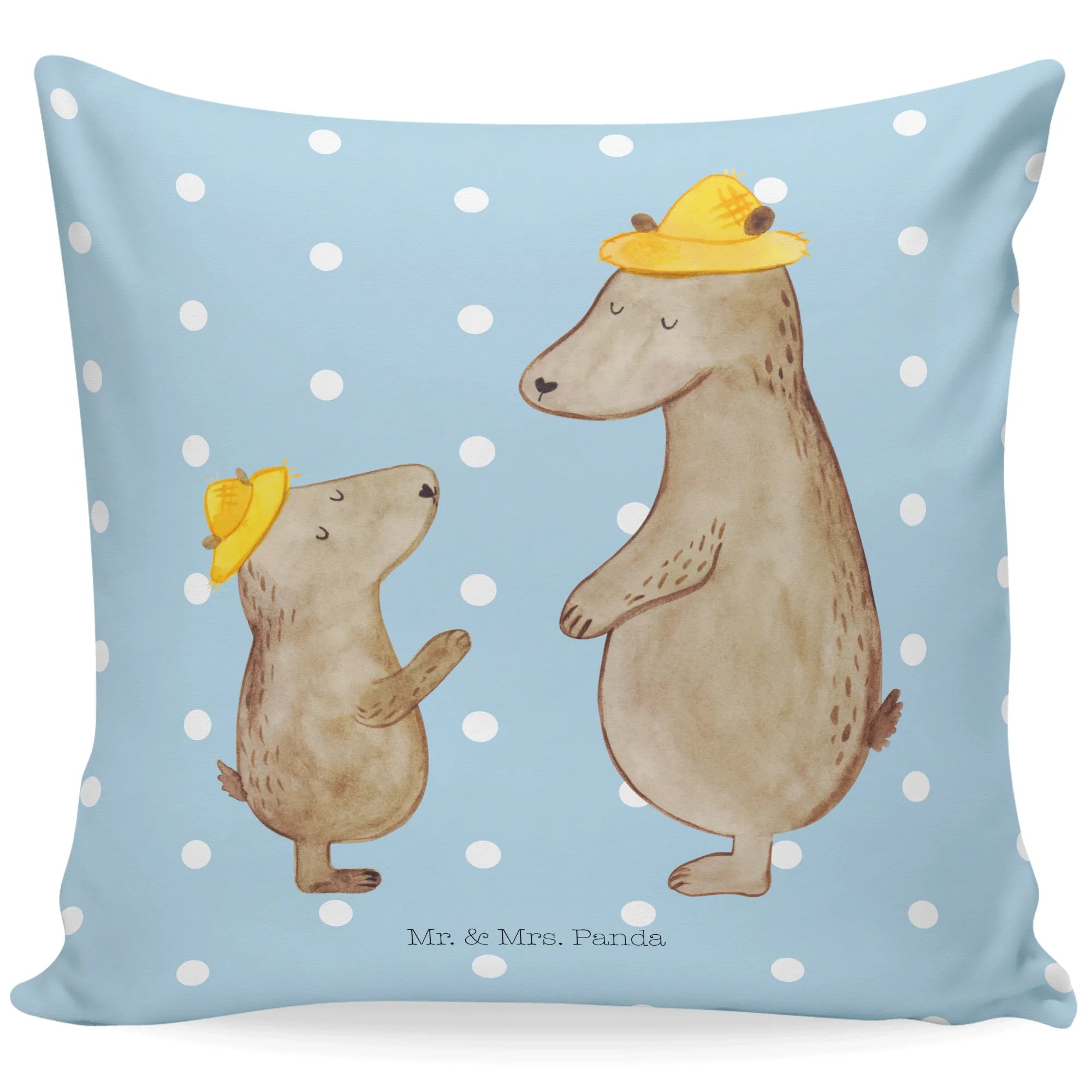 40x40 poduszka Niedźwiedzie z kapeluszami - z napisem - Niebieski Pastel