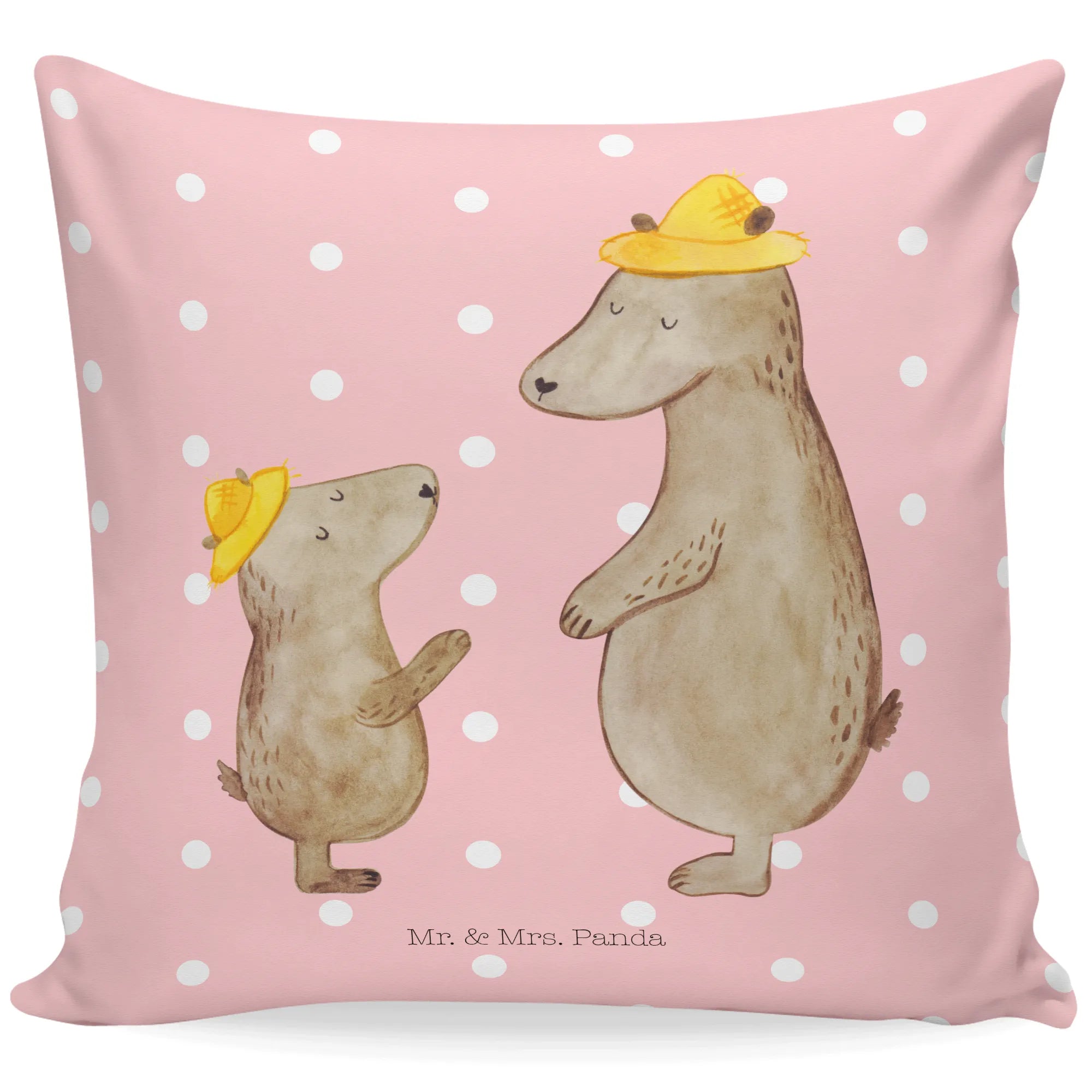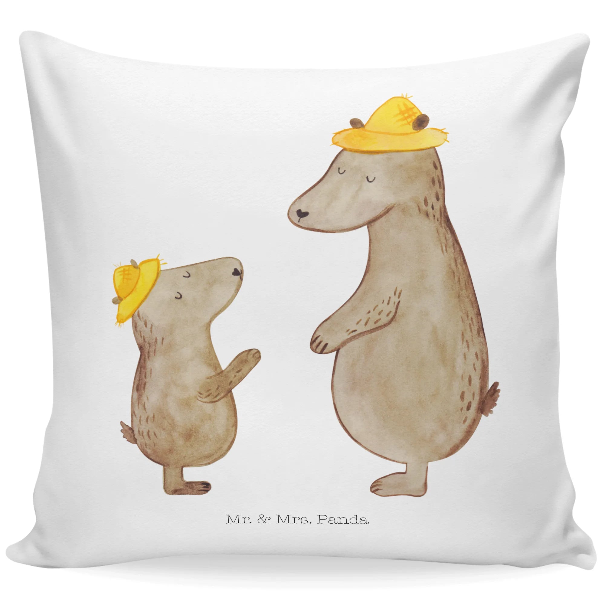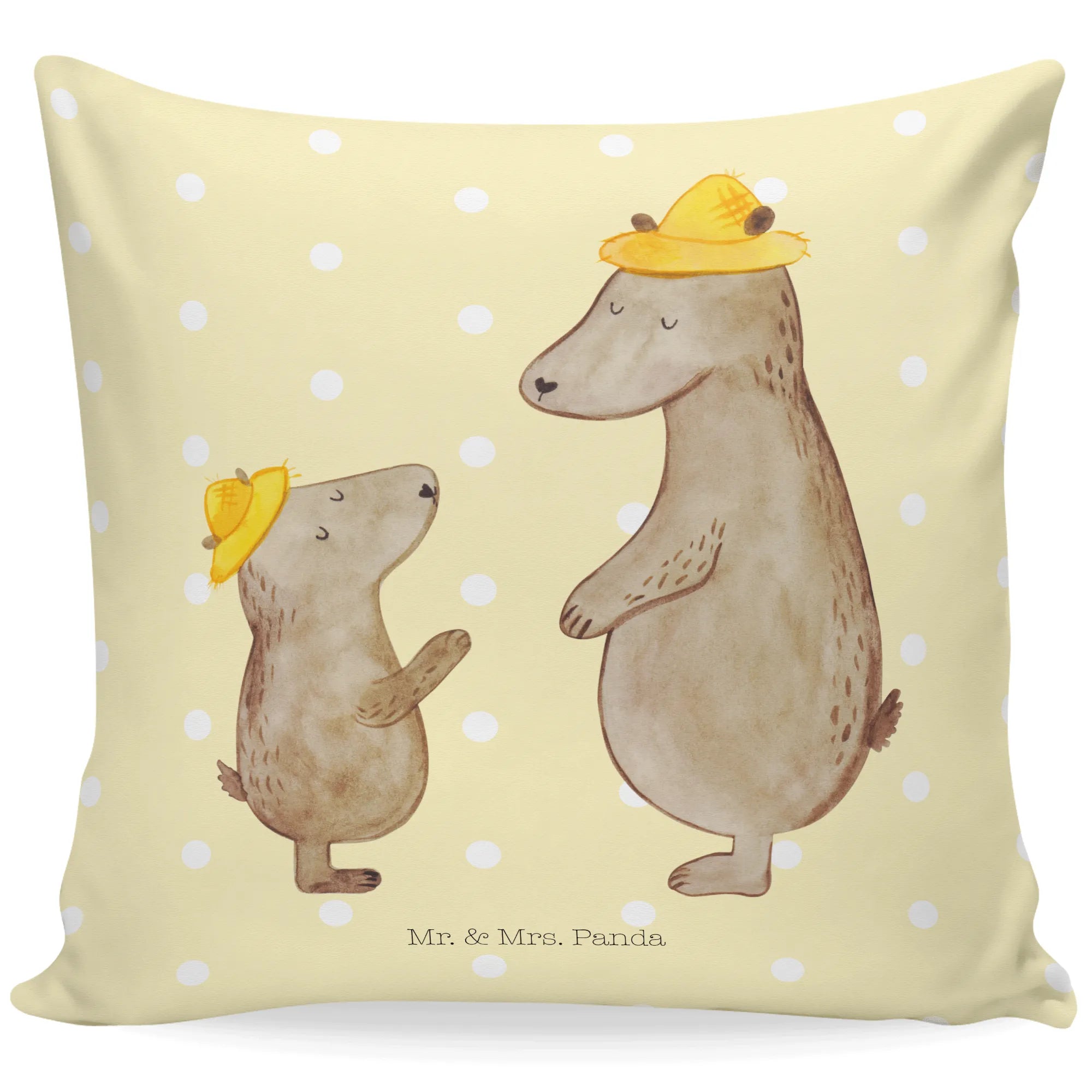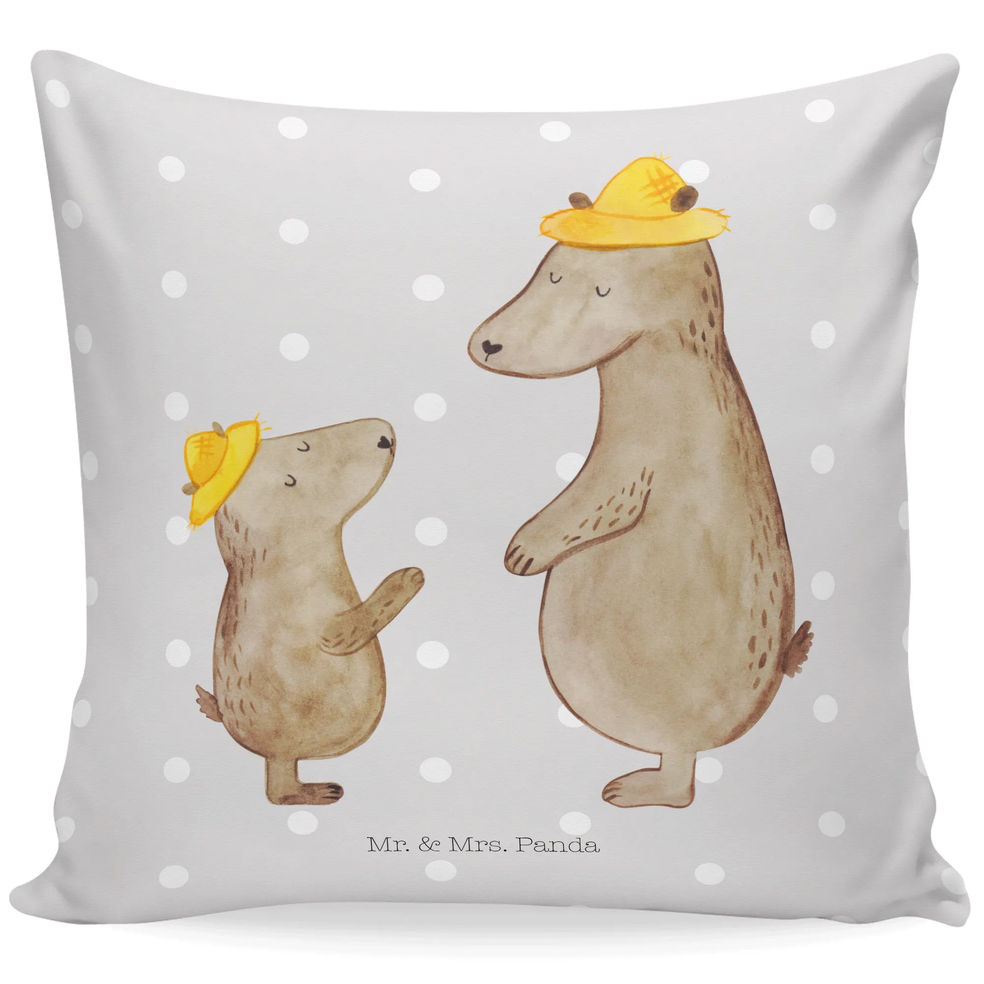 40x40 poduszka Niedźwiedzie z kapeluszami - z napisem - Niebieski Pastel