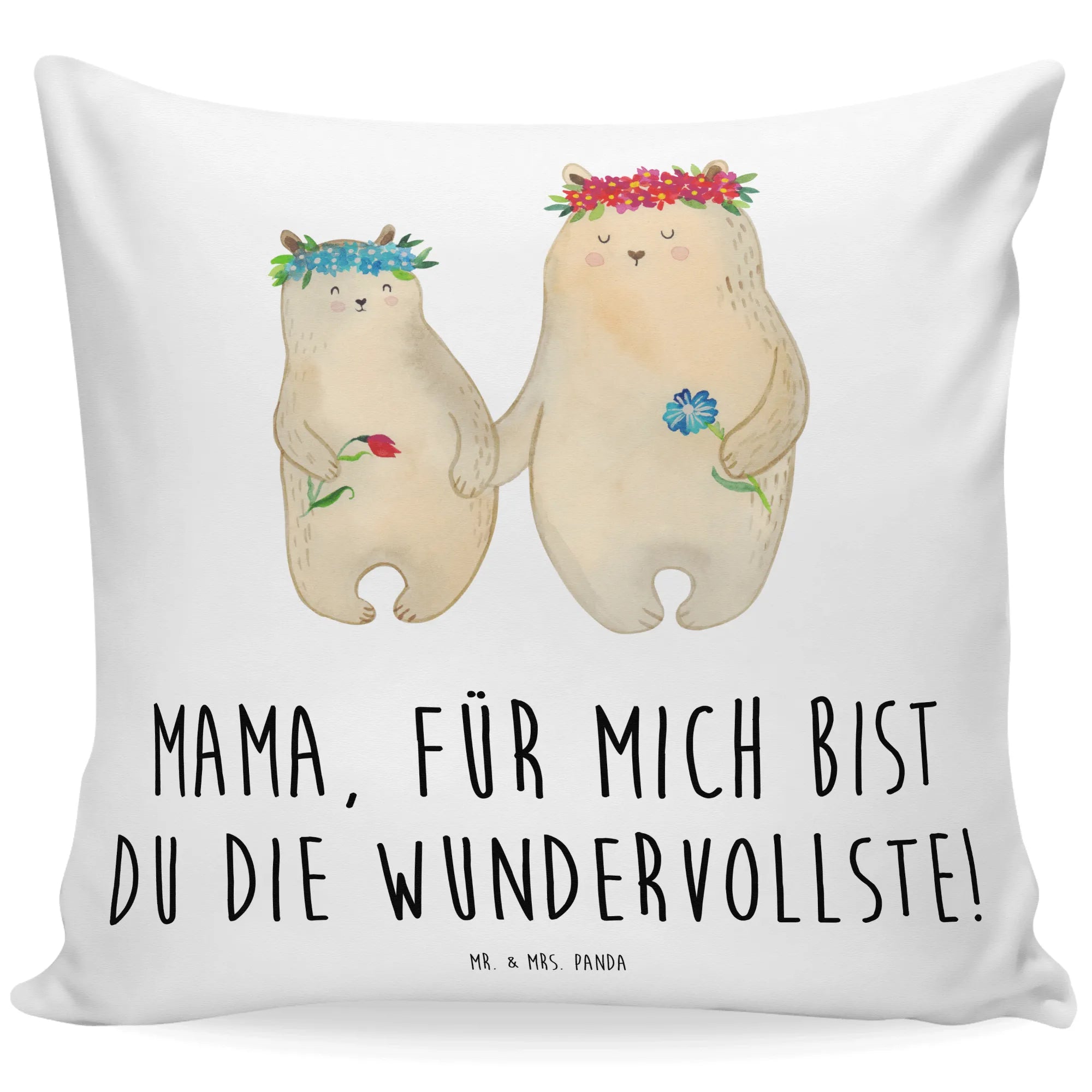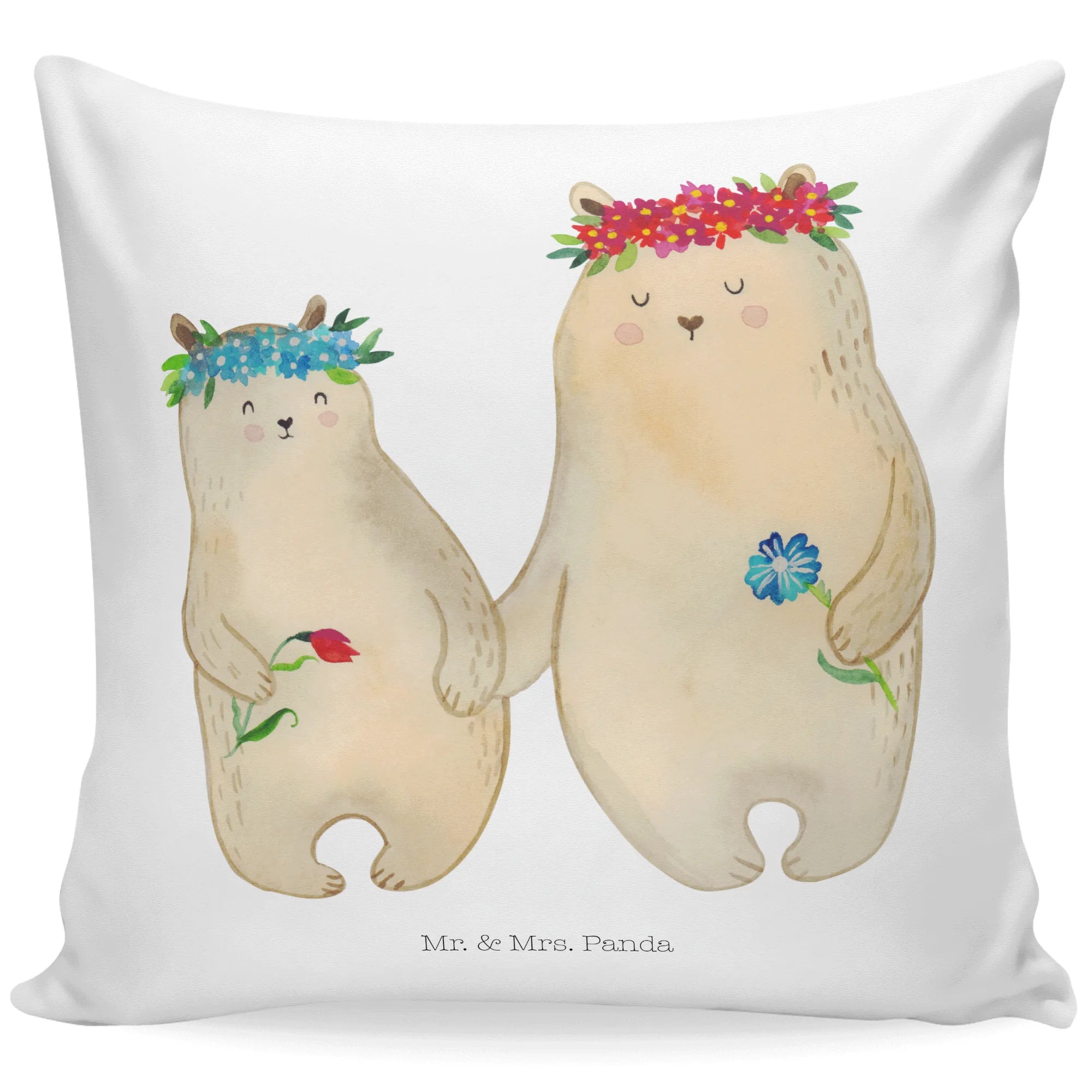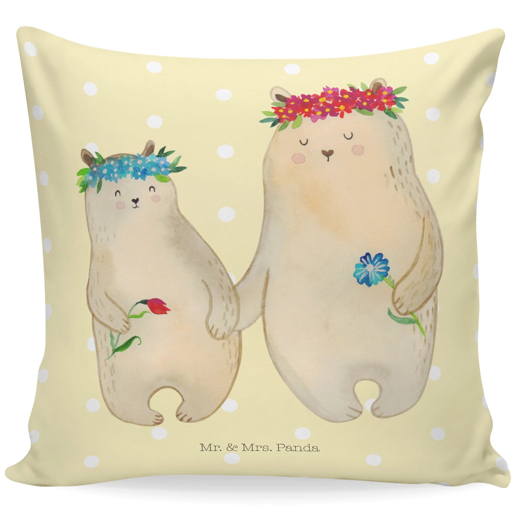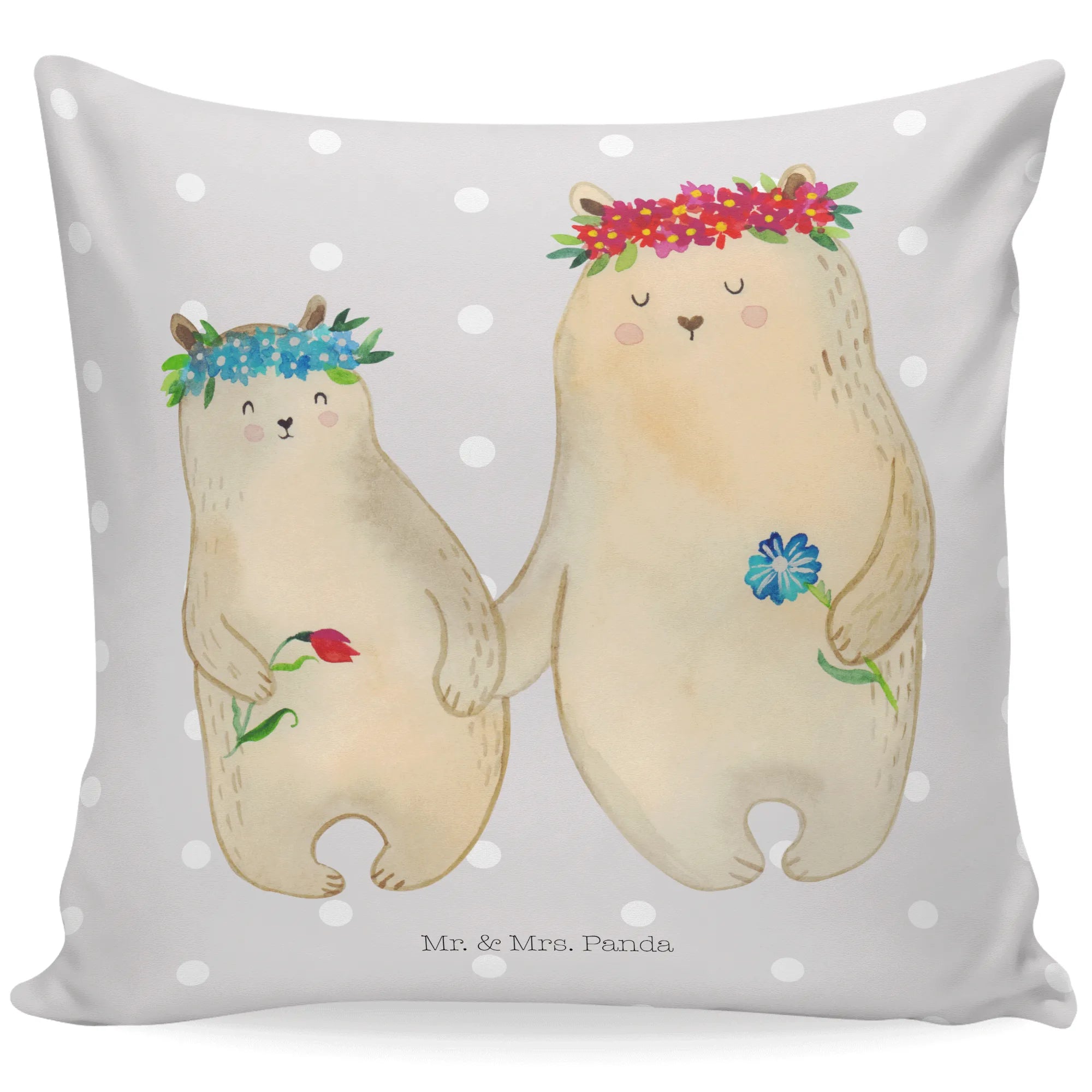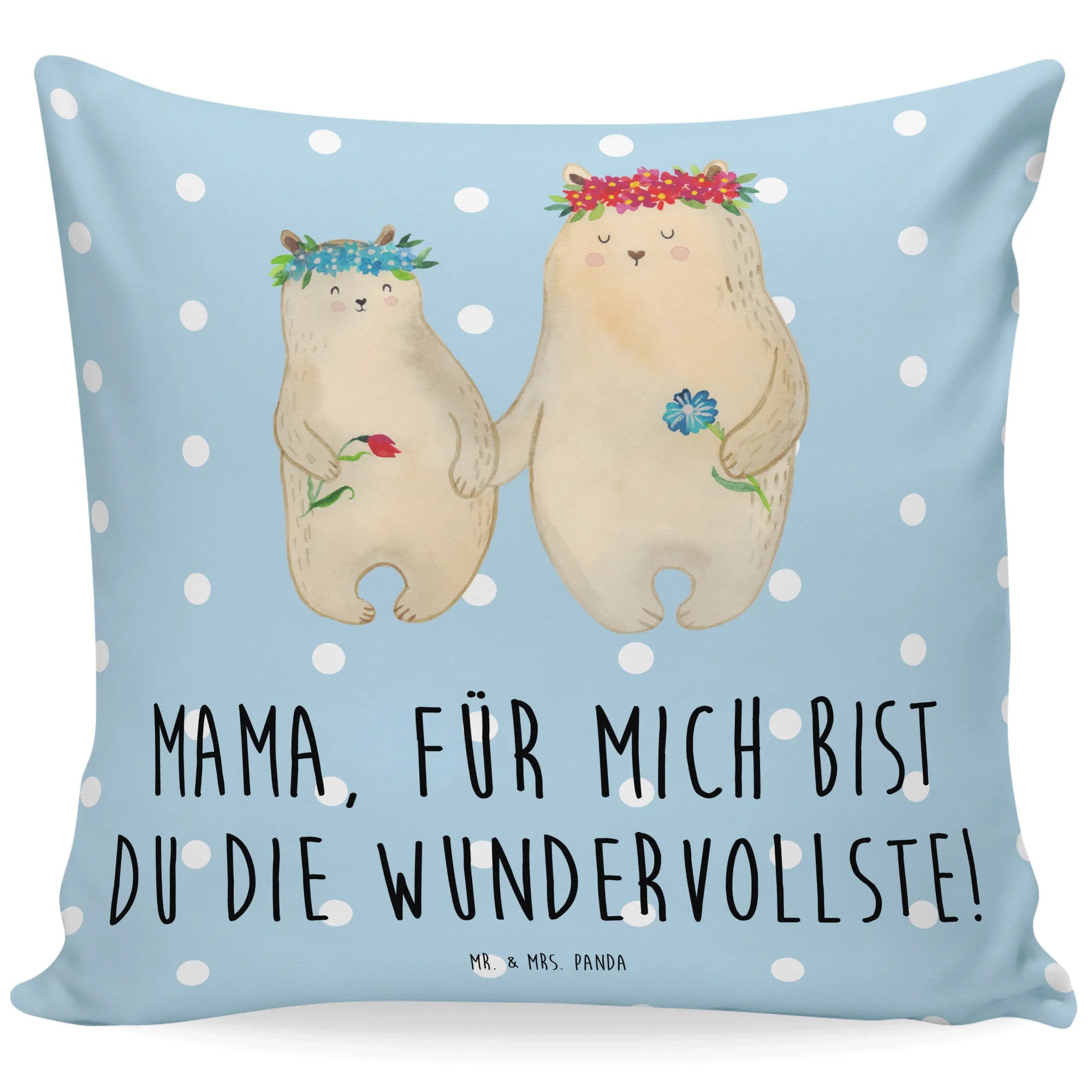 40x40 poduszka Niedźwiedzie z wianuszkiem - z napisem - Pastelowy niebieski