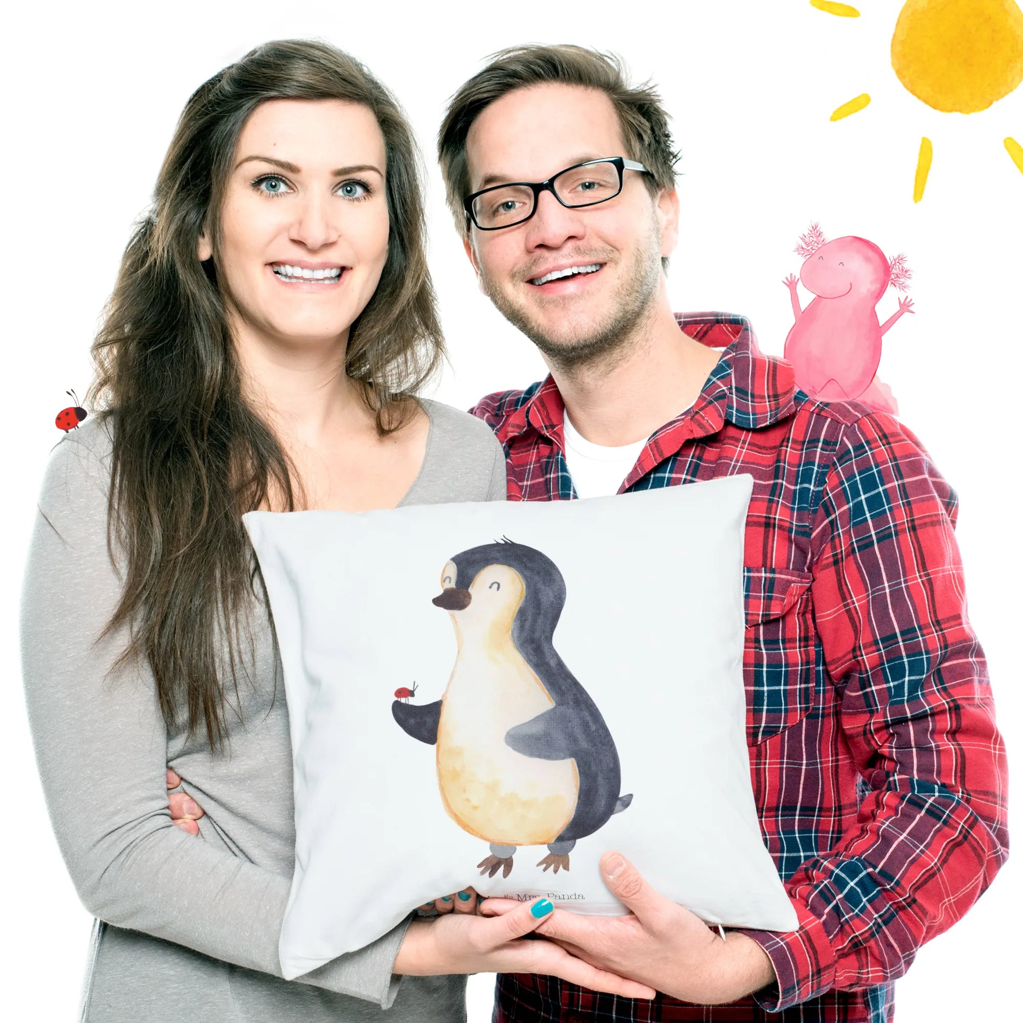 40x40 poduszka Pingwin biedronka - mit Spruch - Weiß