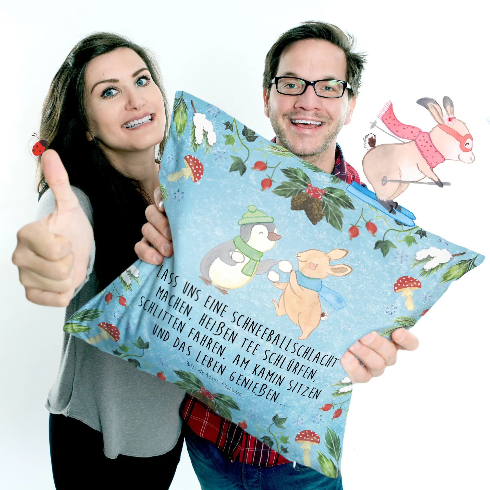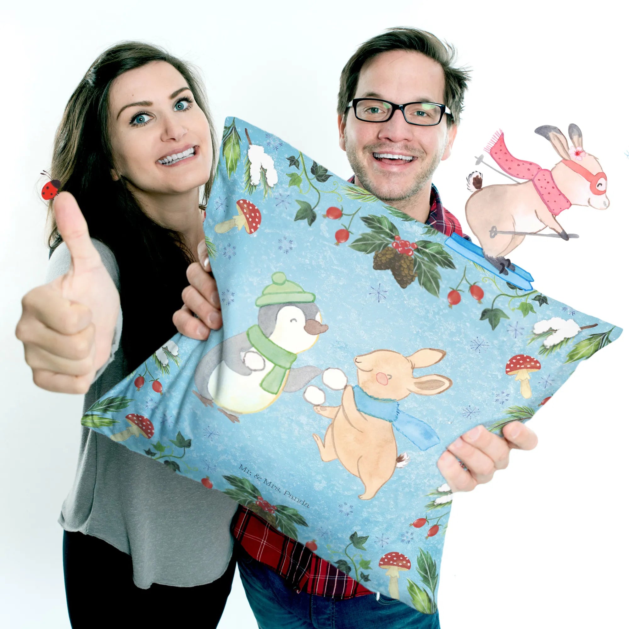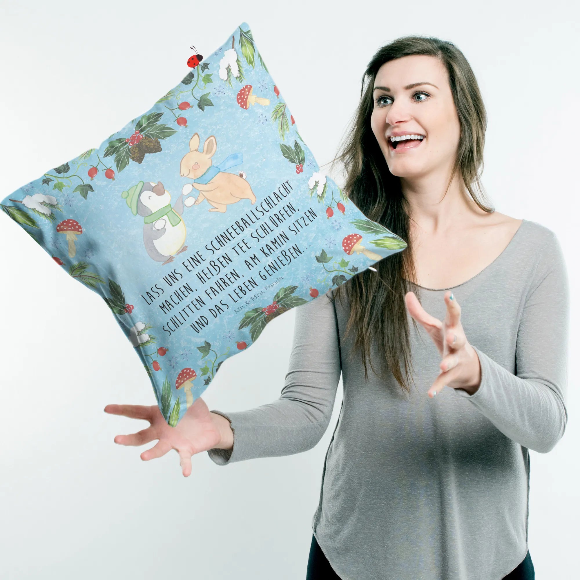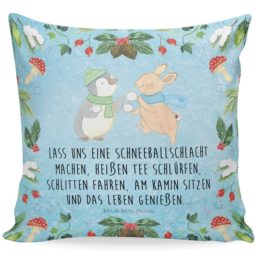 40x40 poduszka Pingwin królik Bitwa na śnieżki - z napisem - Eisblau