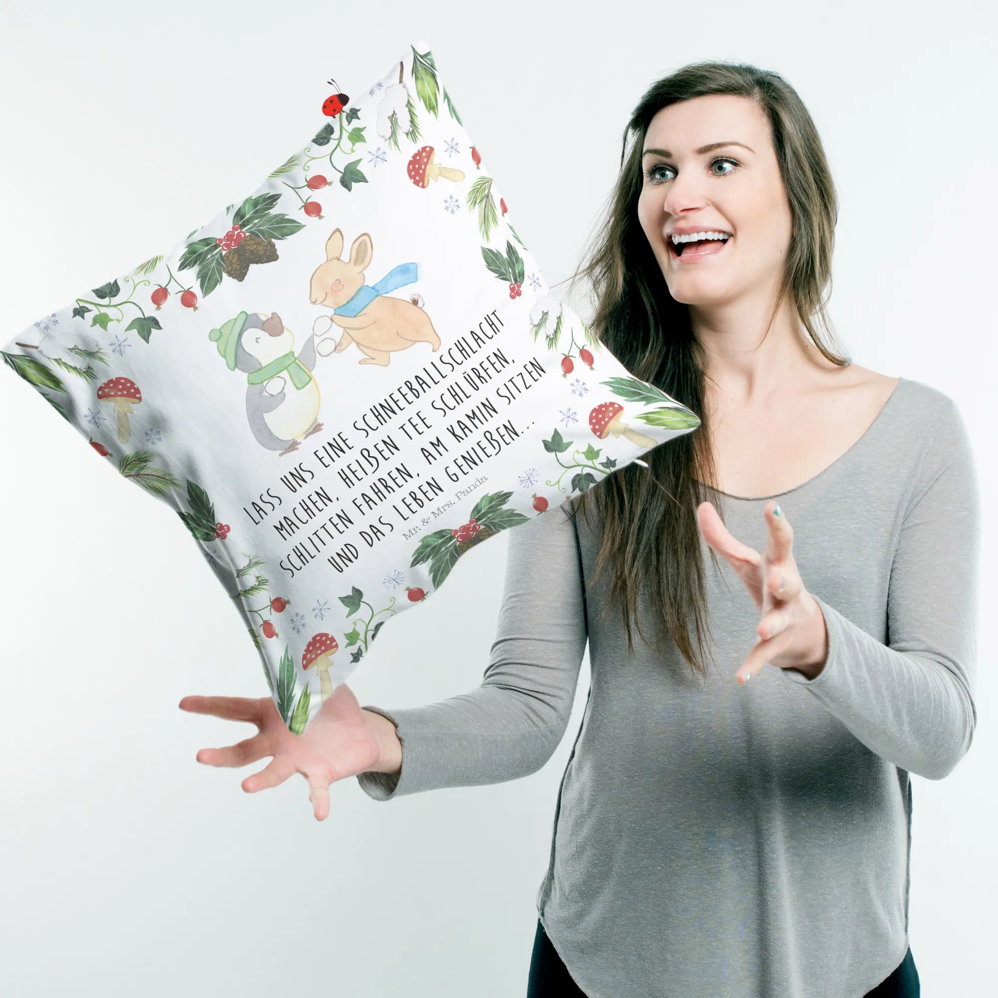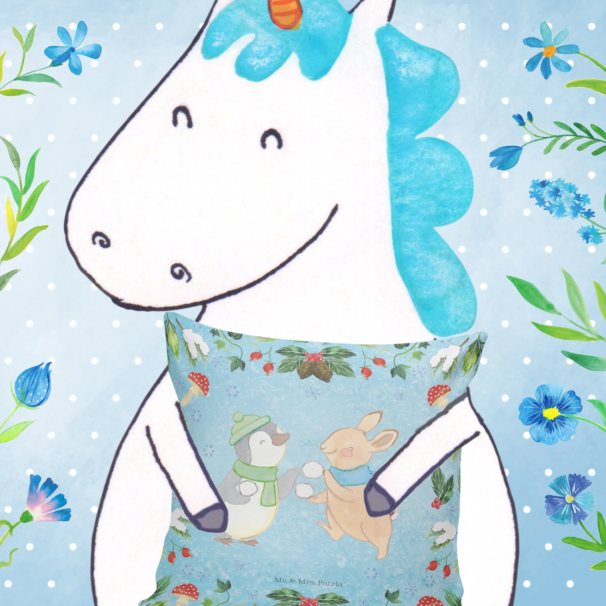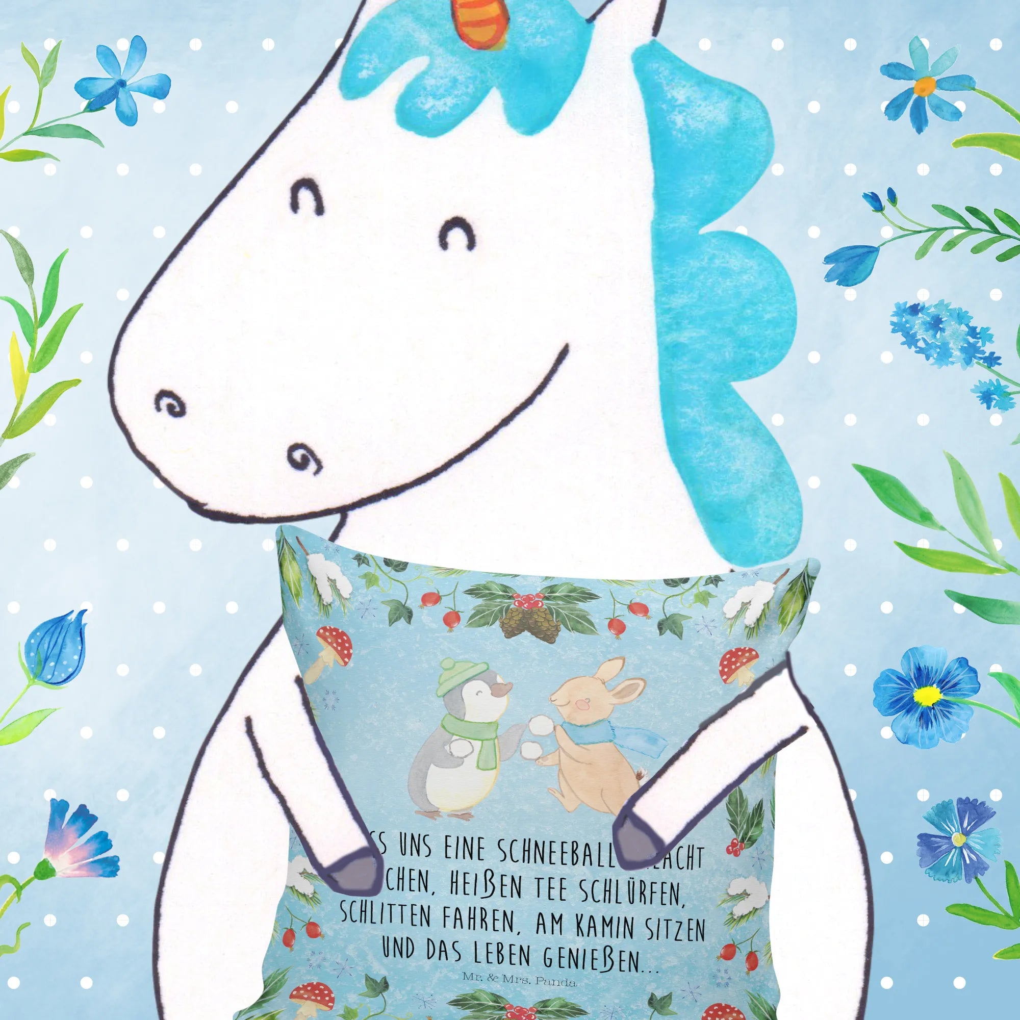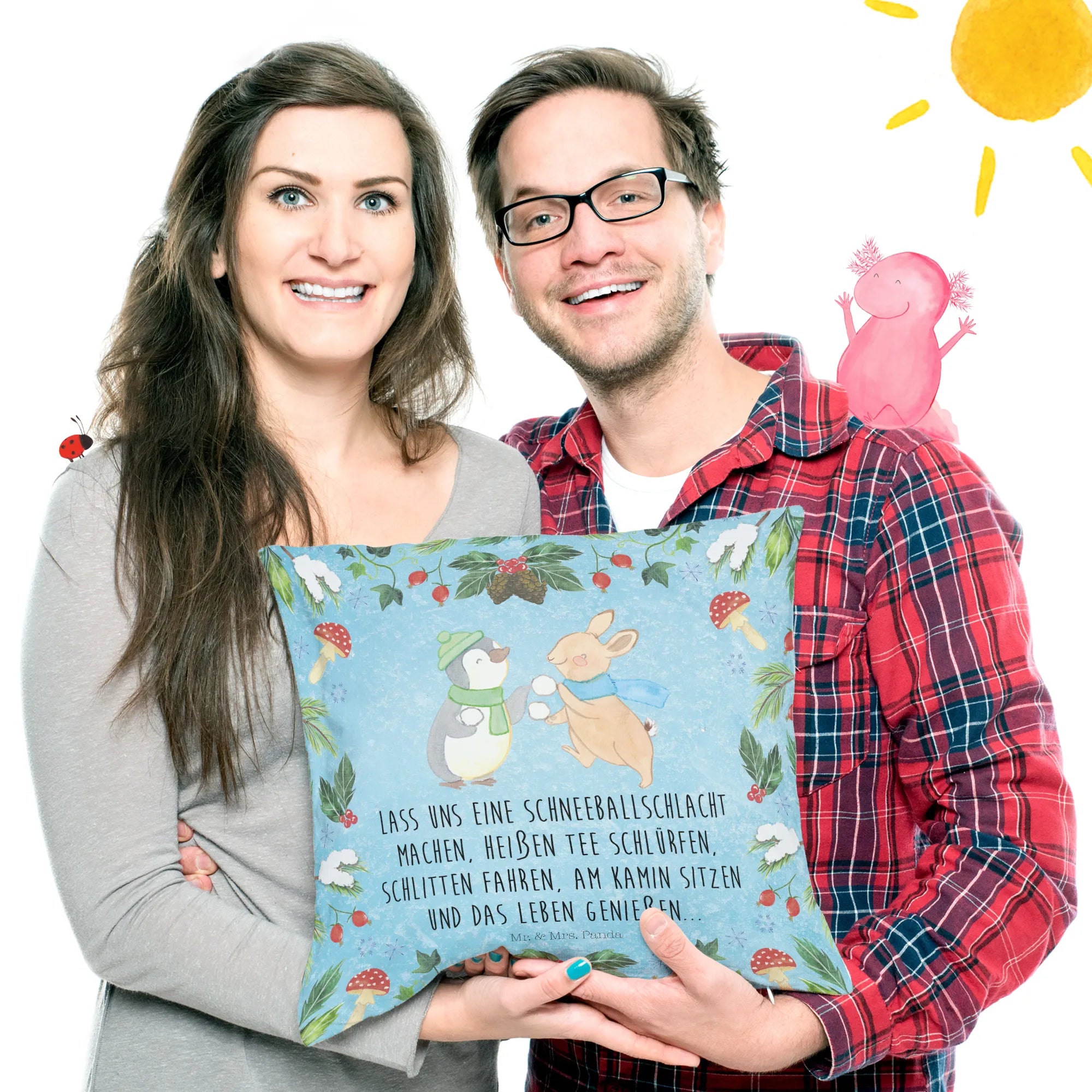 40x40 poduszka Pingwin królik Bitwa na śnieżki - z napisem - Eisblau