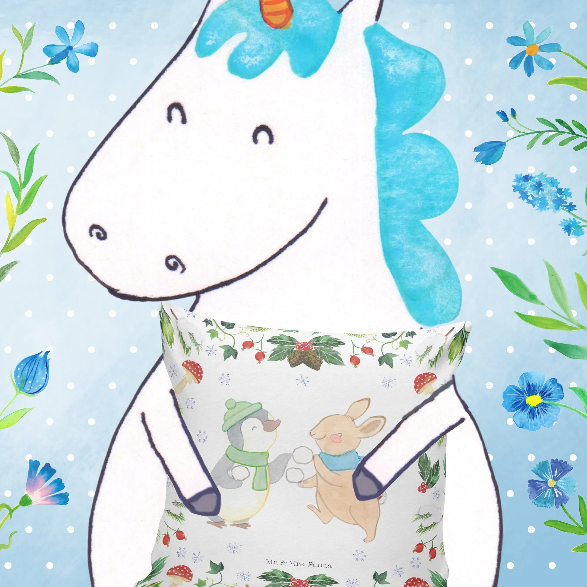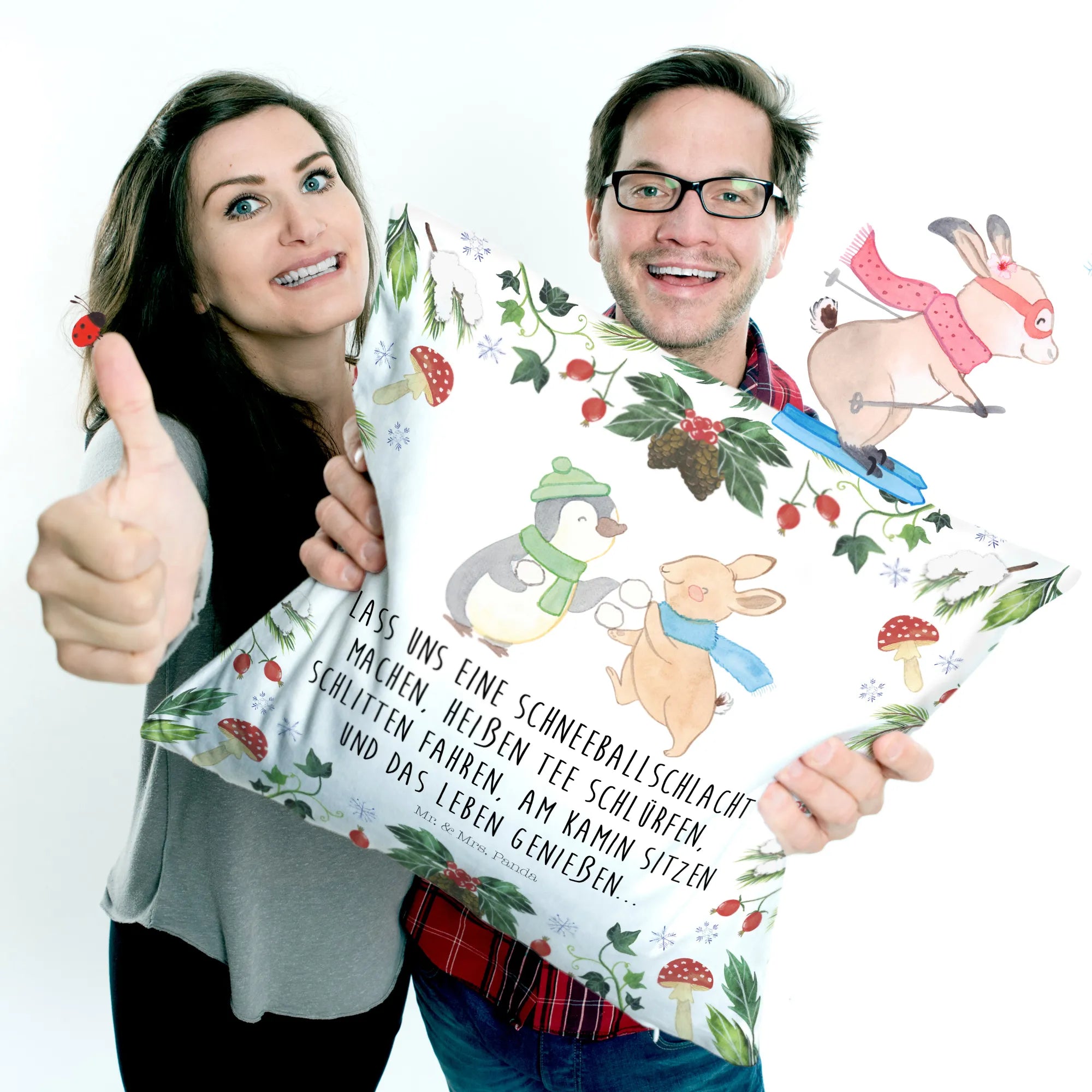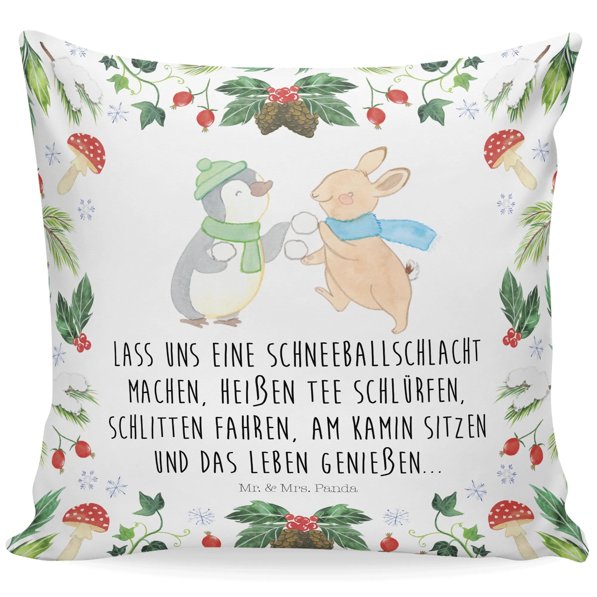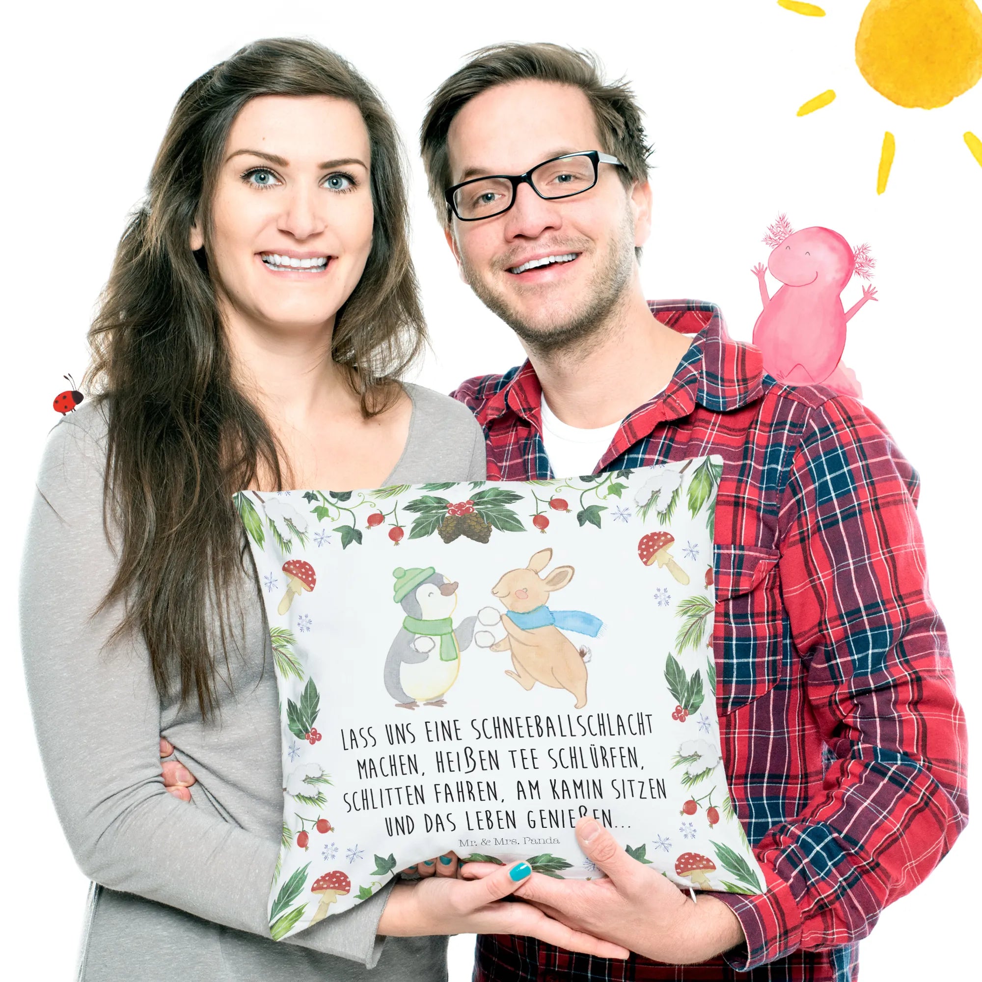 40x40 poduszka Pingwin królik Bitwa na śnieżki - z napisem - Eisblau