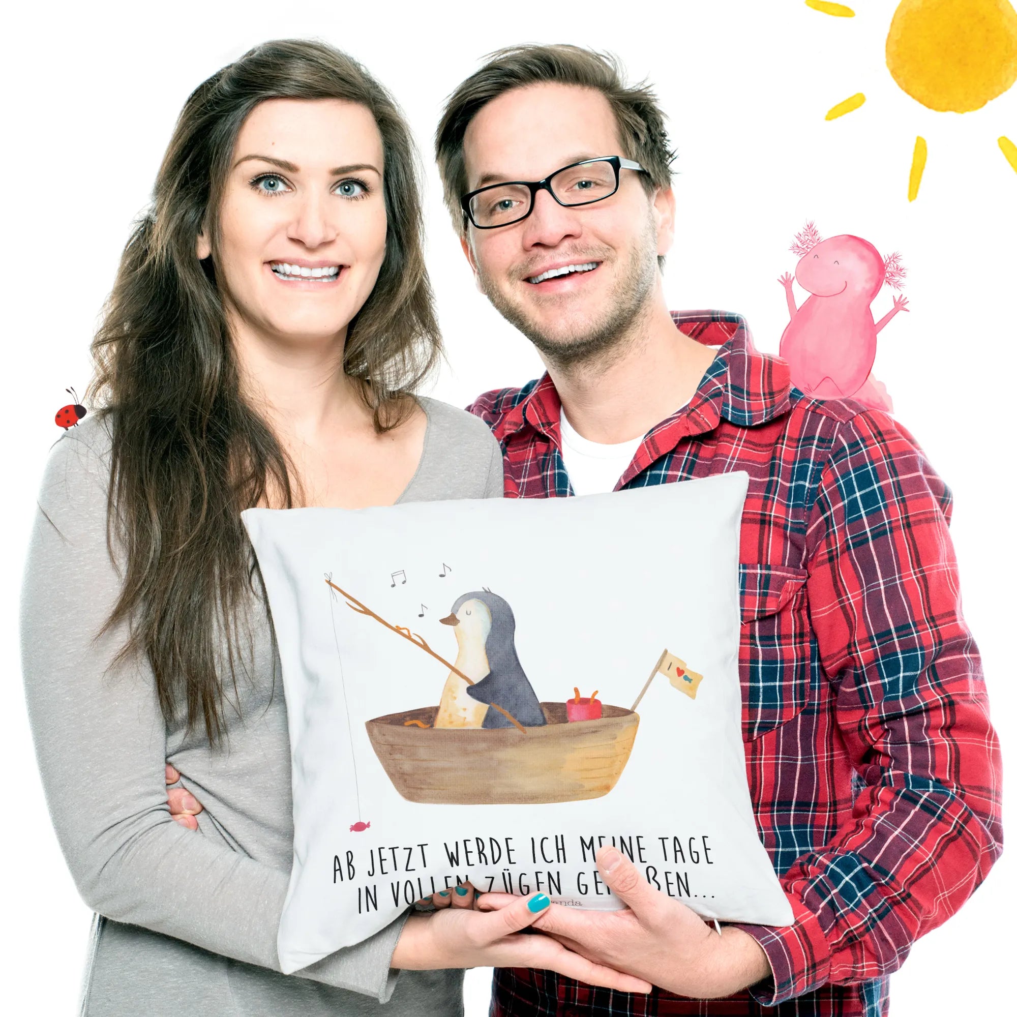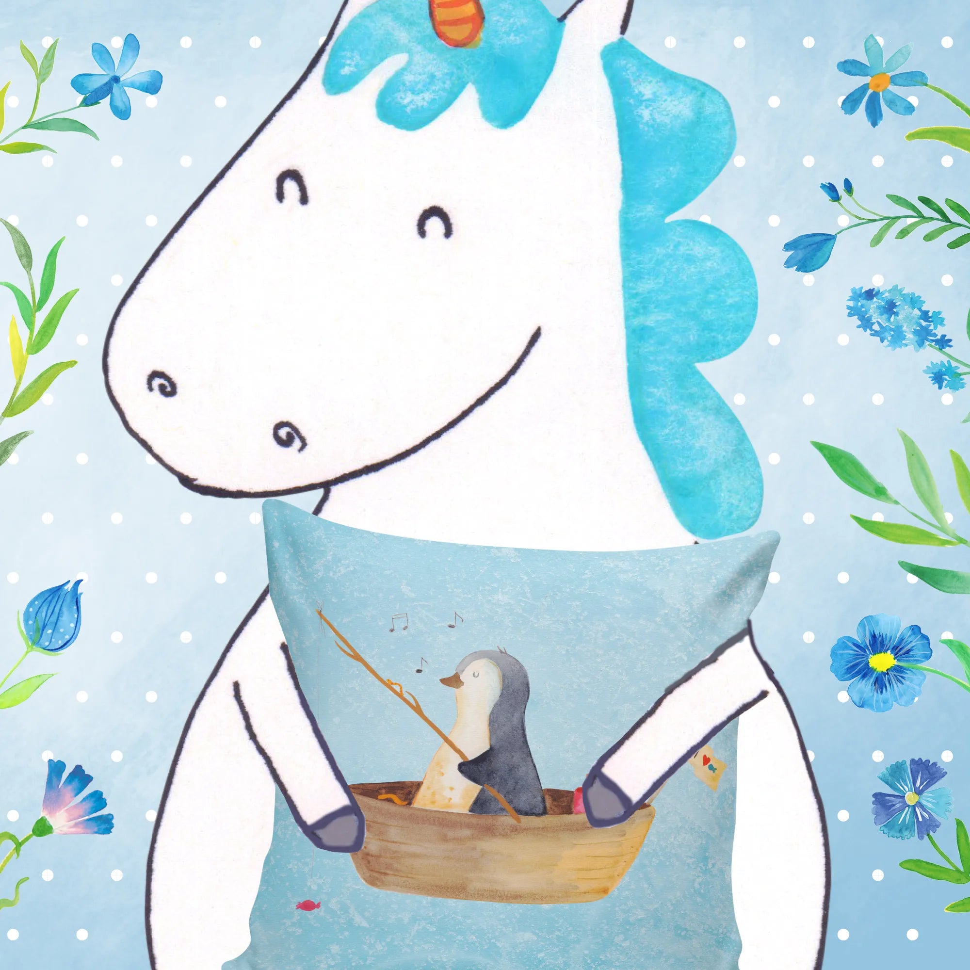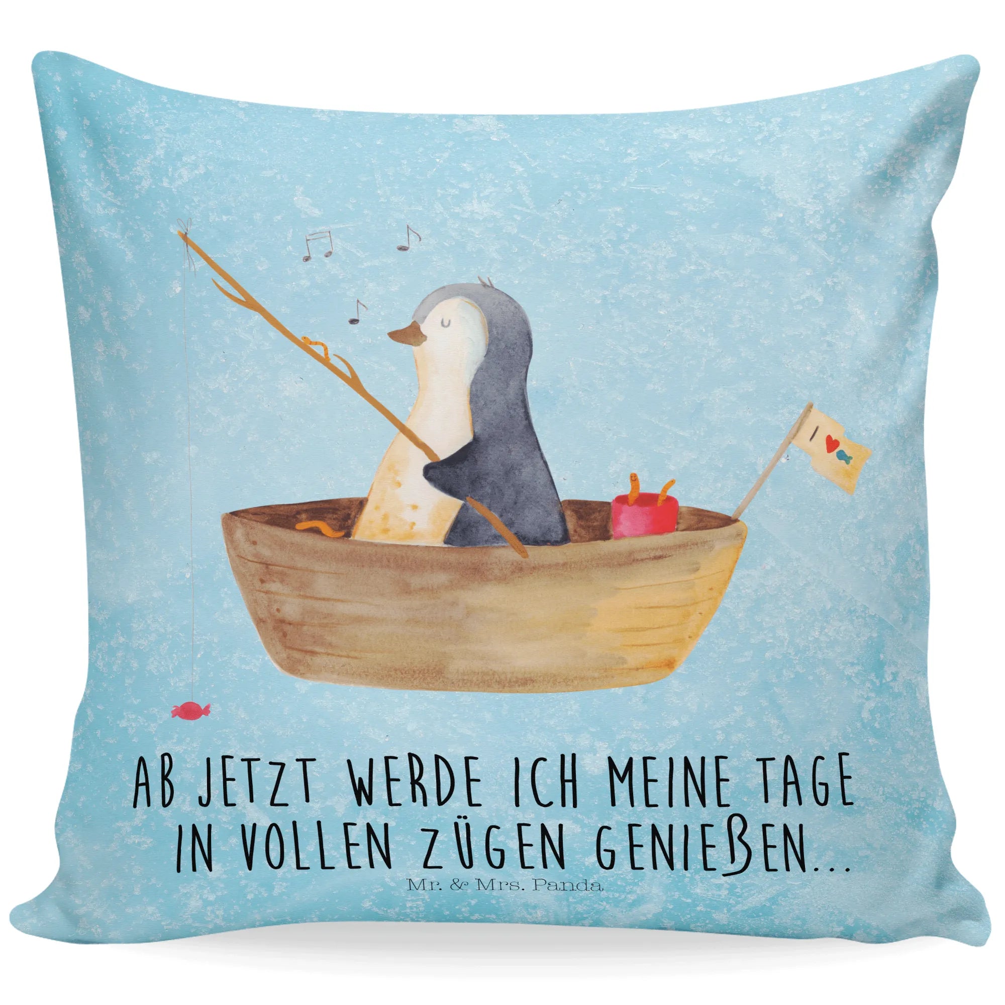 40x40 poduszka pingwin łódka wędkarska - mit Spruch - Eisblau