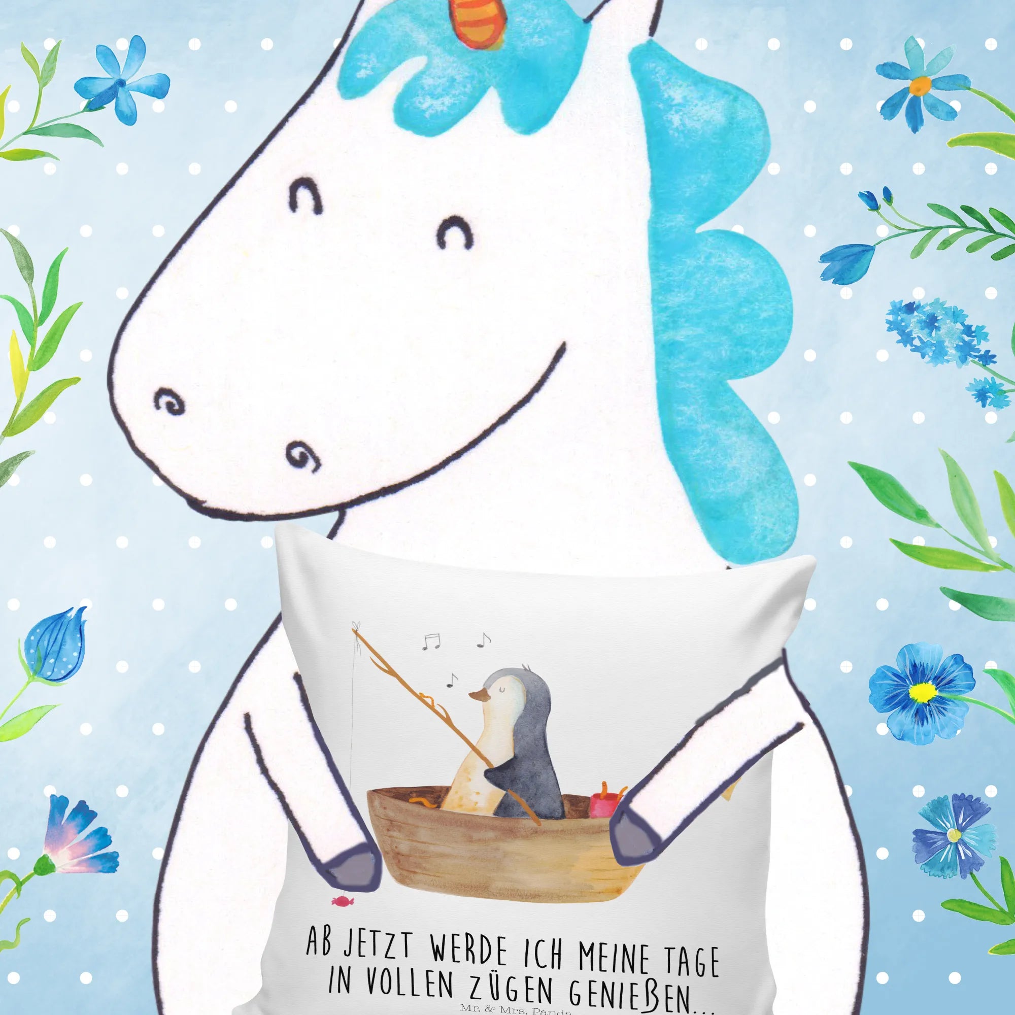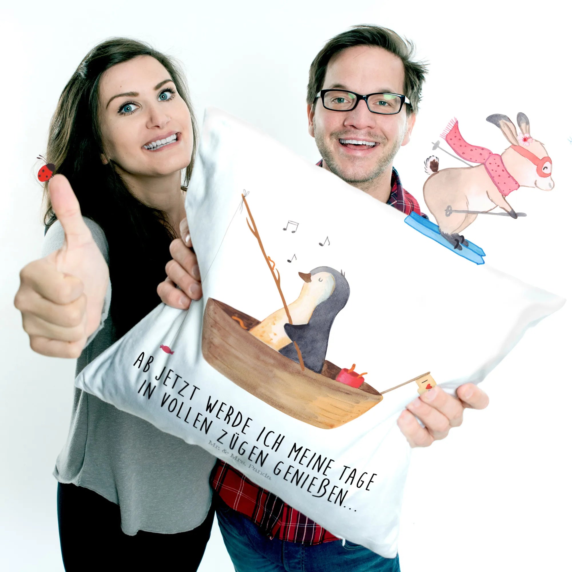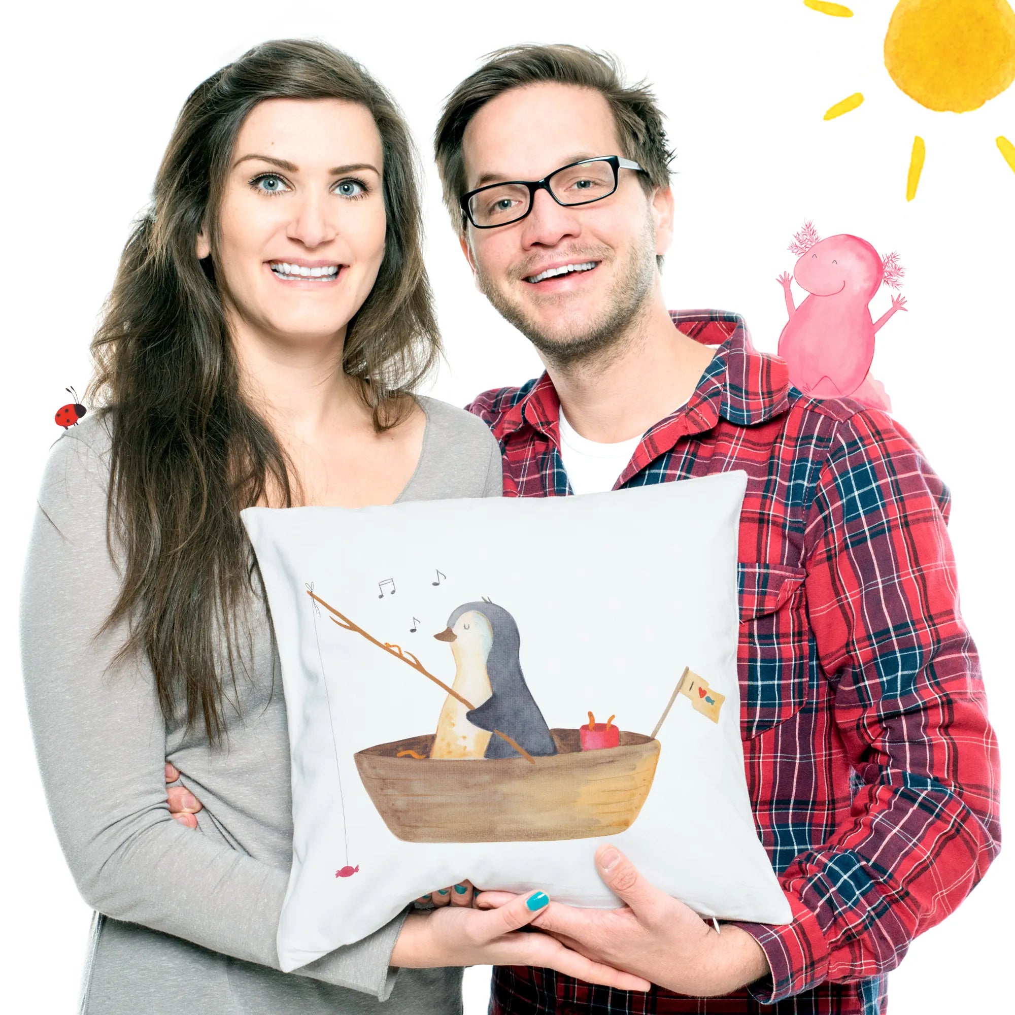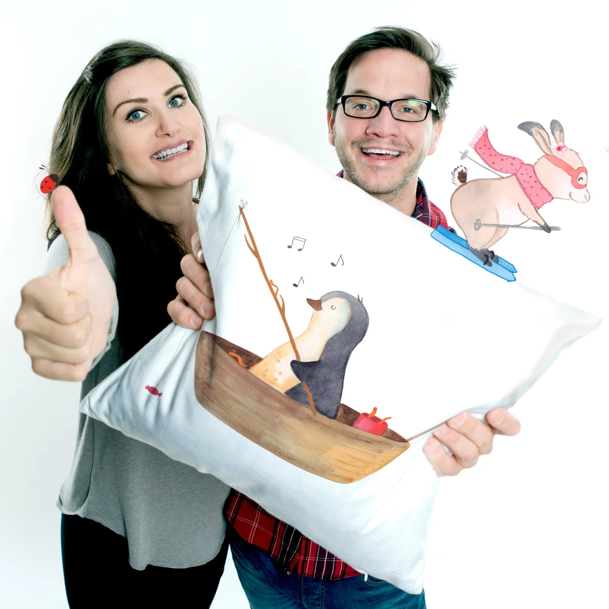 40x40 poduszka pingwin łódka wędkarska - mit Spruch - Eisblau