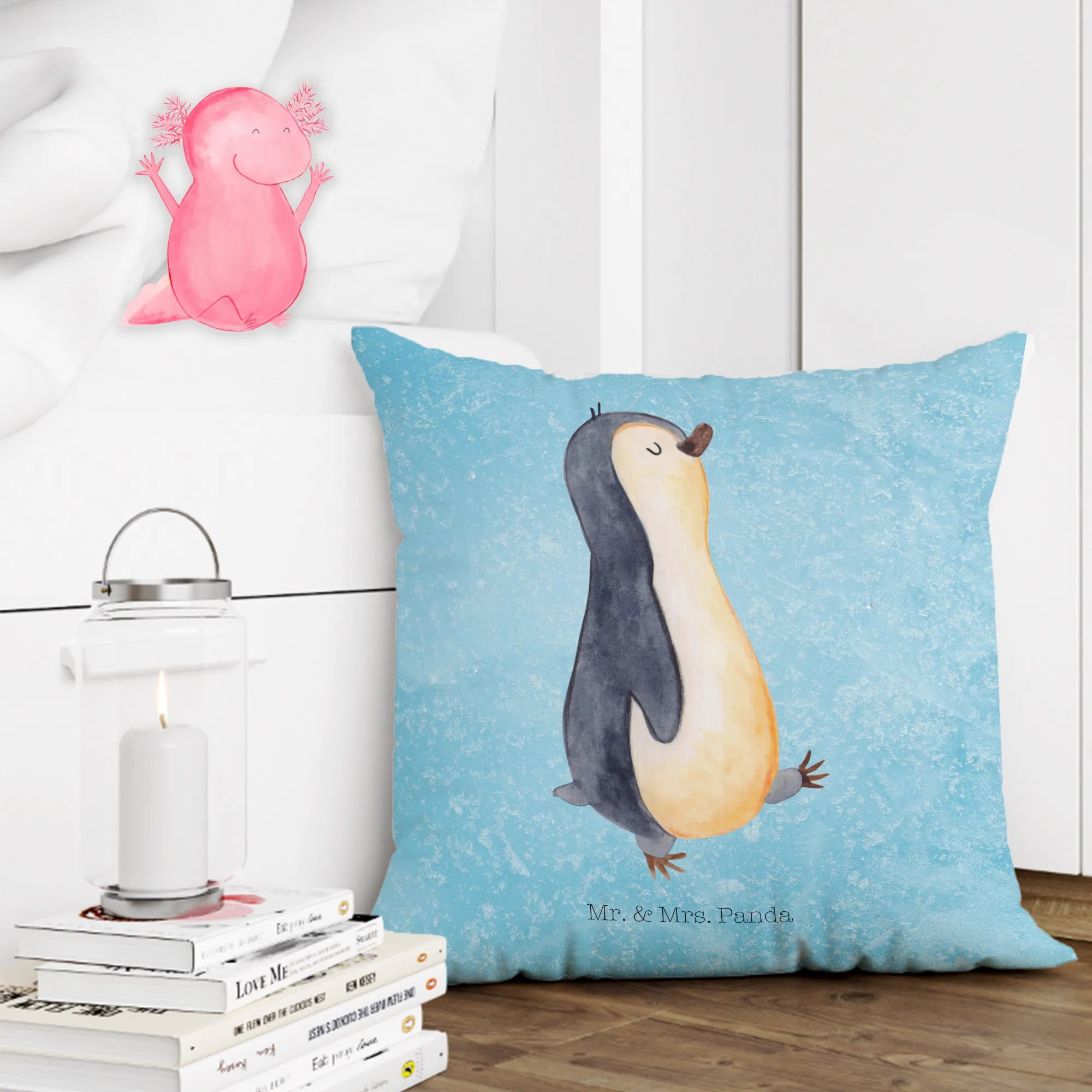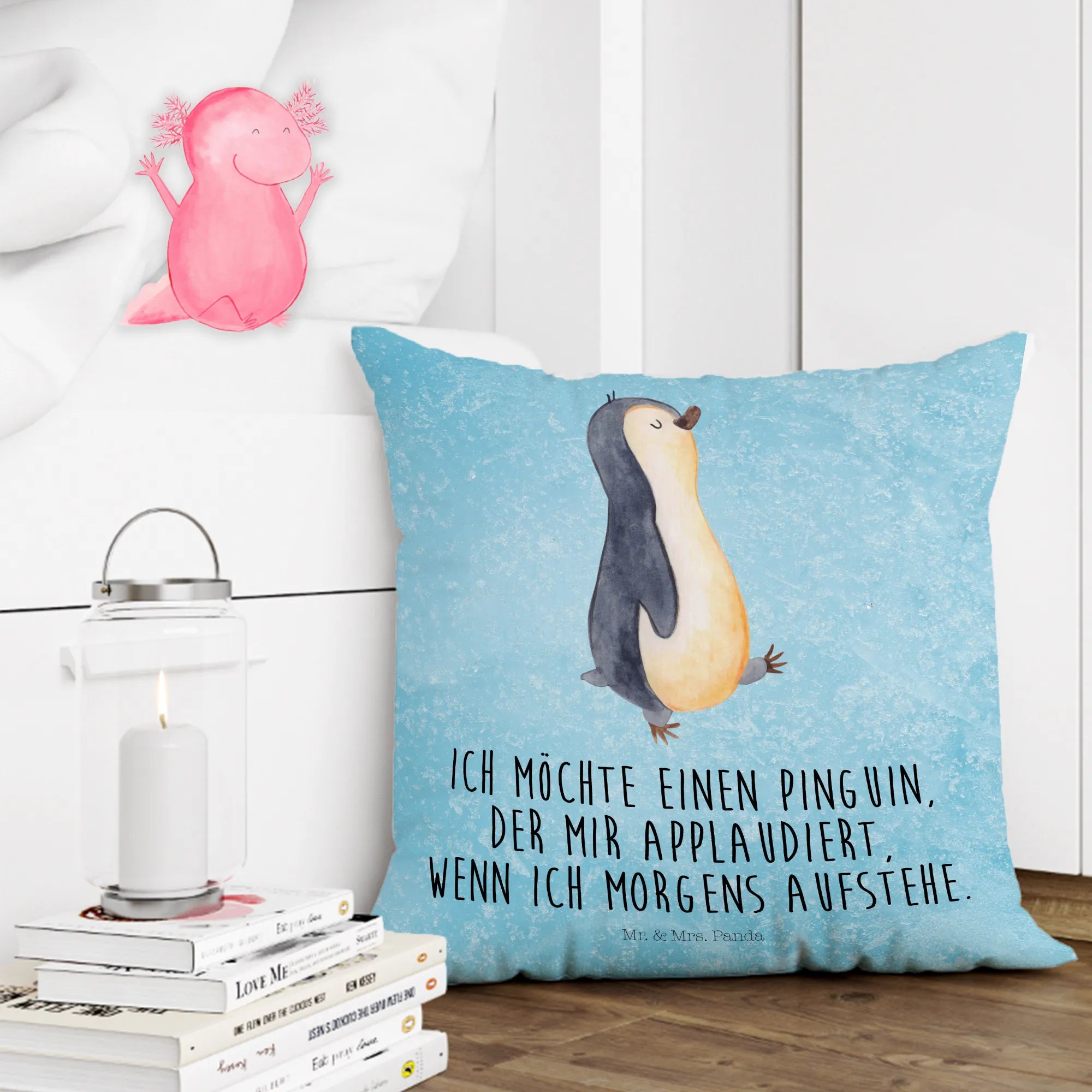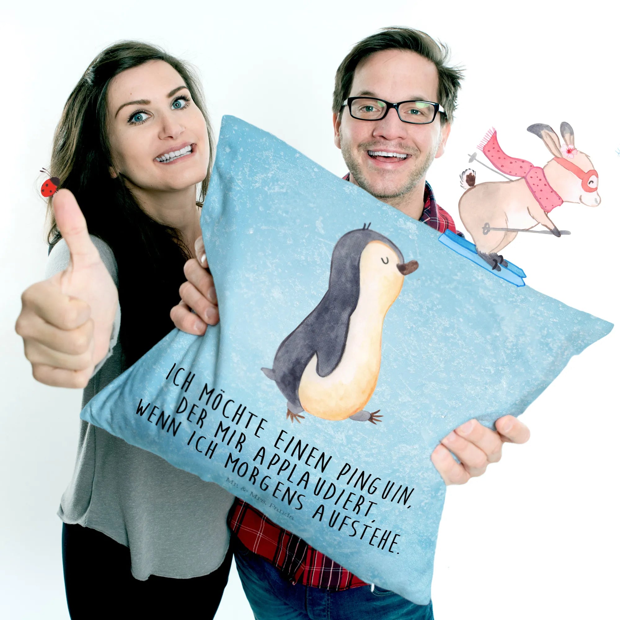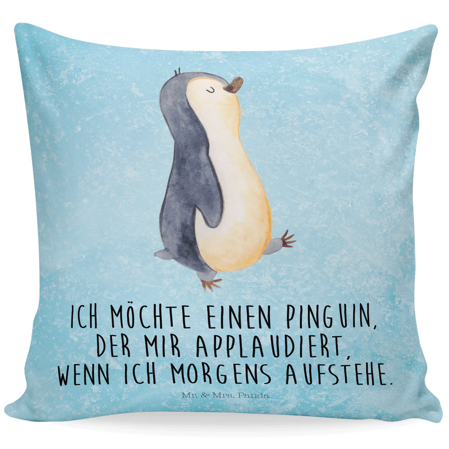 40x40 poduszka Pingwin maszerować - z napisem - Eisblau