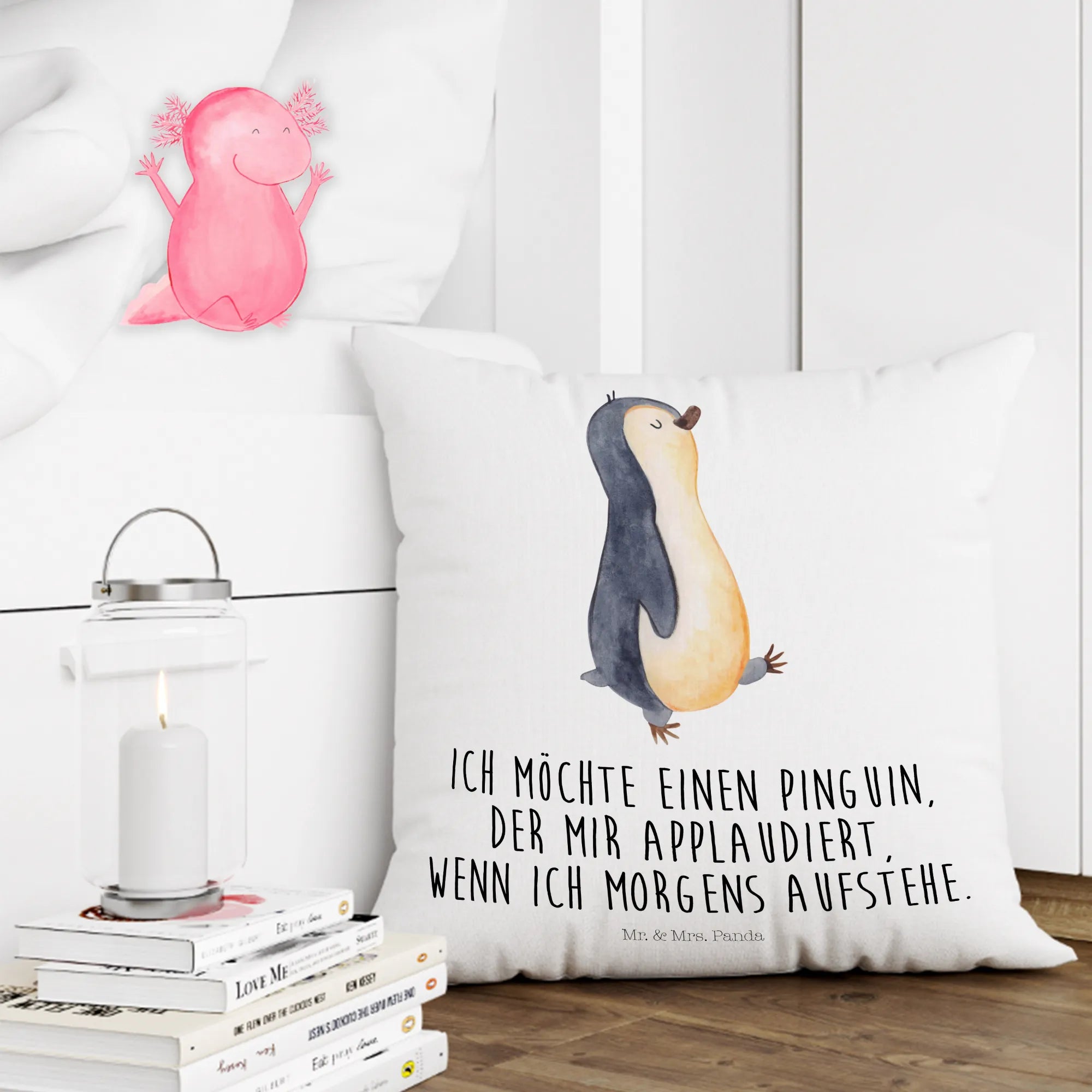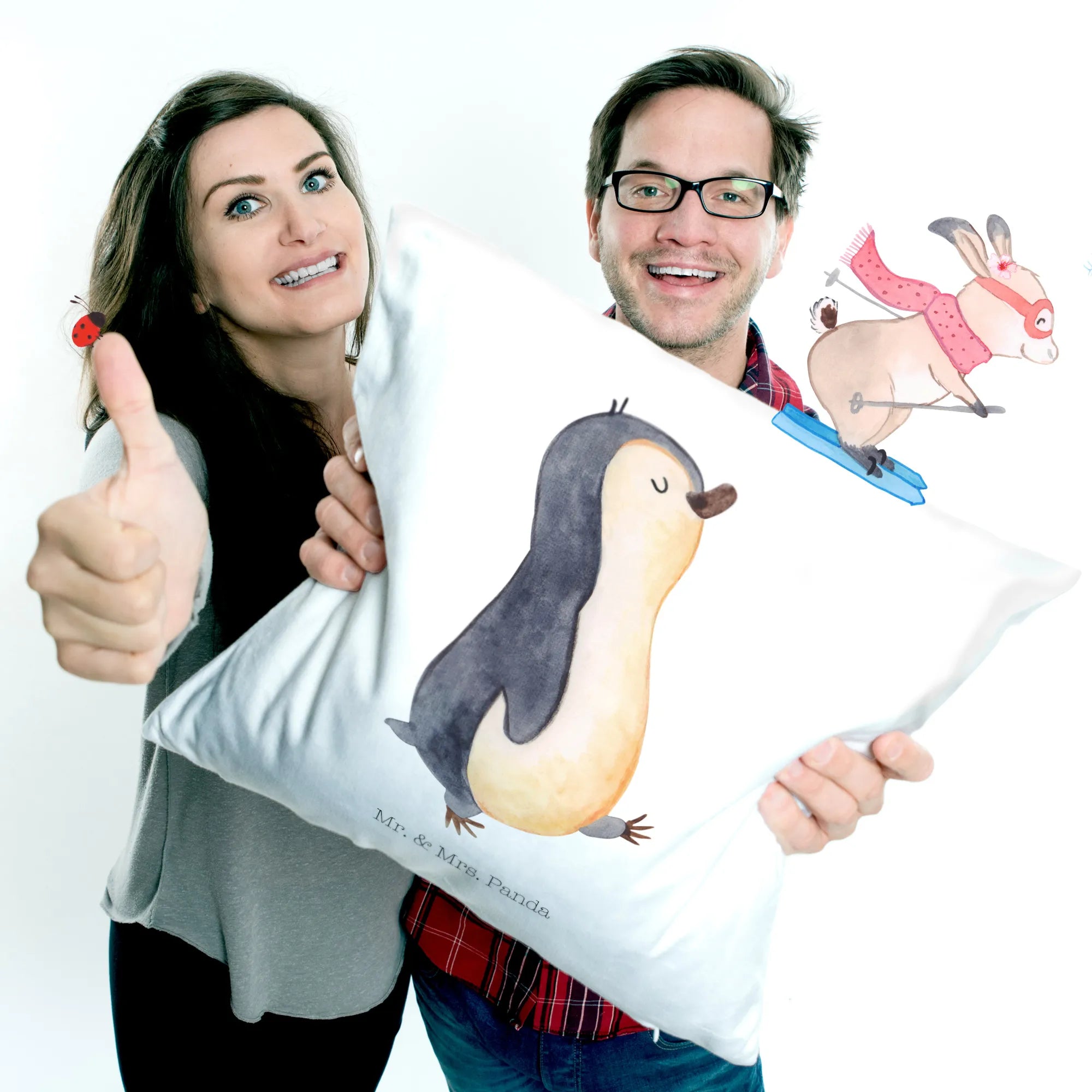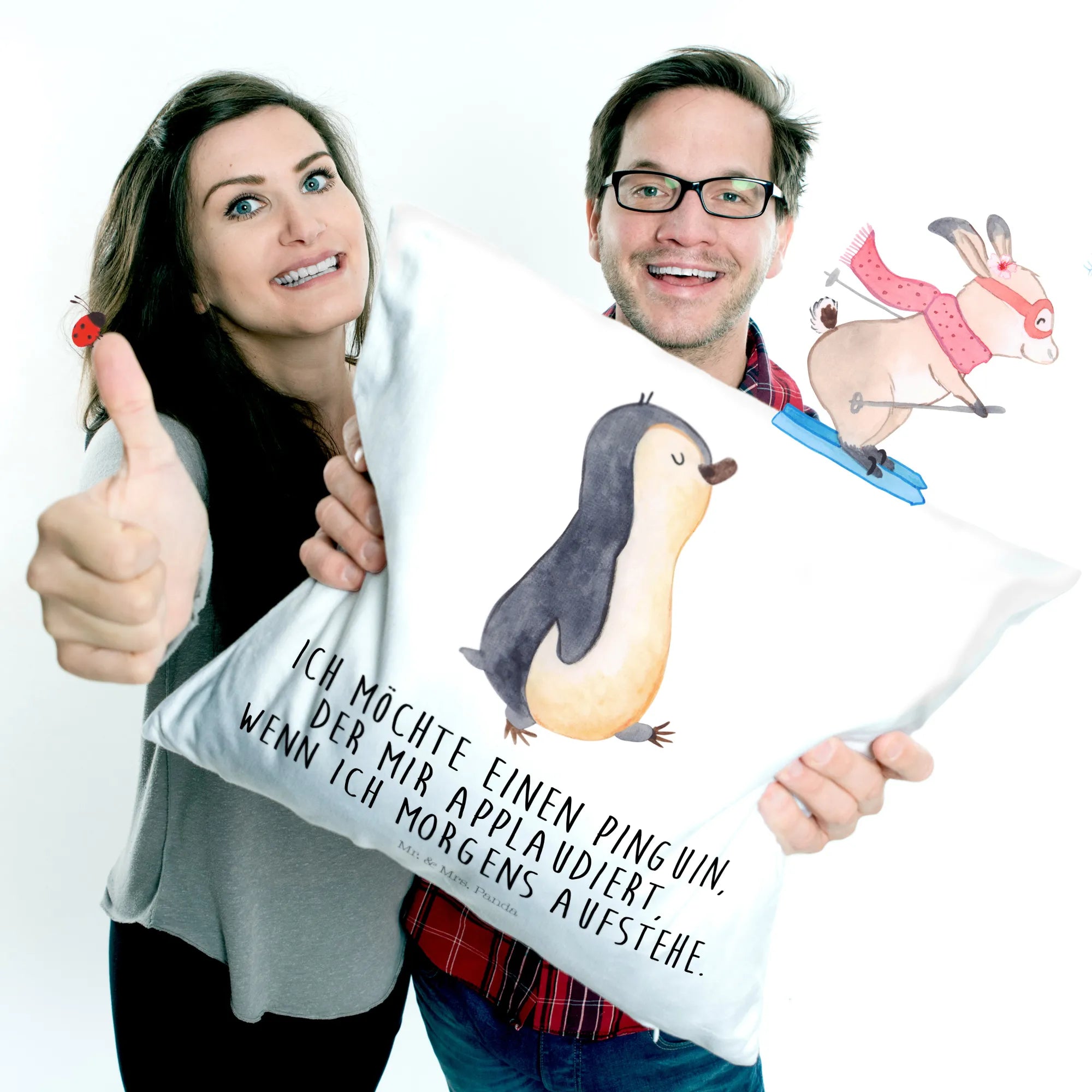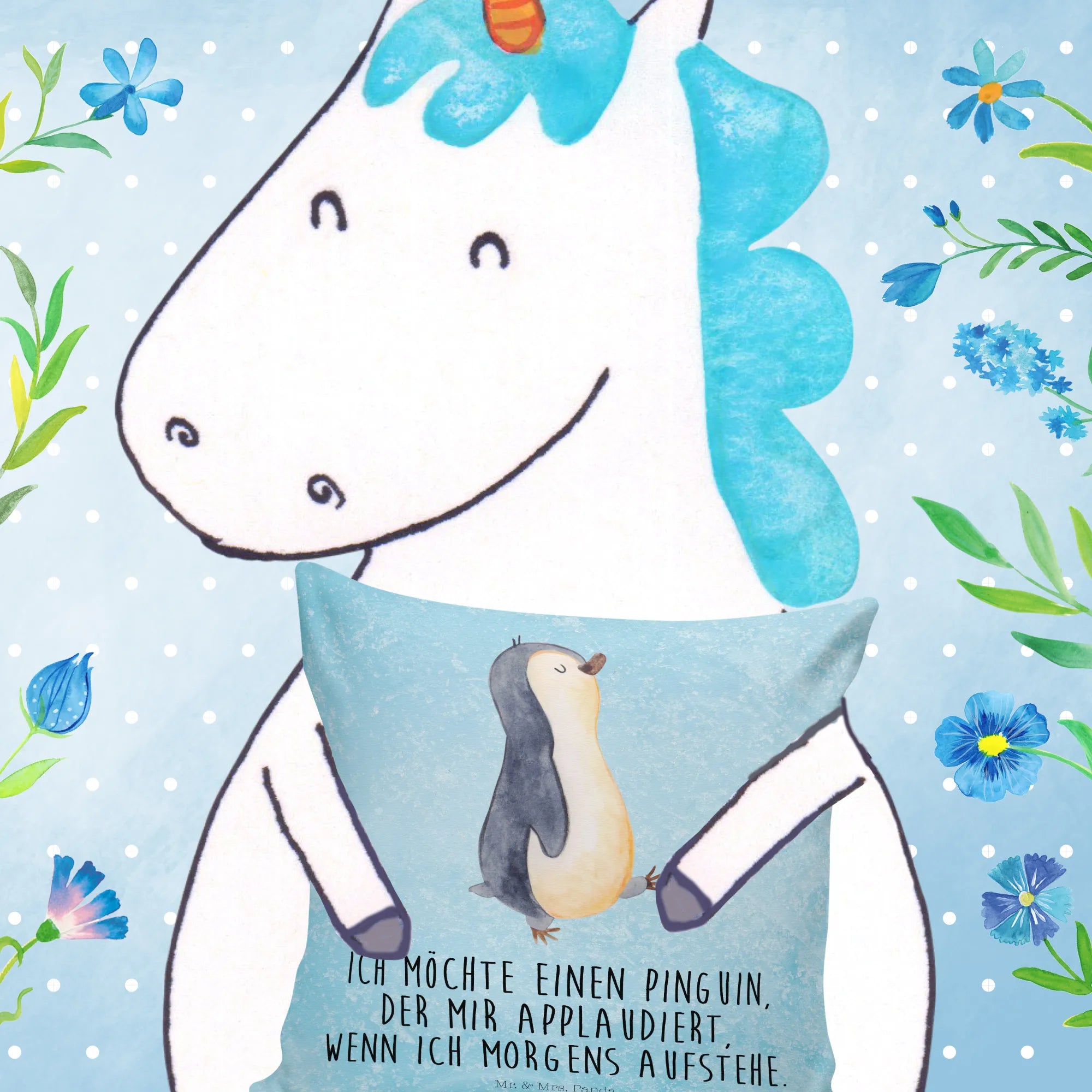 40x40 poduszka Pingwin maszerować - z napisem - Eisblau