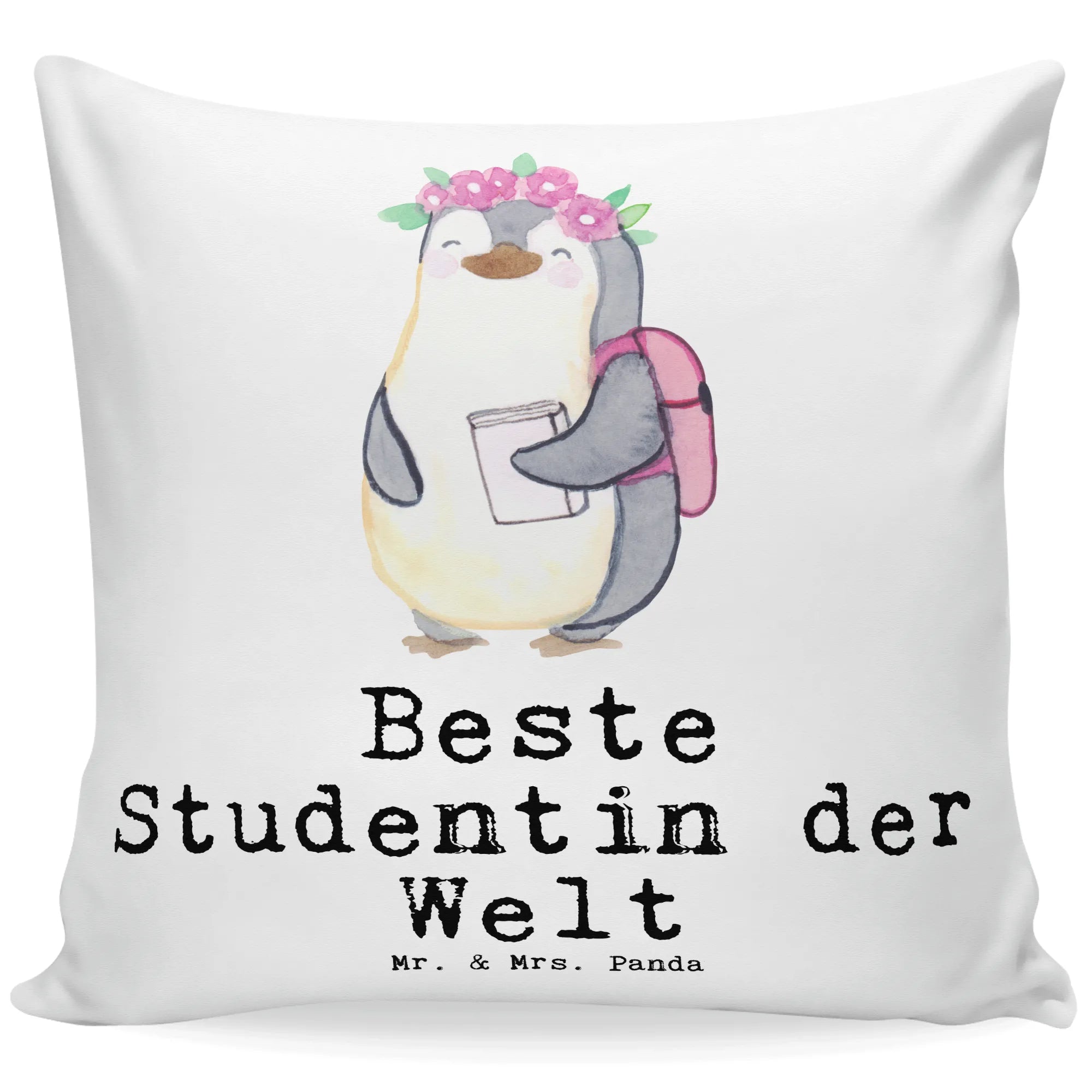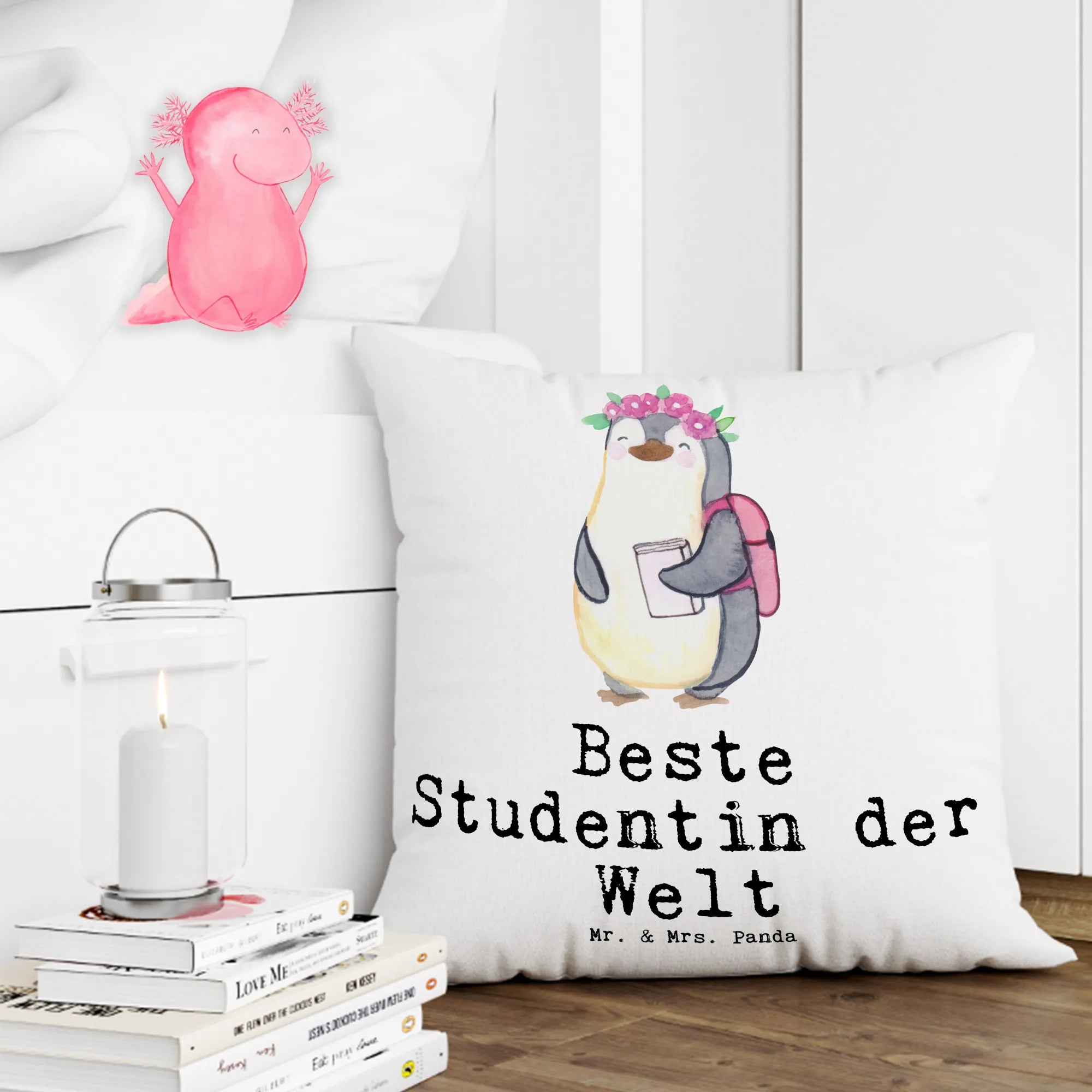 40x40 poduszka Pingwin Najlepsza studentka na świecie - Biały