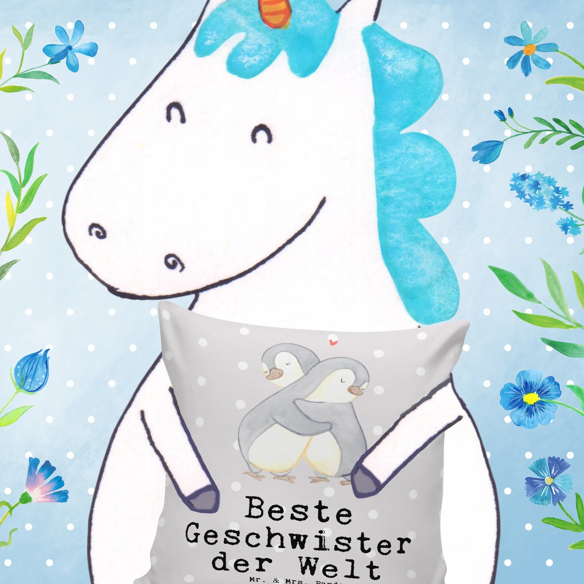 40x40 poduszka pingwin Najlepsze rodzeństwo na świecie - Pastelowy szary
