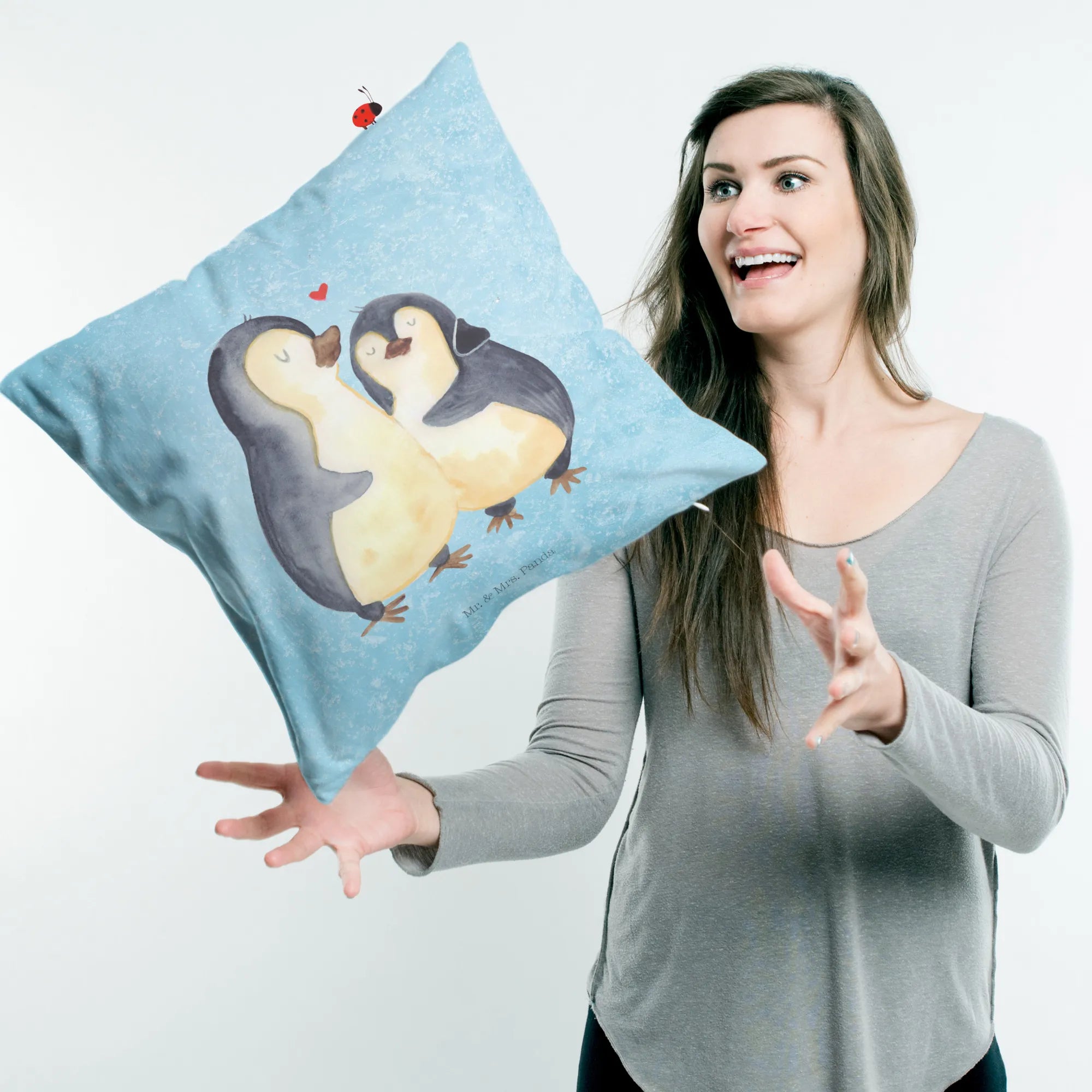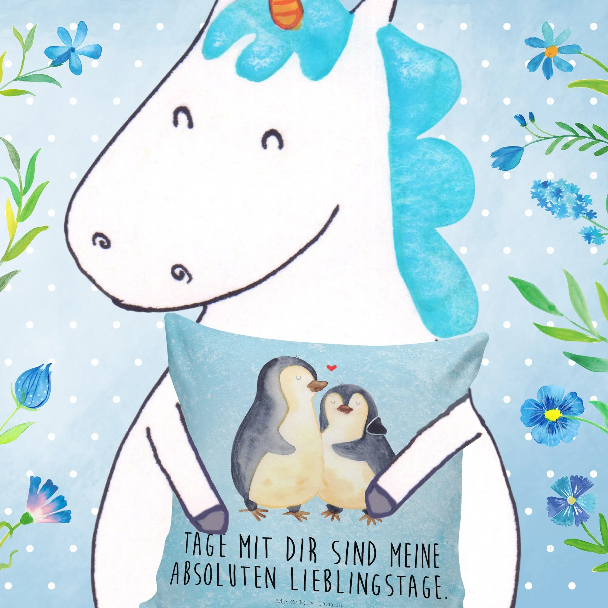 40x40 poduszka Pingwin przytulać - z napisem - lodowoniebieski