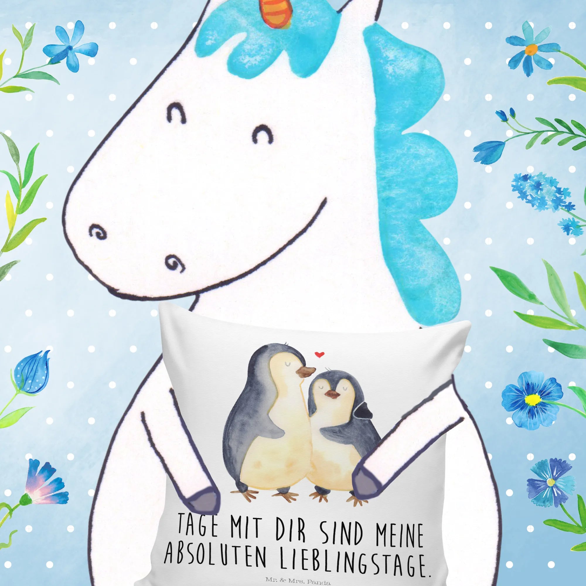 40x40 poduszka Pingwin przytulać - z napisem - lodowoniebieski