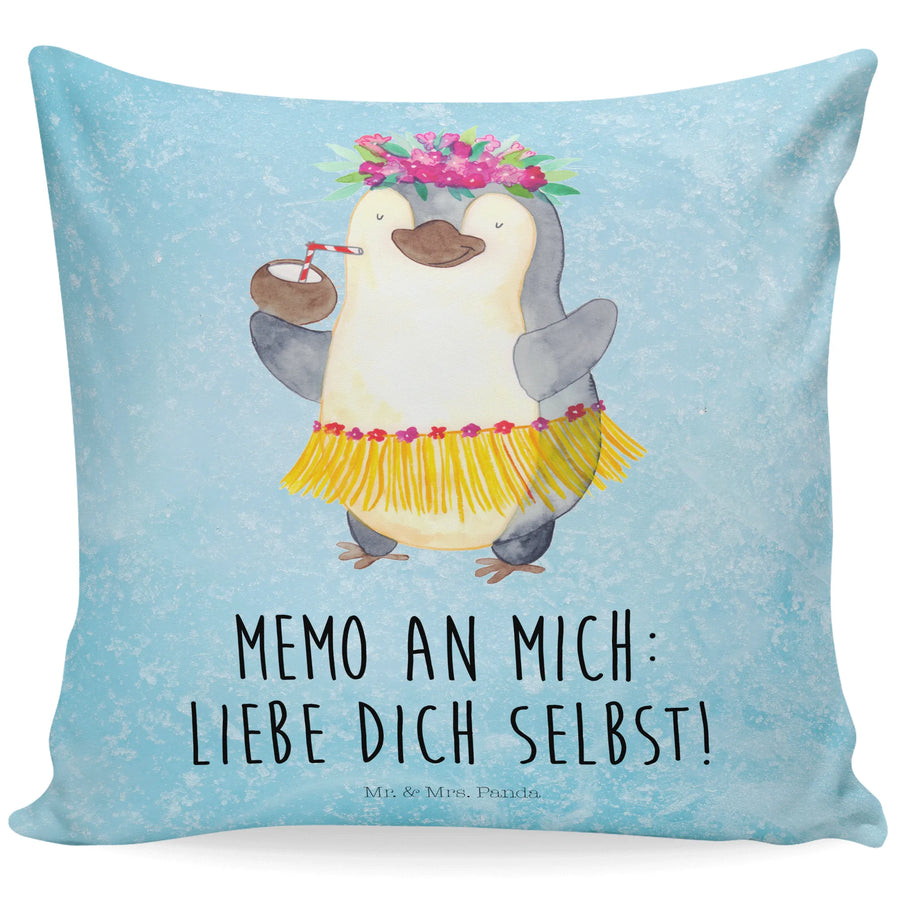 40x40 poduszka Pingwin z Kokosem - z napisem - lodowoniebieski