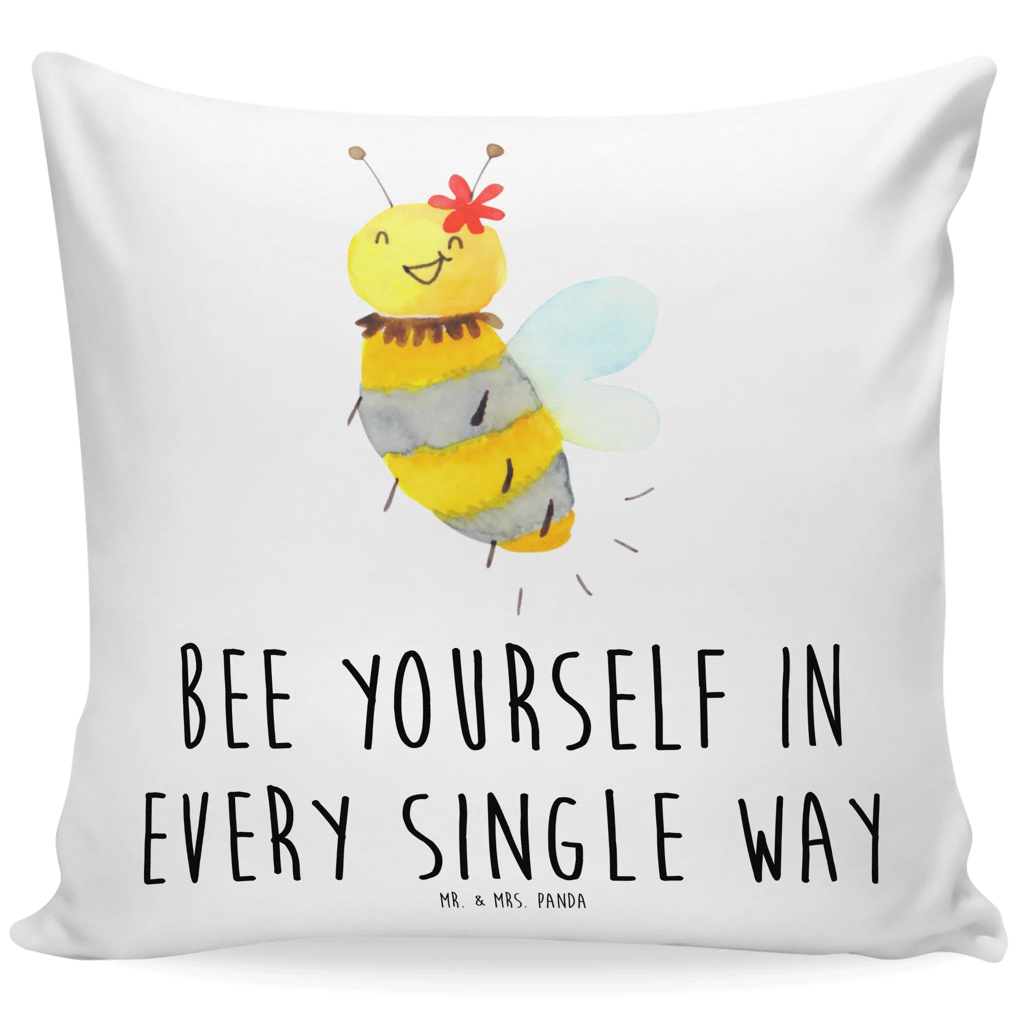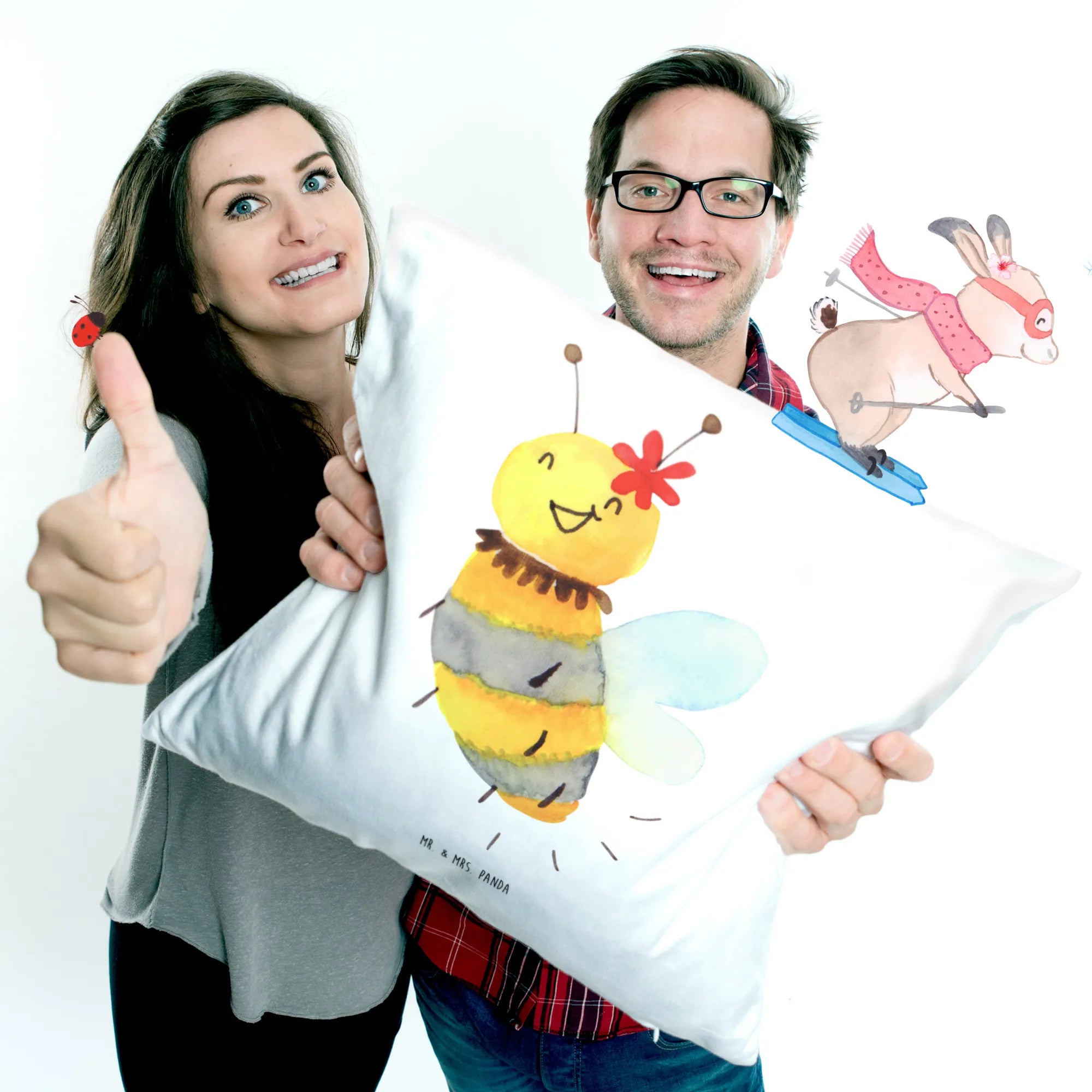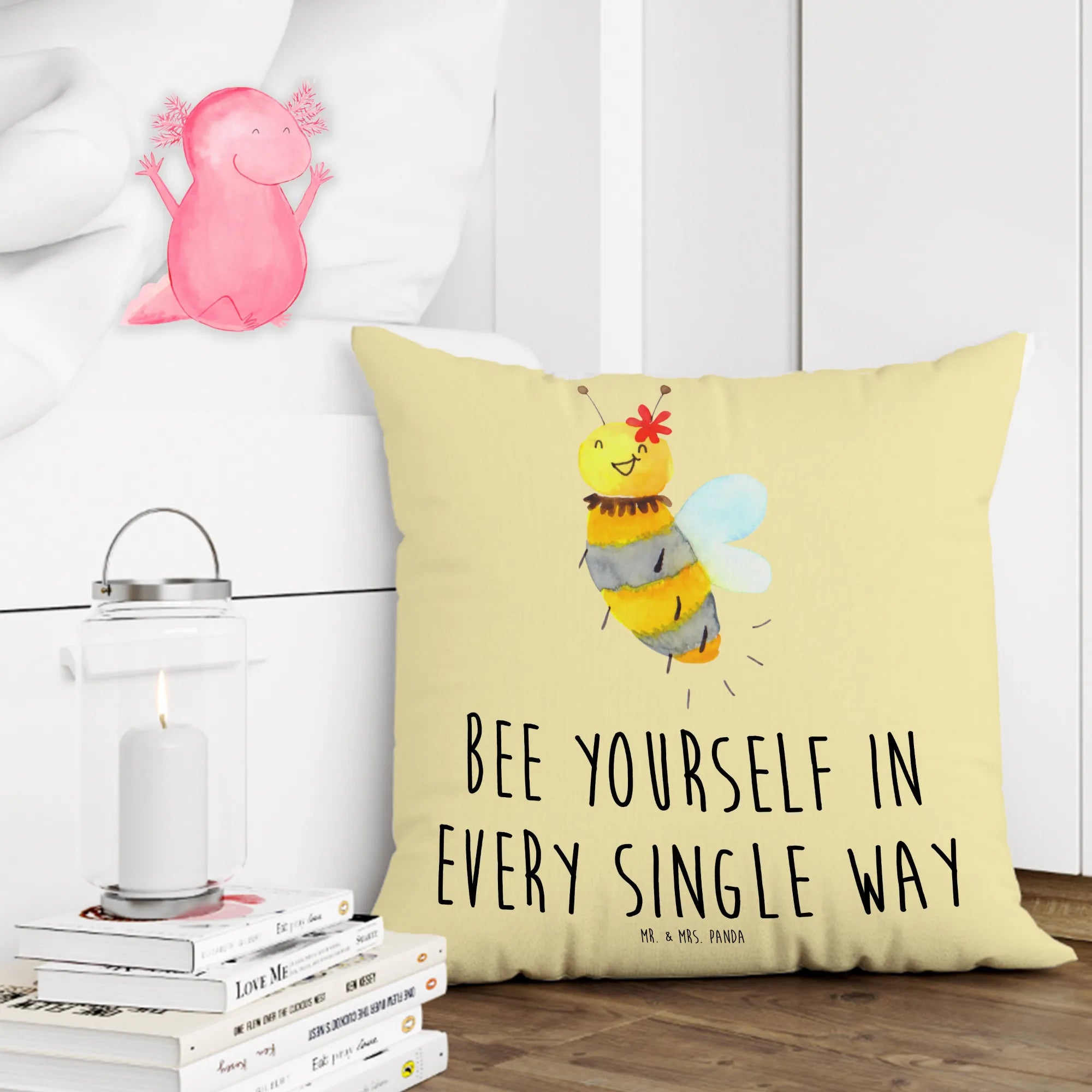 40x40 poduszka pszczoła kwiat - z napisem - Pastelowy żółty