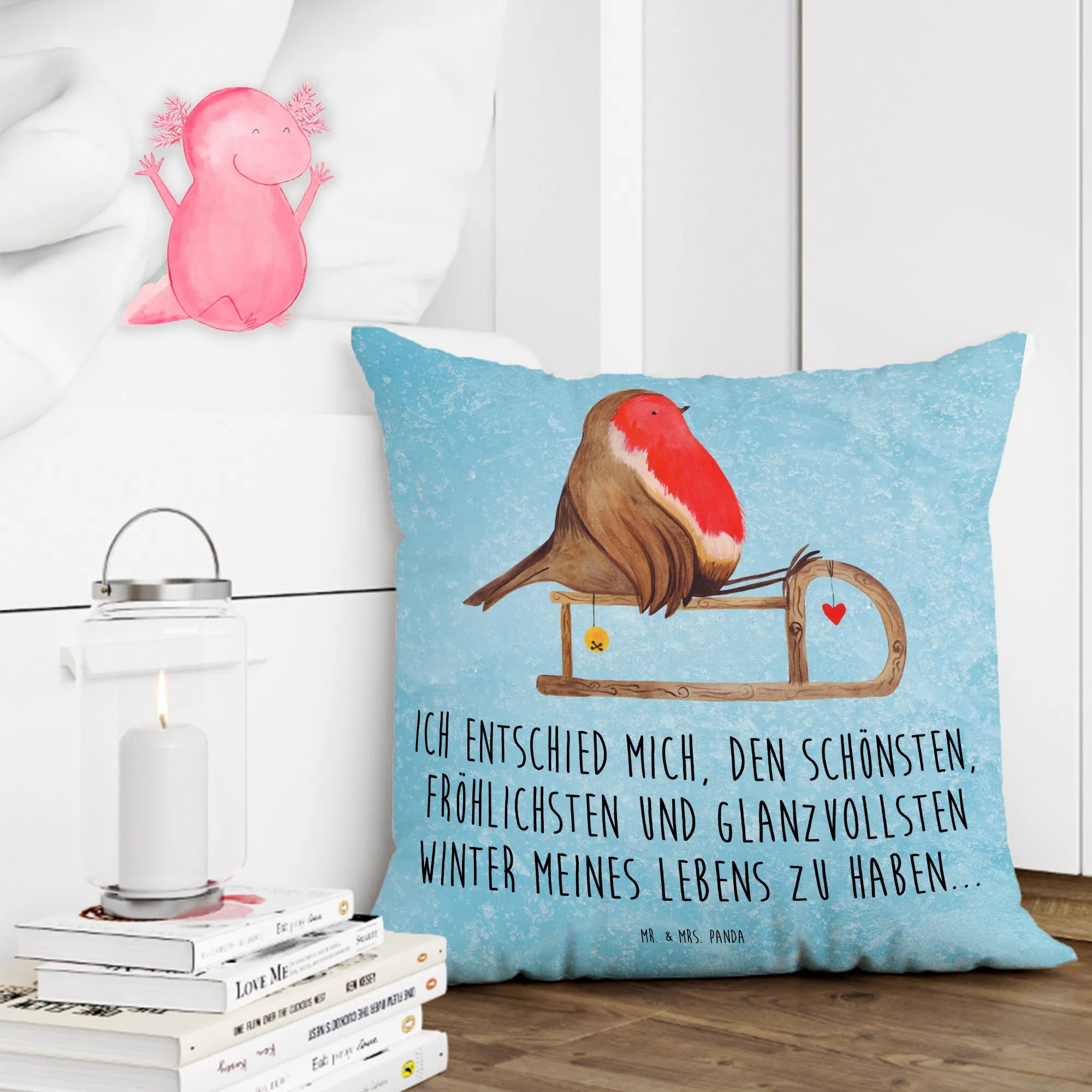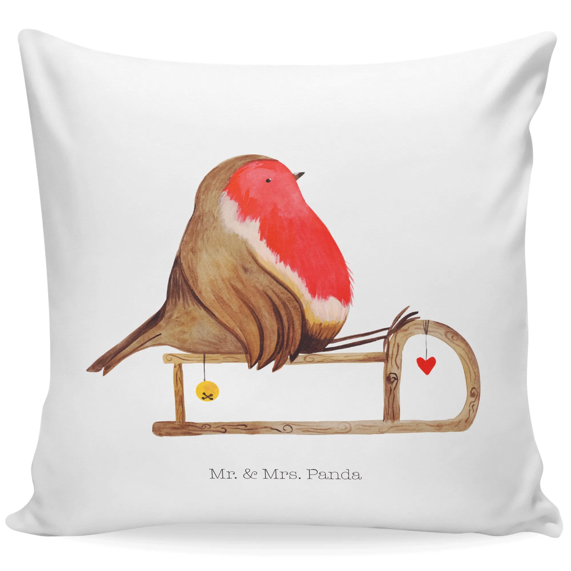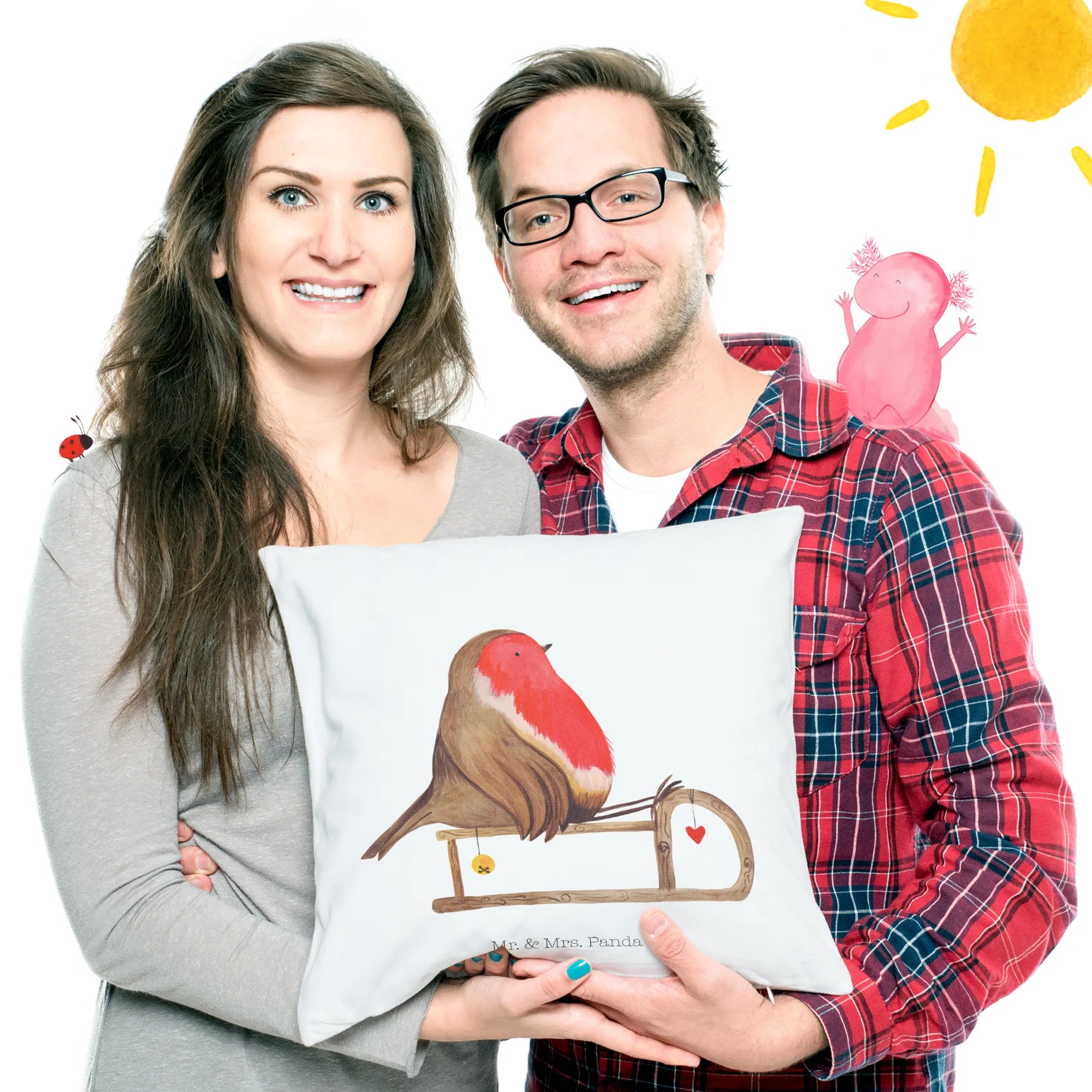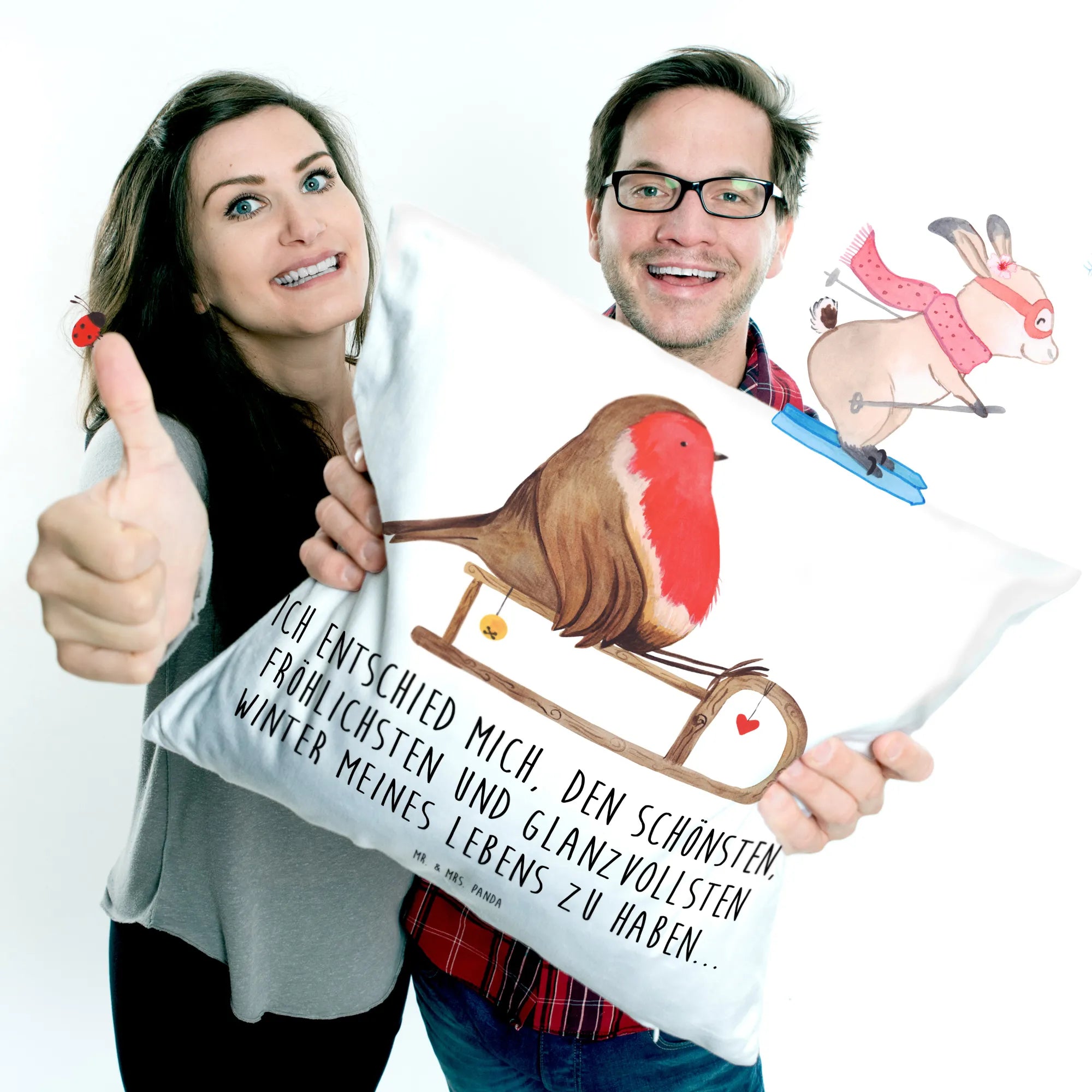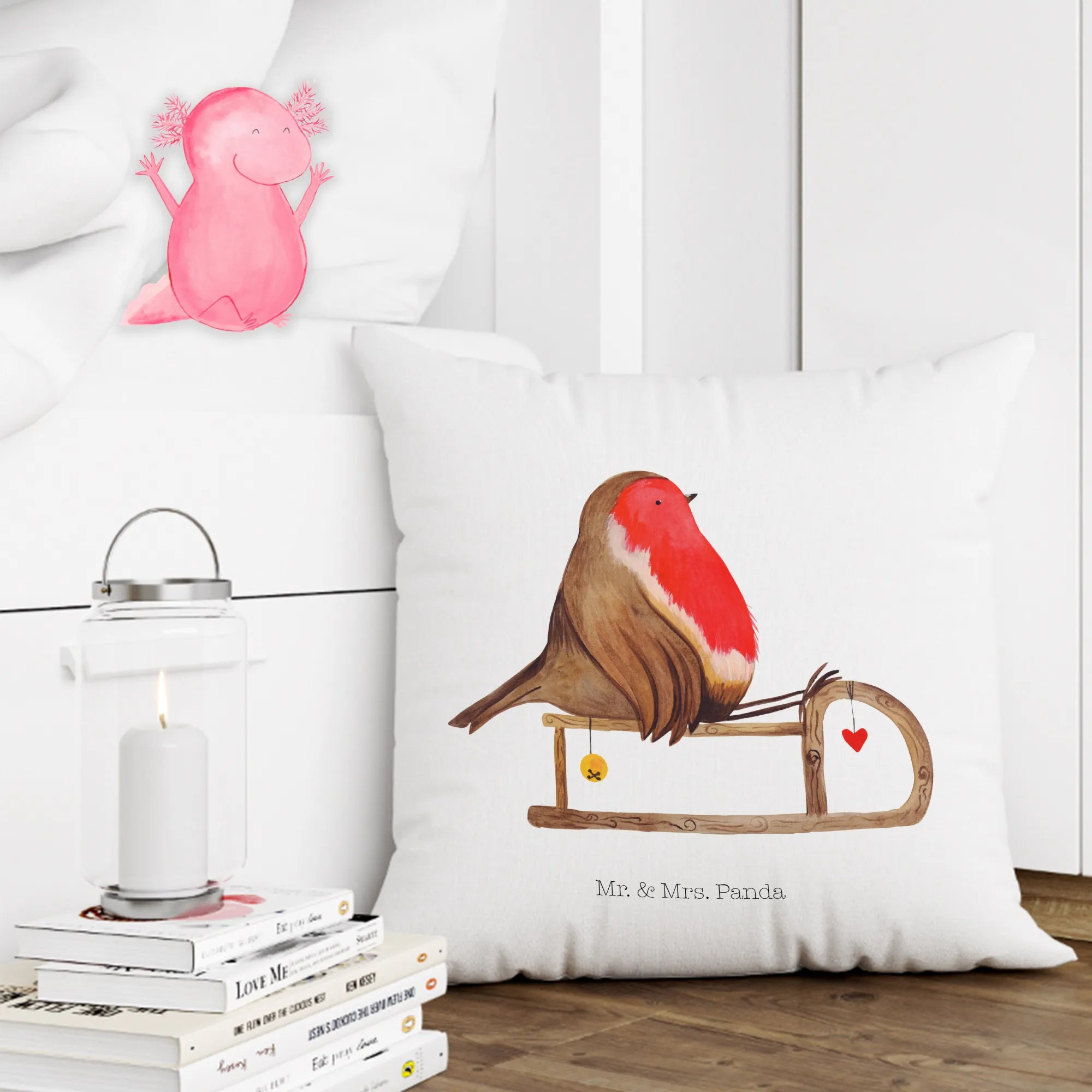 40x40 poduszka rudzik sanki - z napisem - Biały