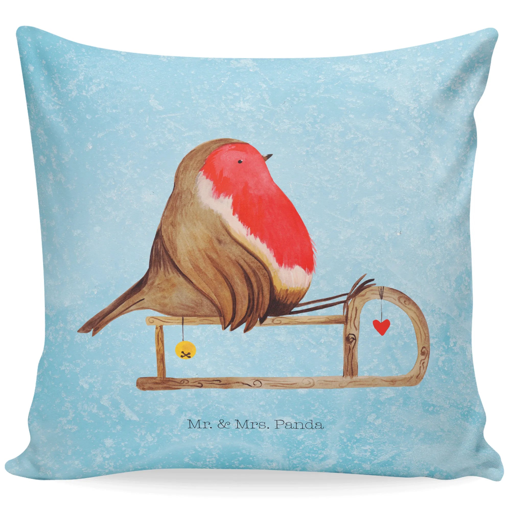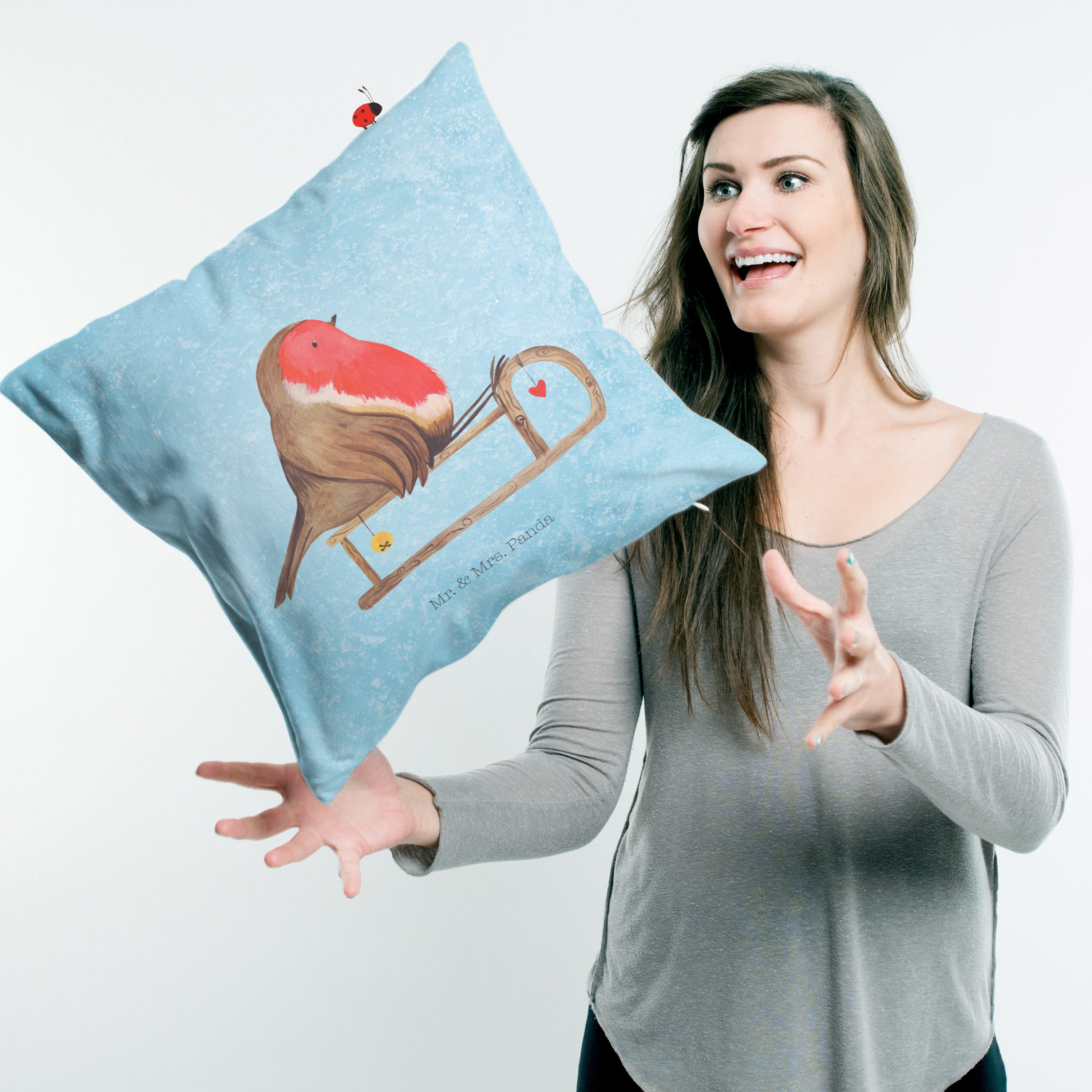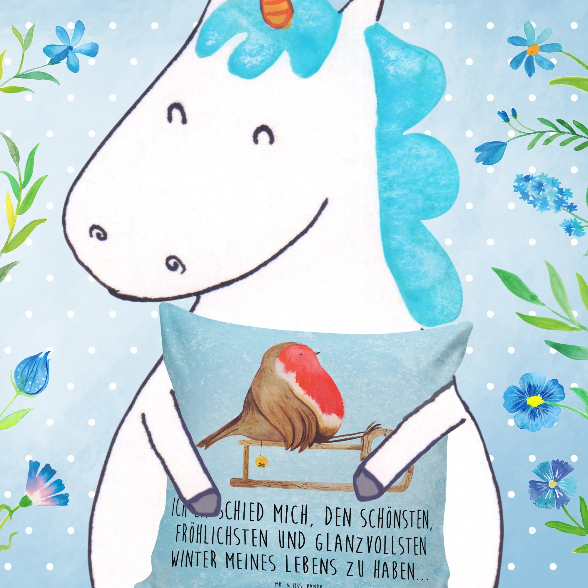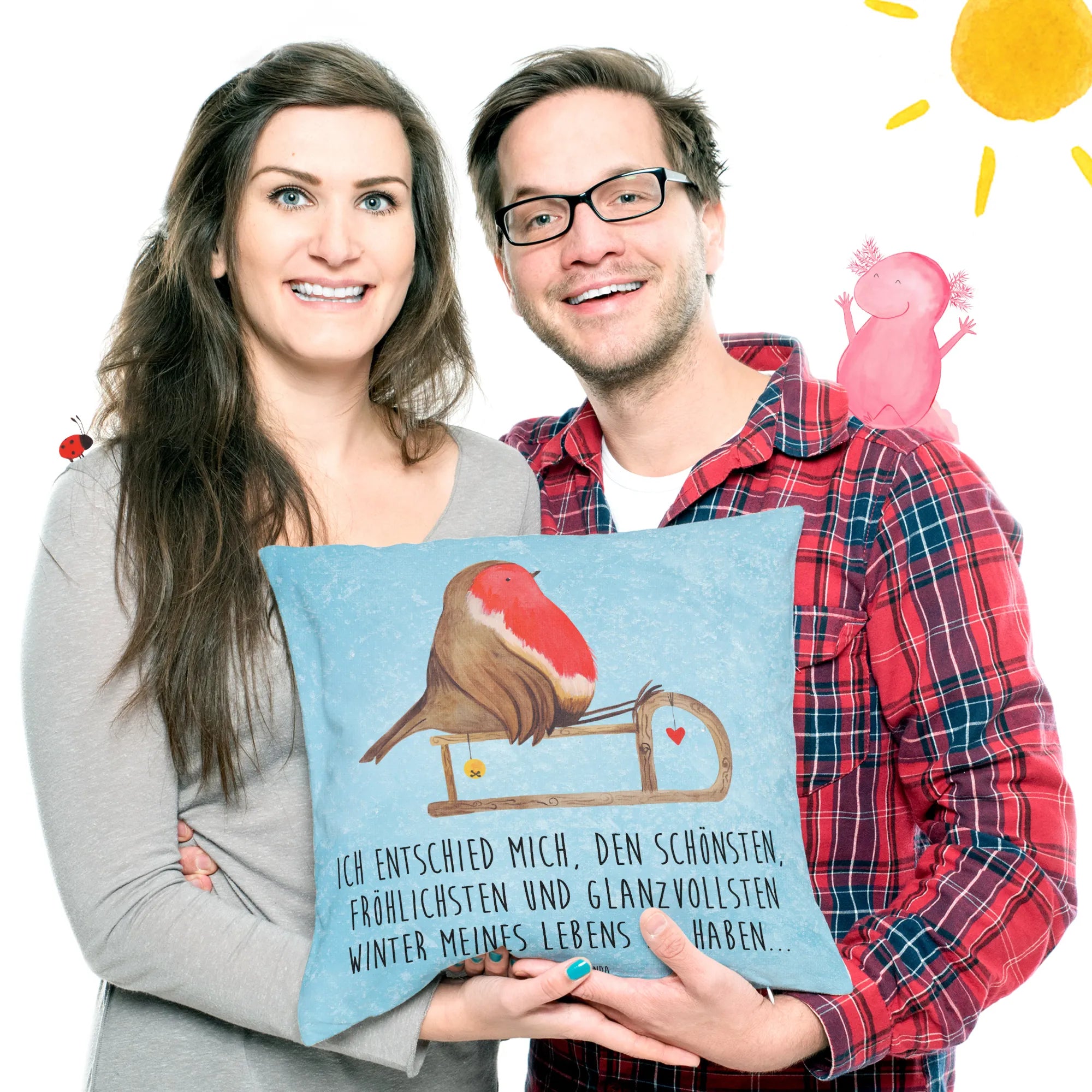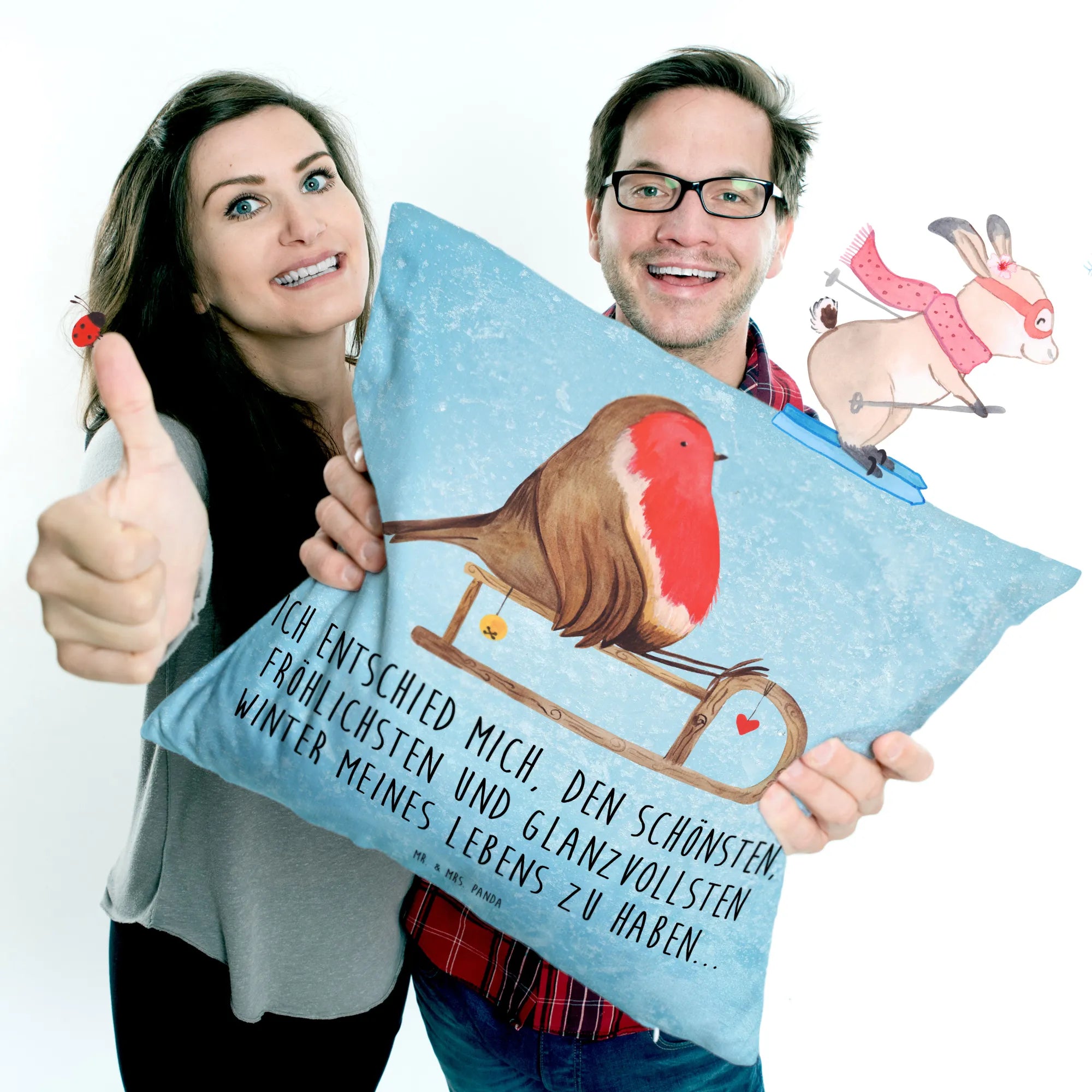 40x40 poduszka rudzik sanki - z napisem - Biały