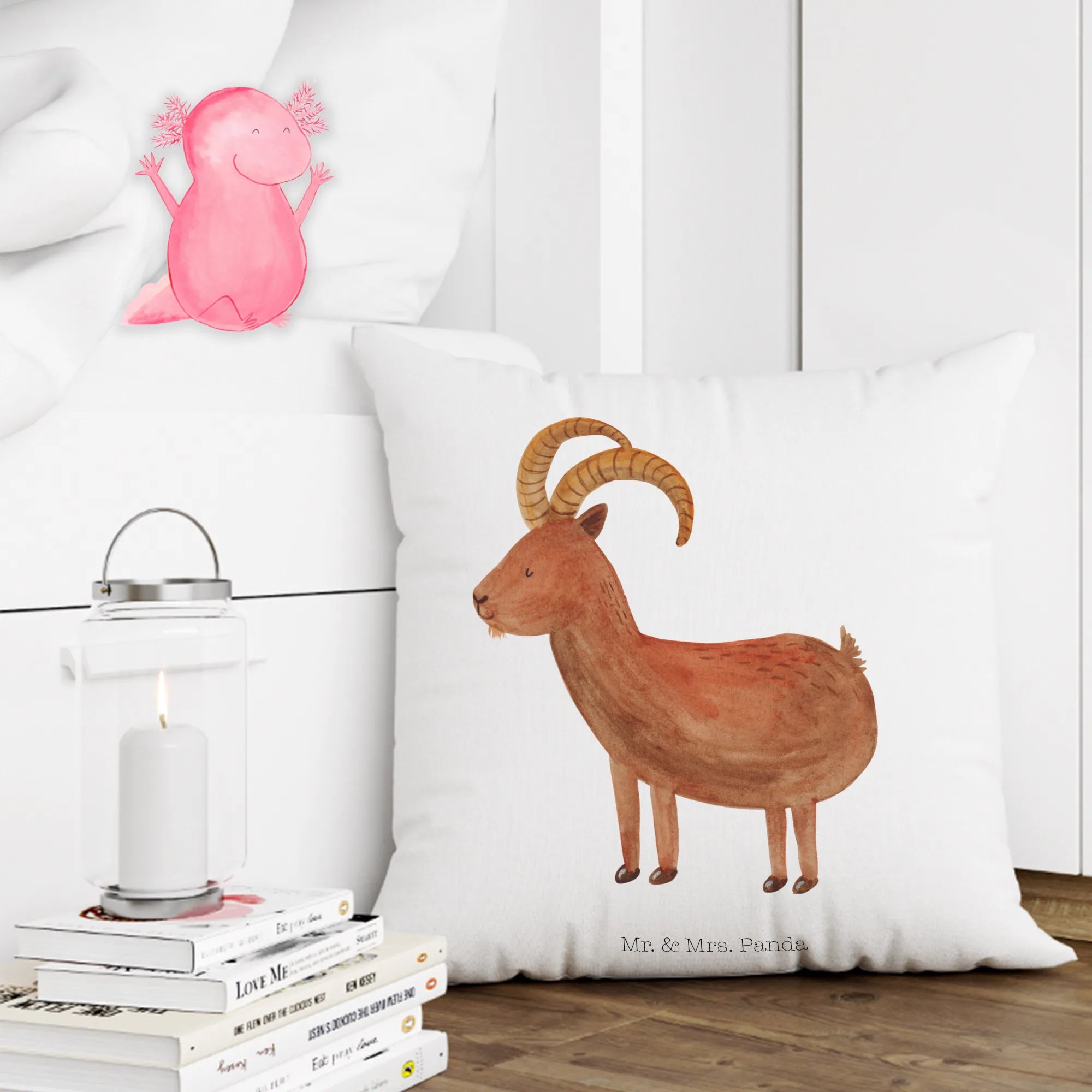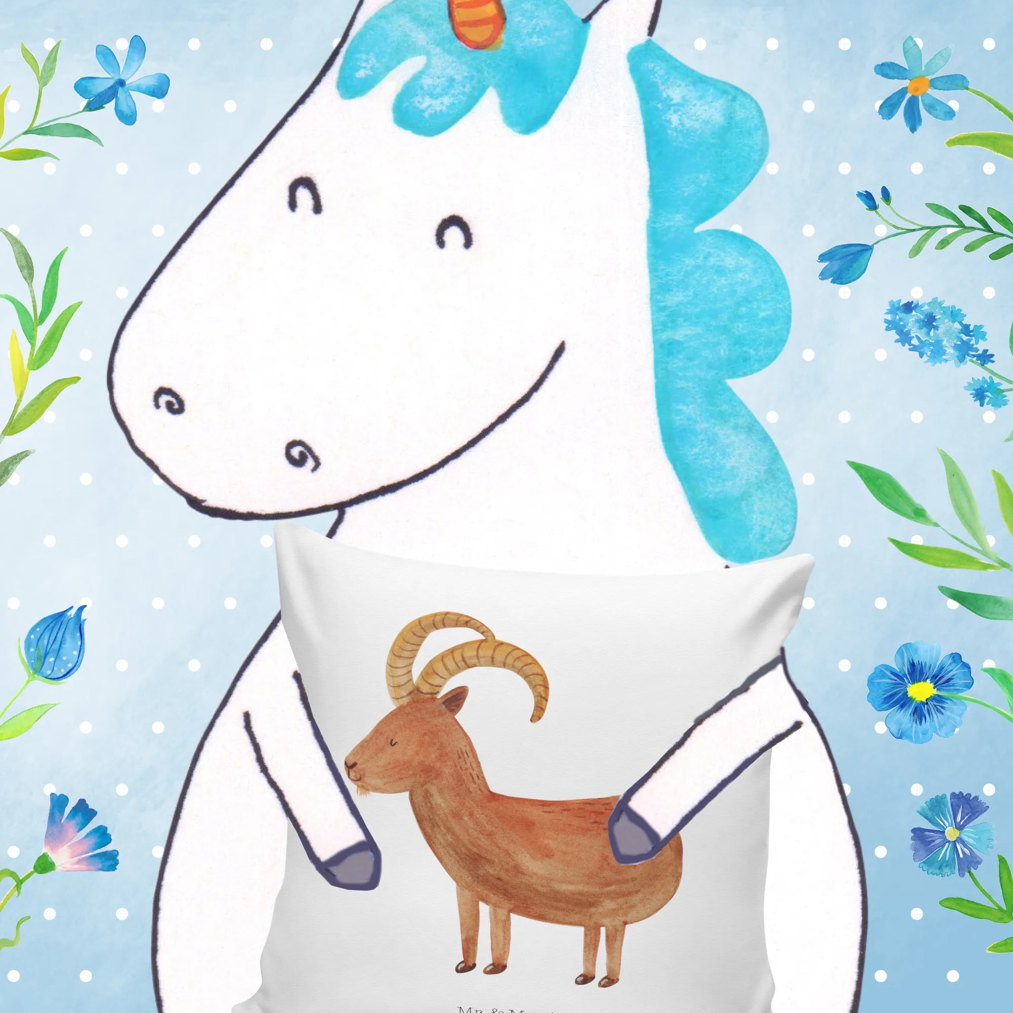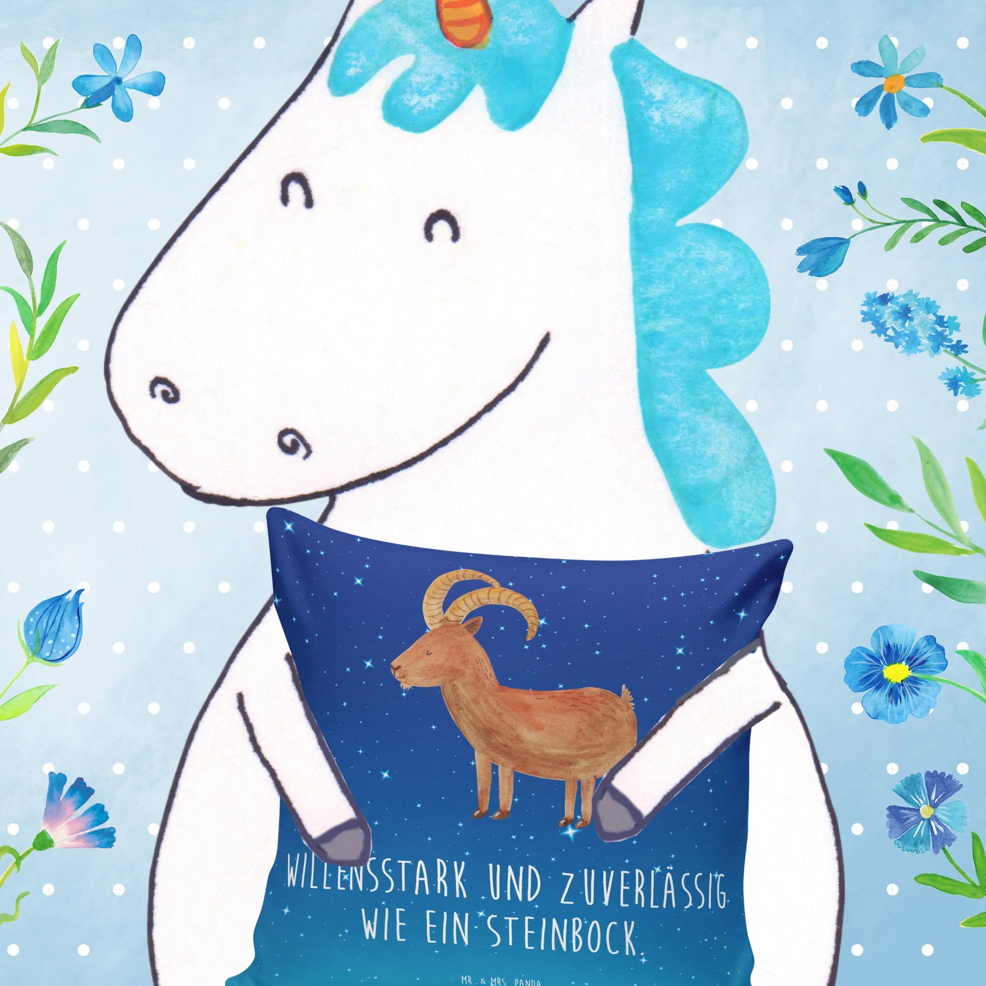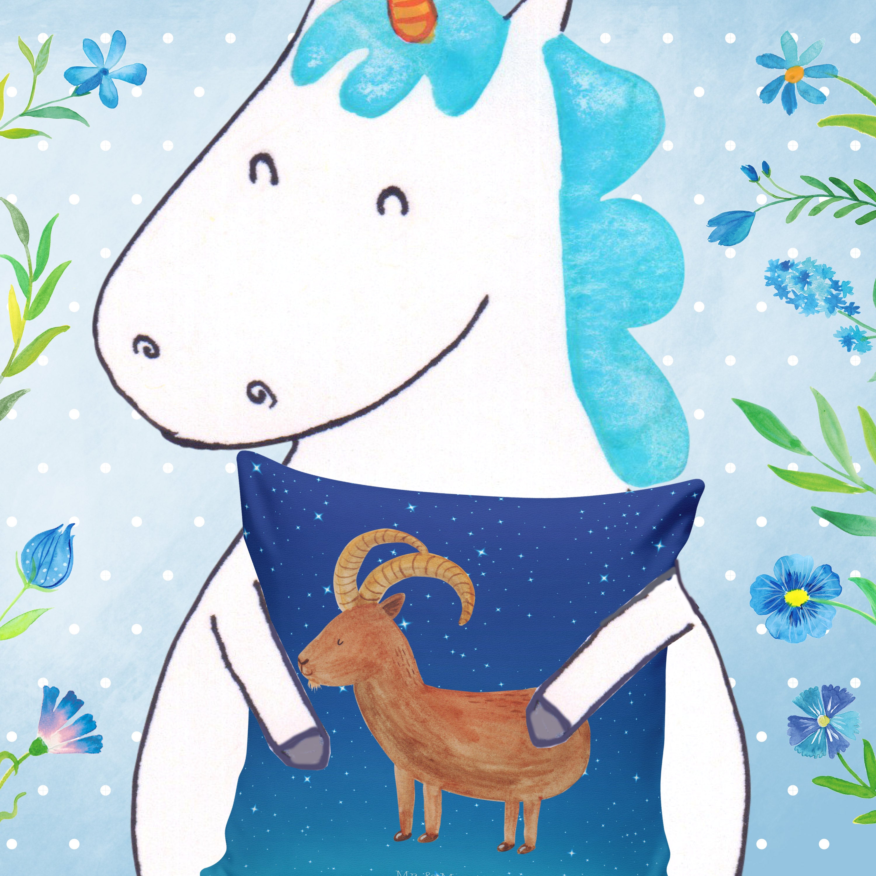 40x40 poduszka Znak zodiaku koziorożec - z napisem - biały