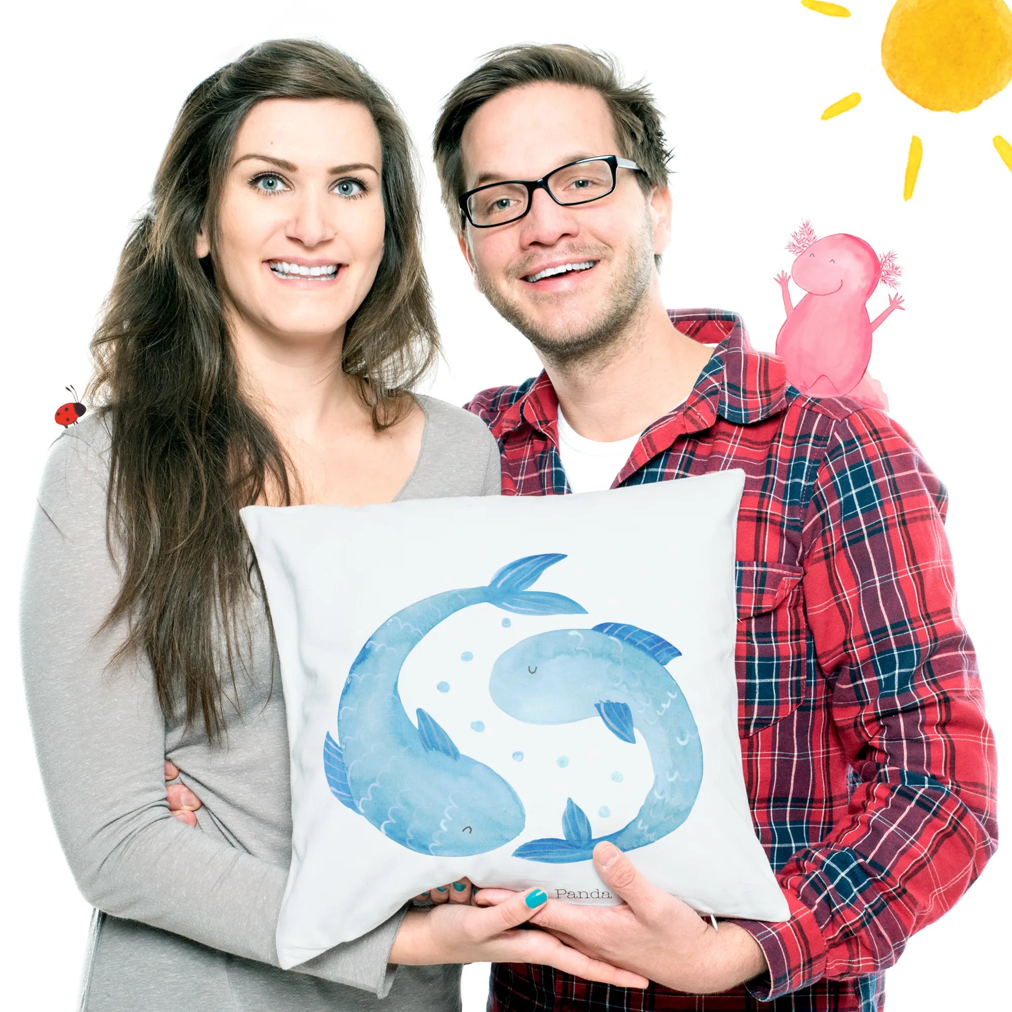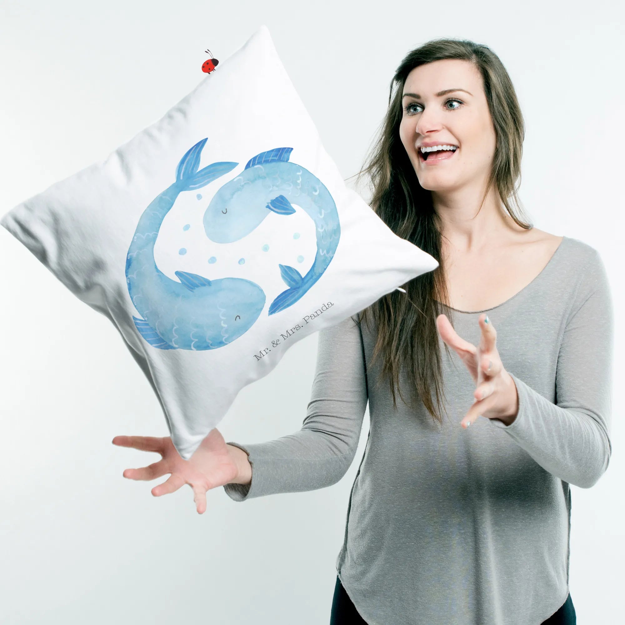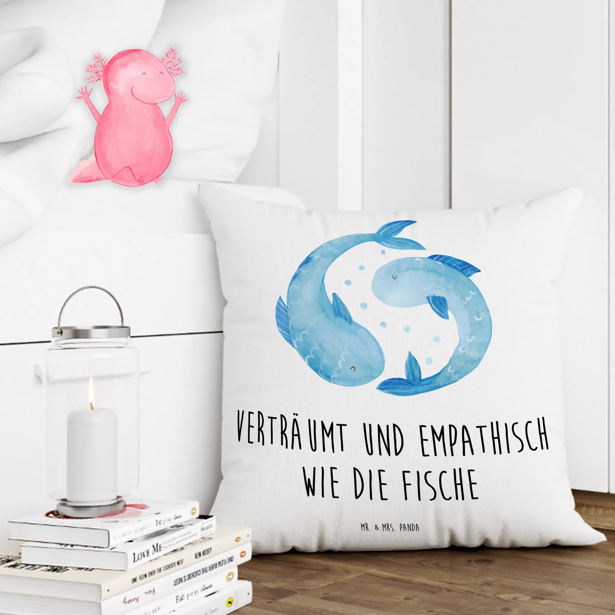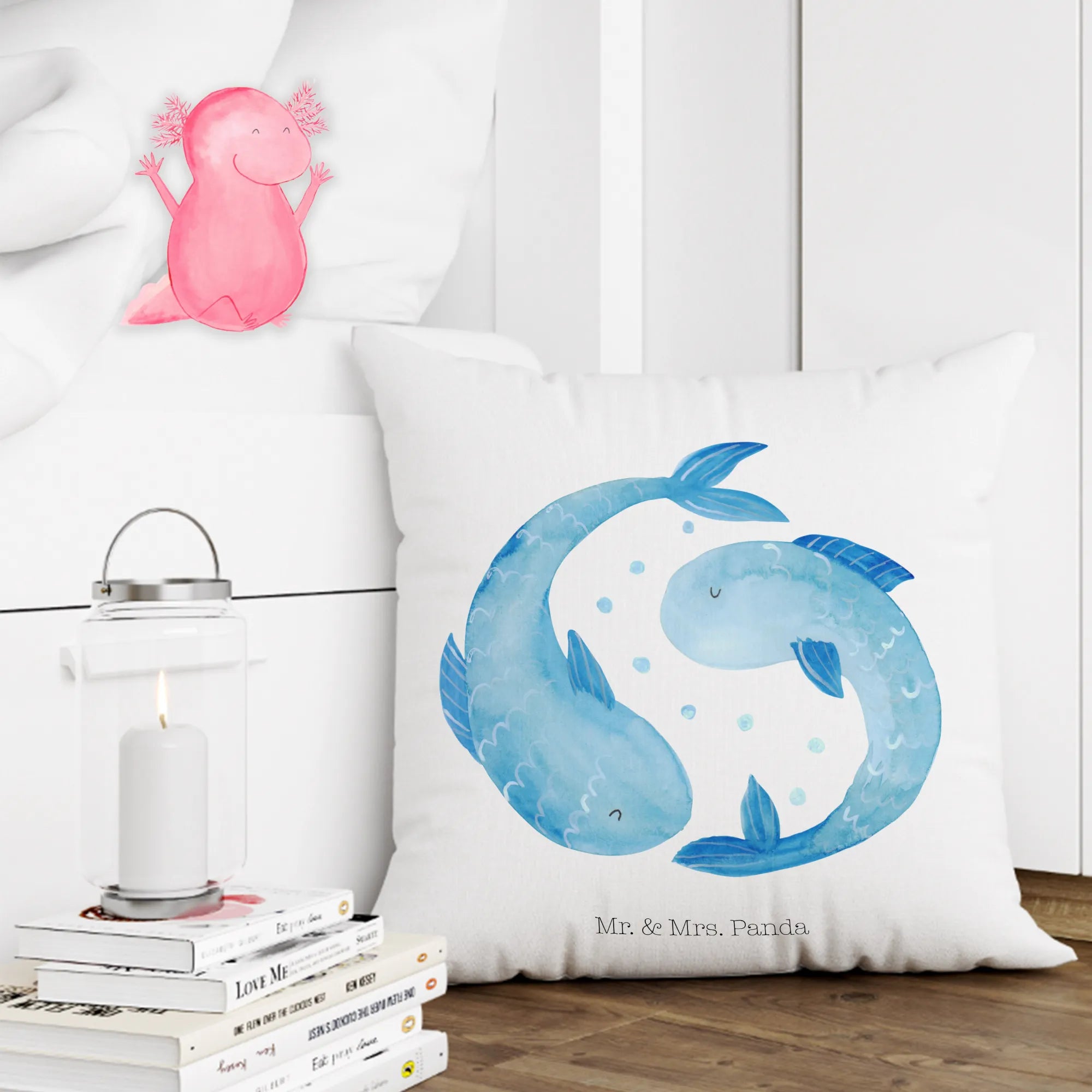 40x40 poduszka znak zodiaku Ryby - z napisem - biały