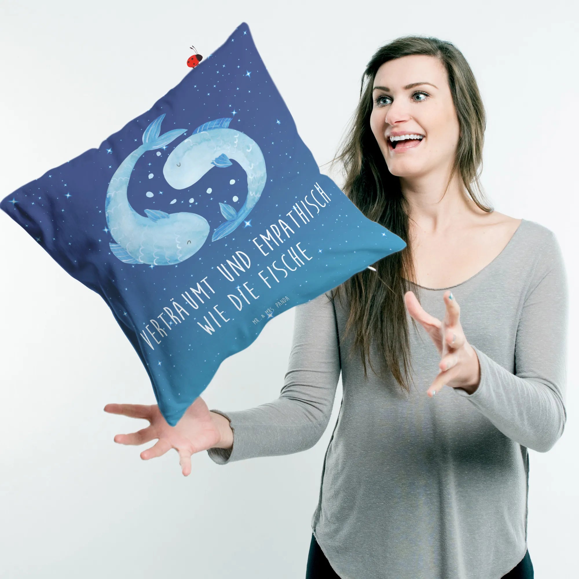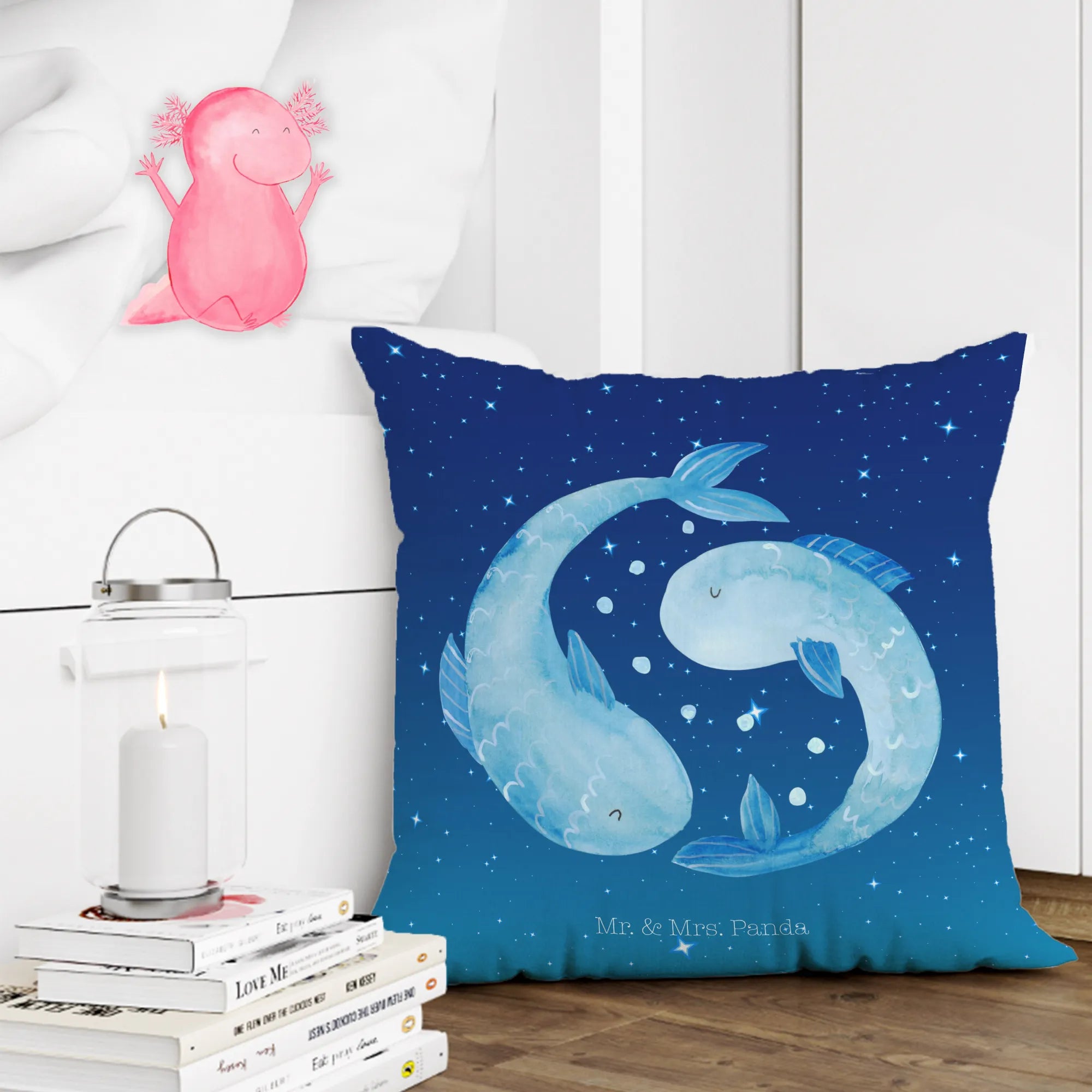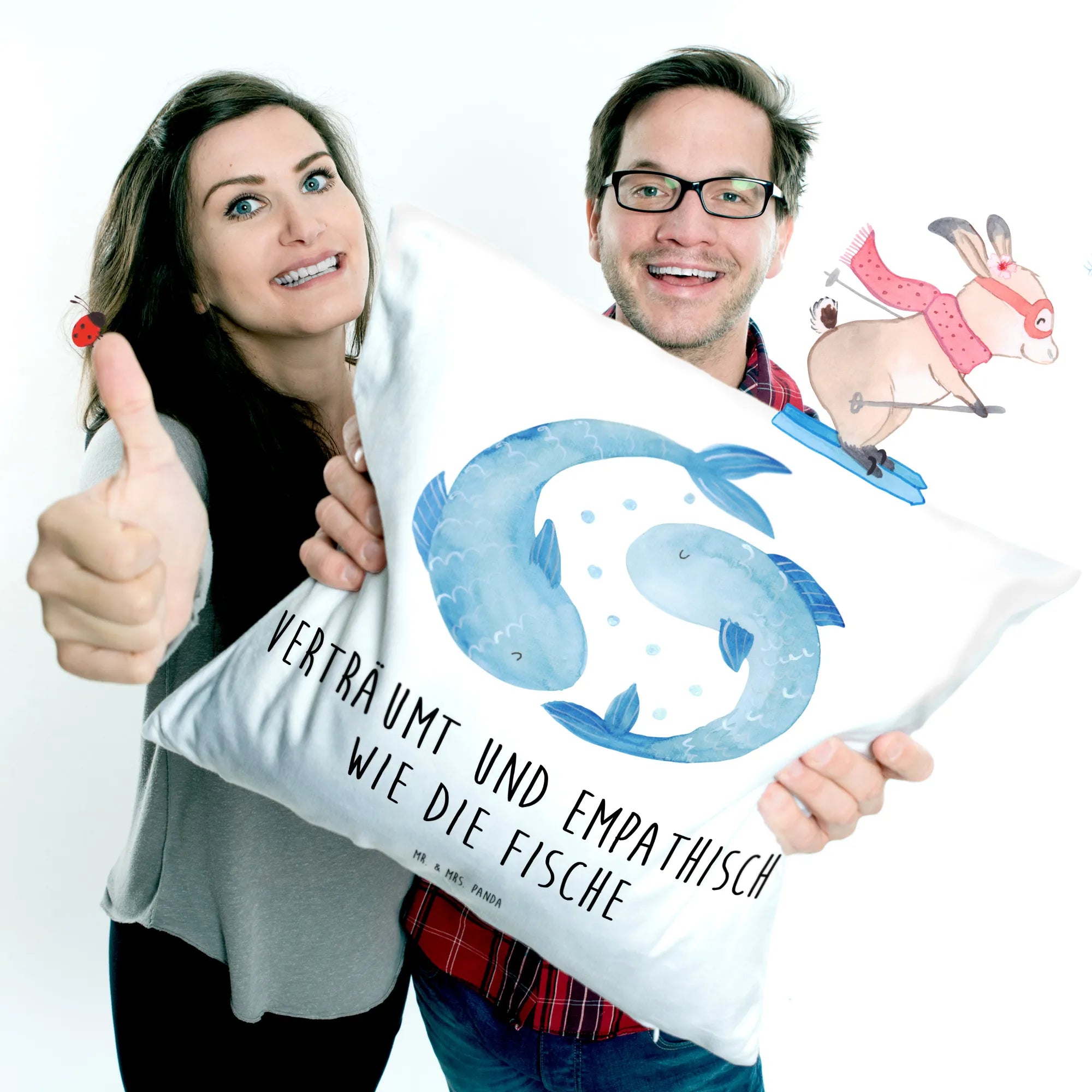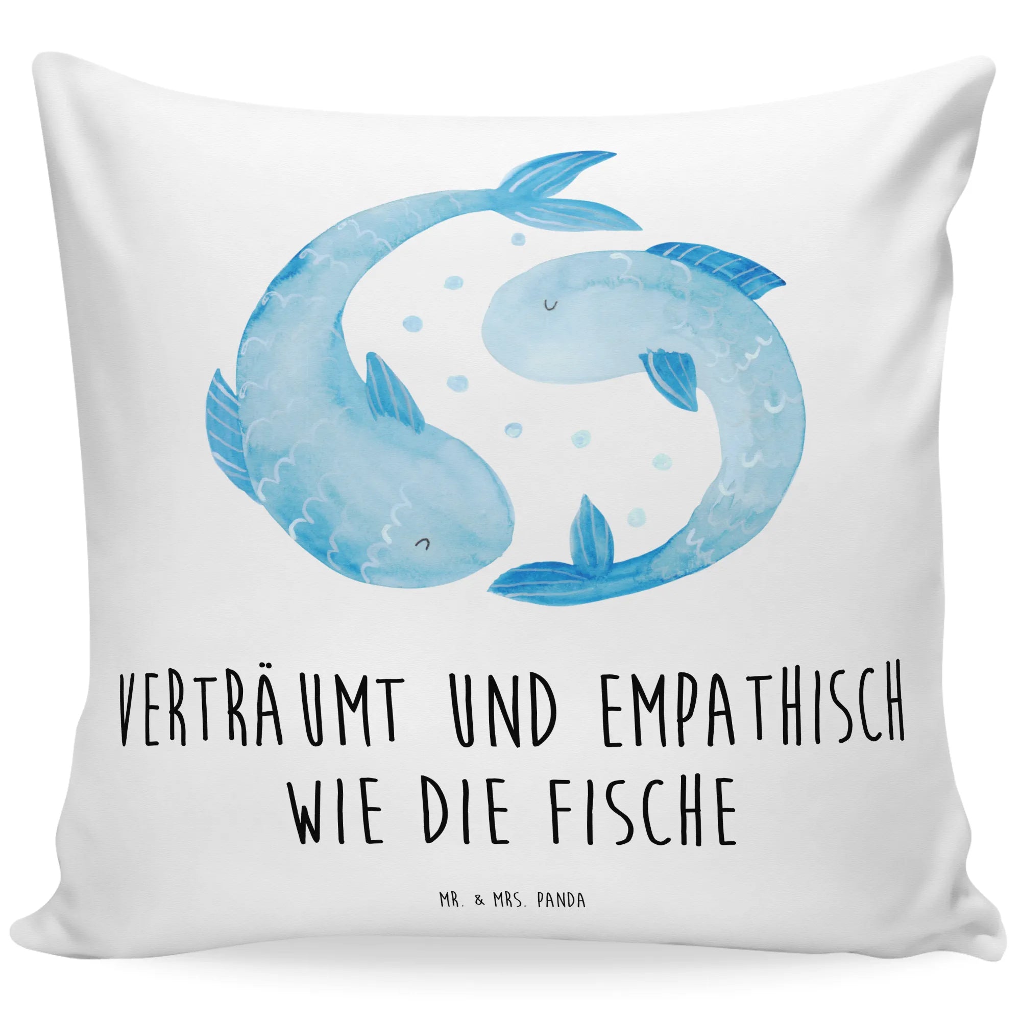 40x40 poduszka znak zodiaku Ryby - z napisem - biały