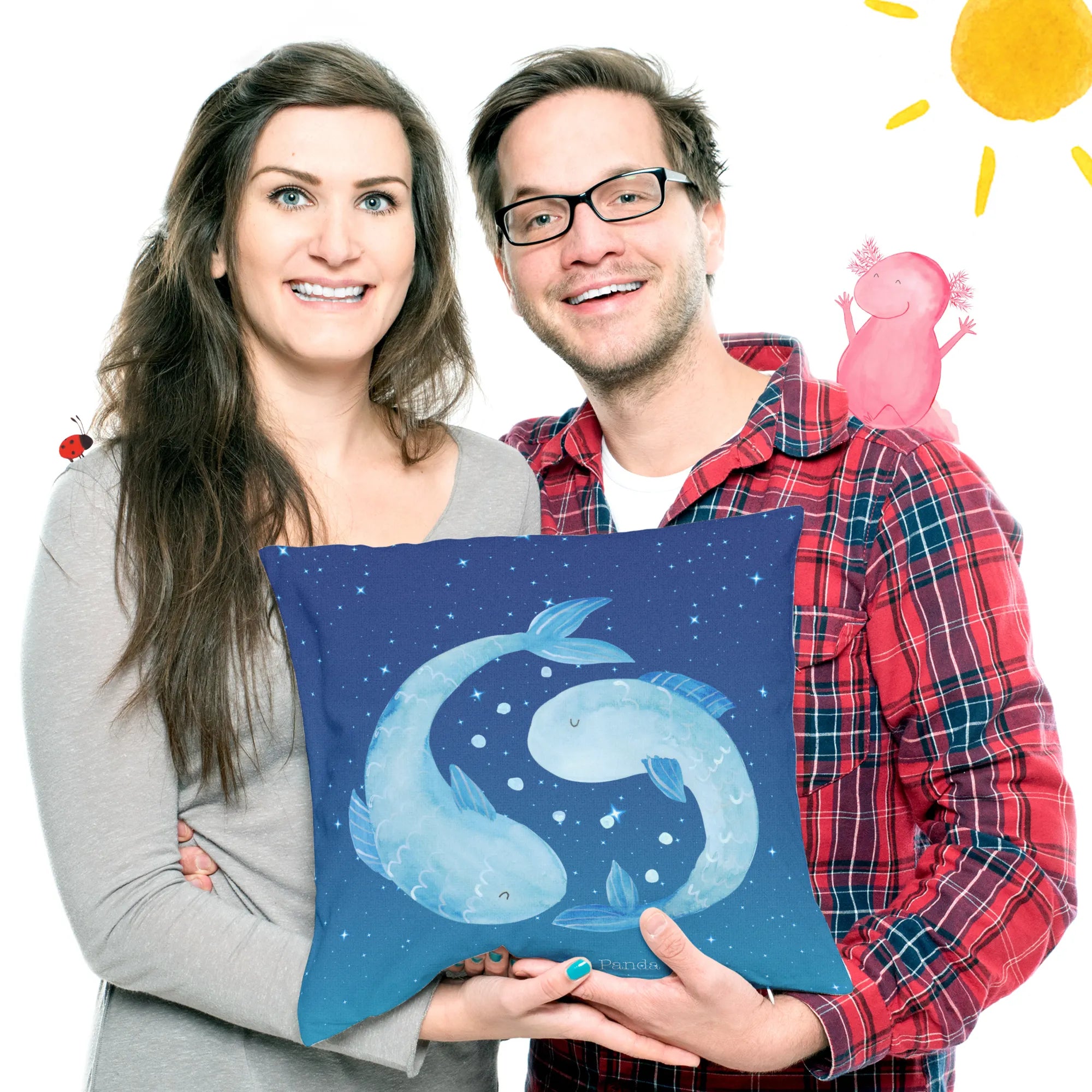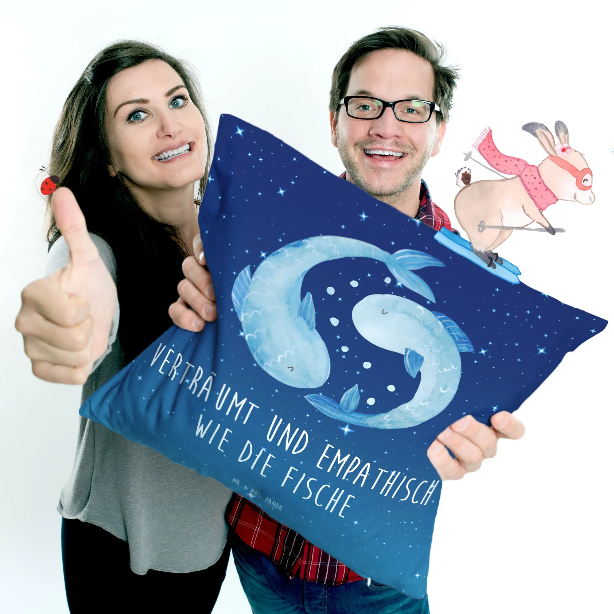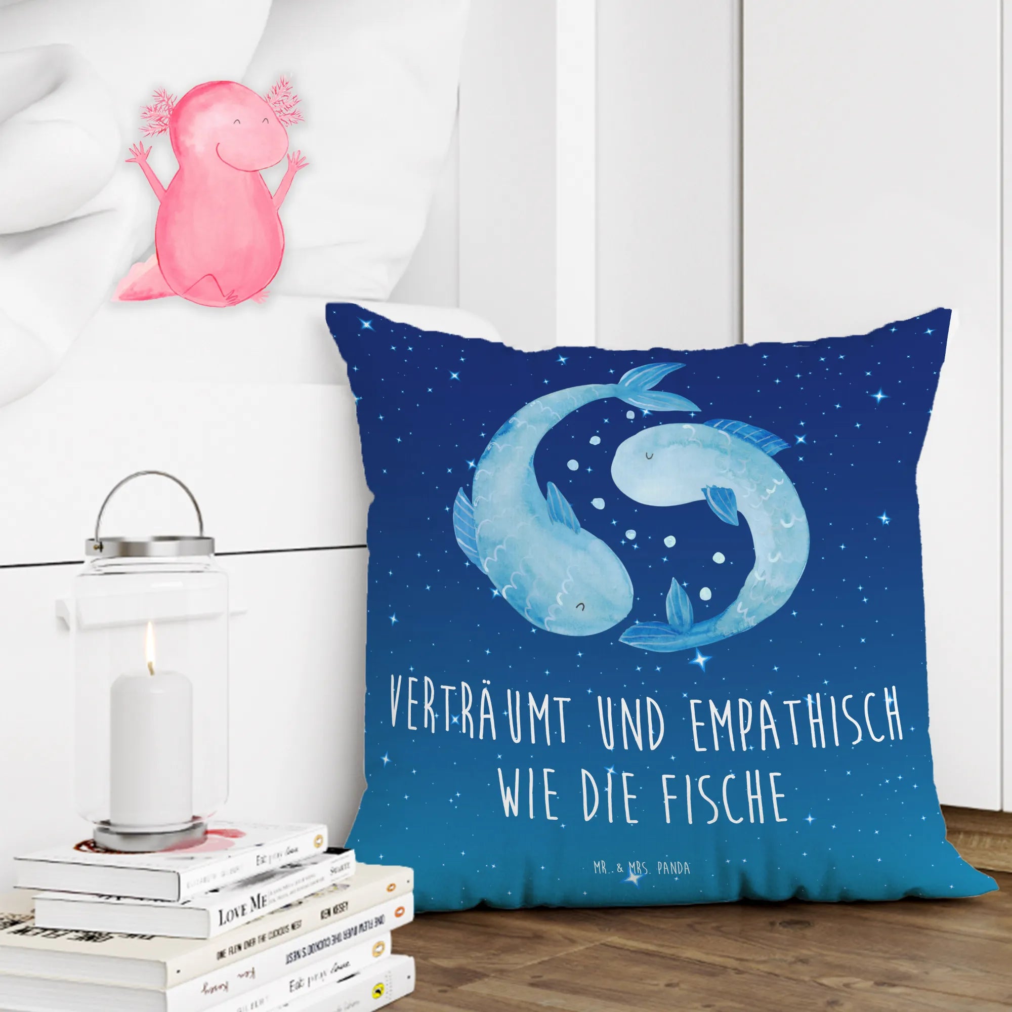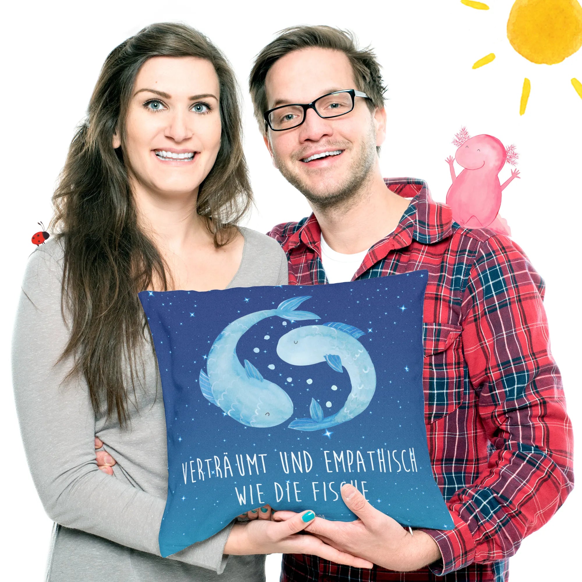 40x40 poduszka znak zodiaku Ryby - z napisem - biały