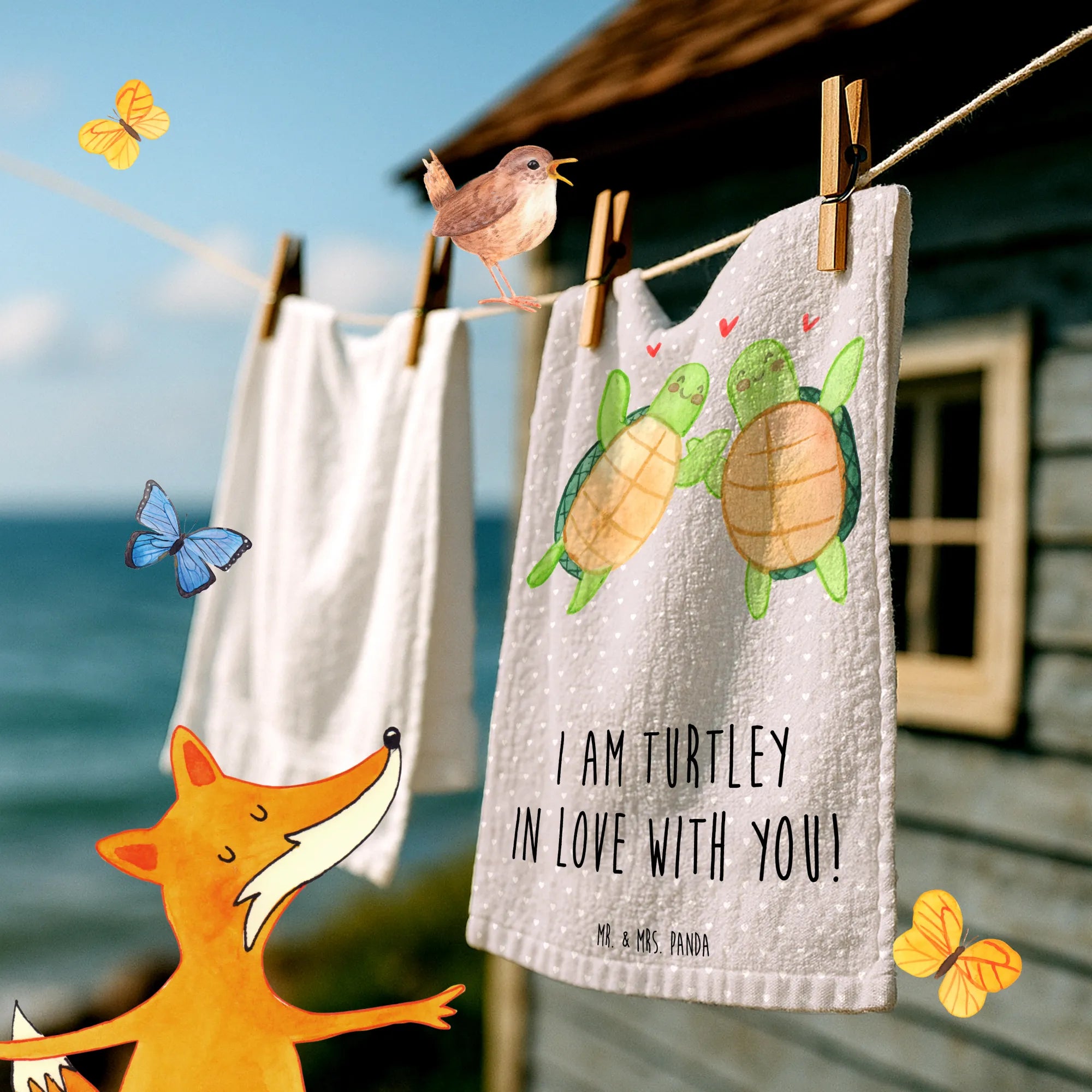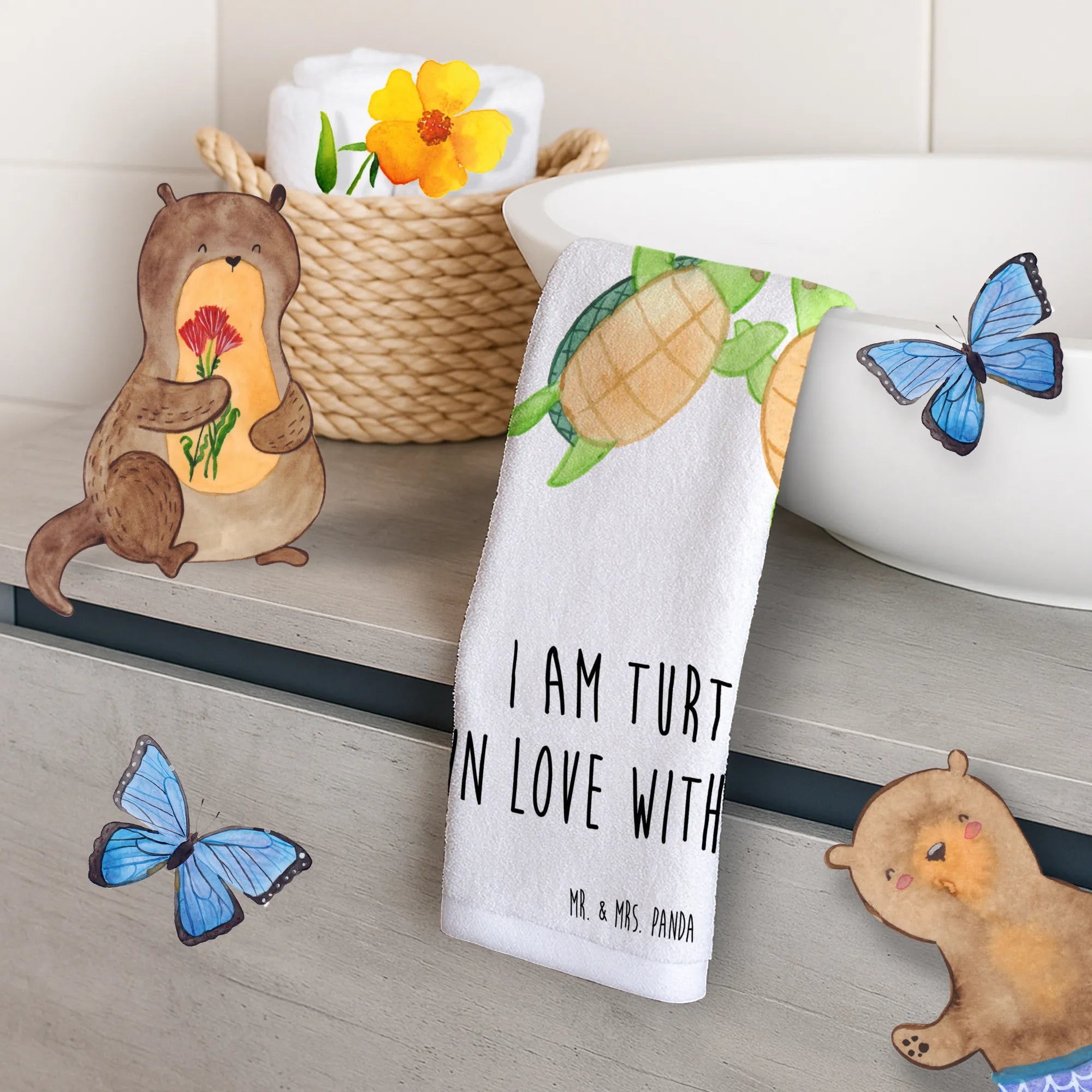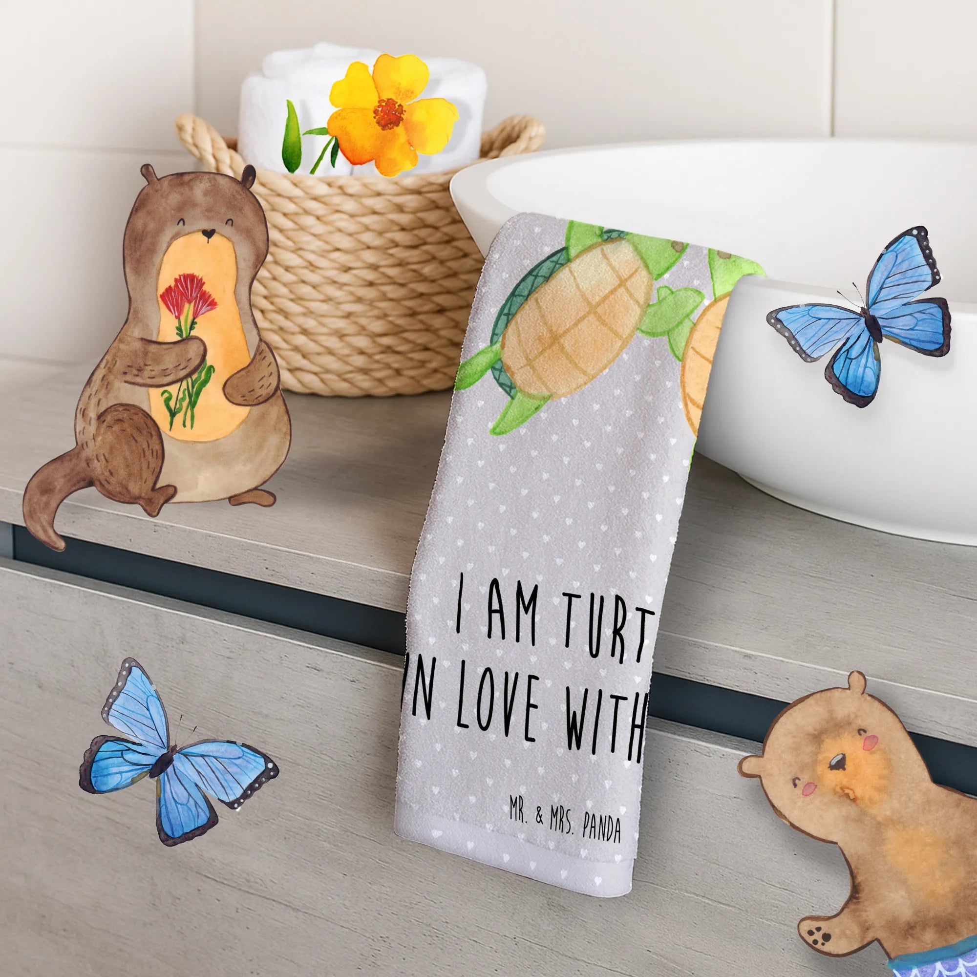 Entdecke das niedliche Gästehandtuch mit dem liebevollen Motiv des Schildkröten Paares aus der Kollektion Liebe von Mr. & Mrs. Panda! Dieses bezaubernde Handtuch ist nicht nur ein praktisches Accessoire für dein Gästebad oder Badezimmer, sondern auch ein äußerst liebevolles Geschenk für deine Liebsten.