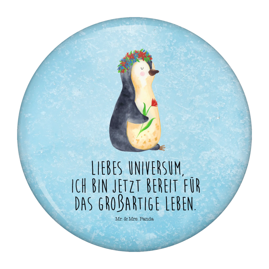 50mm Guzik pingwin kwiaty - z napisem - lodowoniebieski