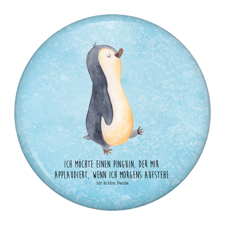 50mm Guzik Pingwin maszerować - z napisem - lodowoniebieski