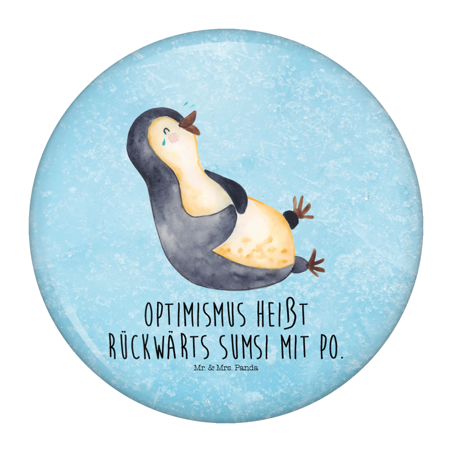 50mm Guzik pingwin Śmiech - z napisem - lodowoniebieski