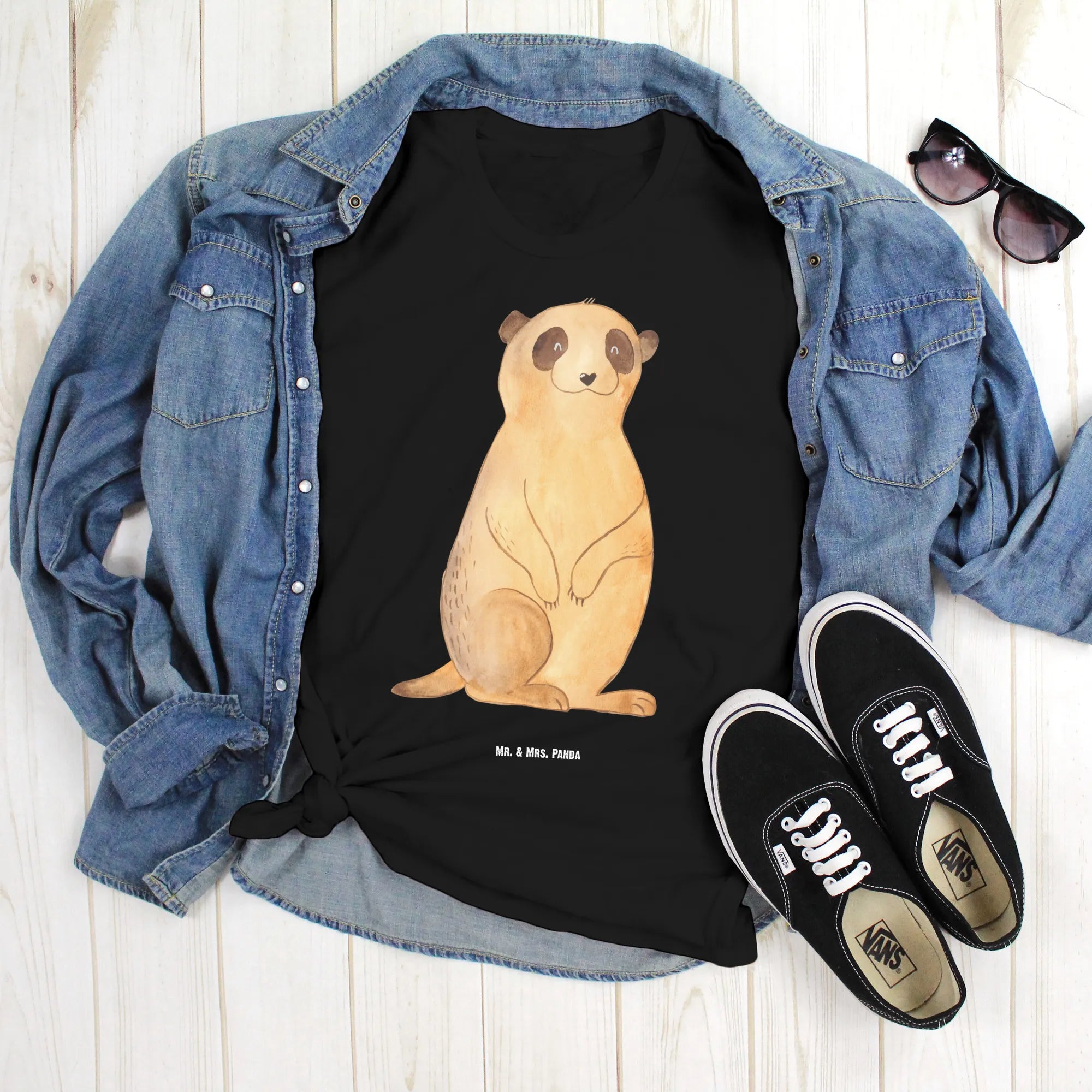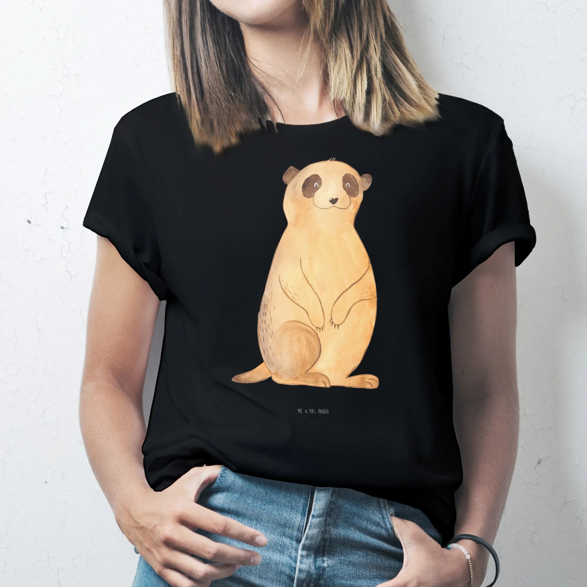 Rozmiar M T-shirt Surikatka - Größe L T-Shirt - z napisem - biały