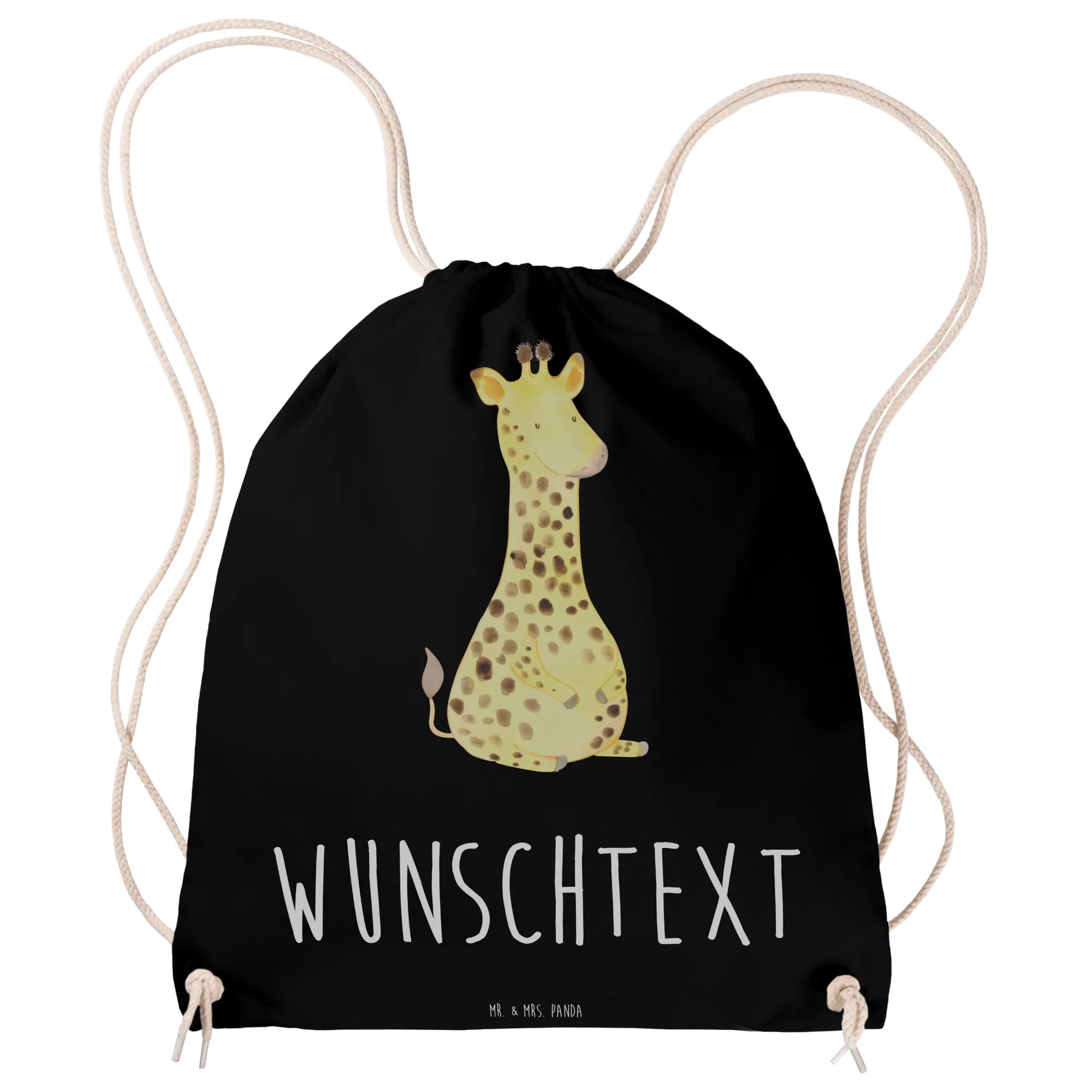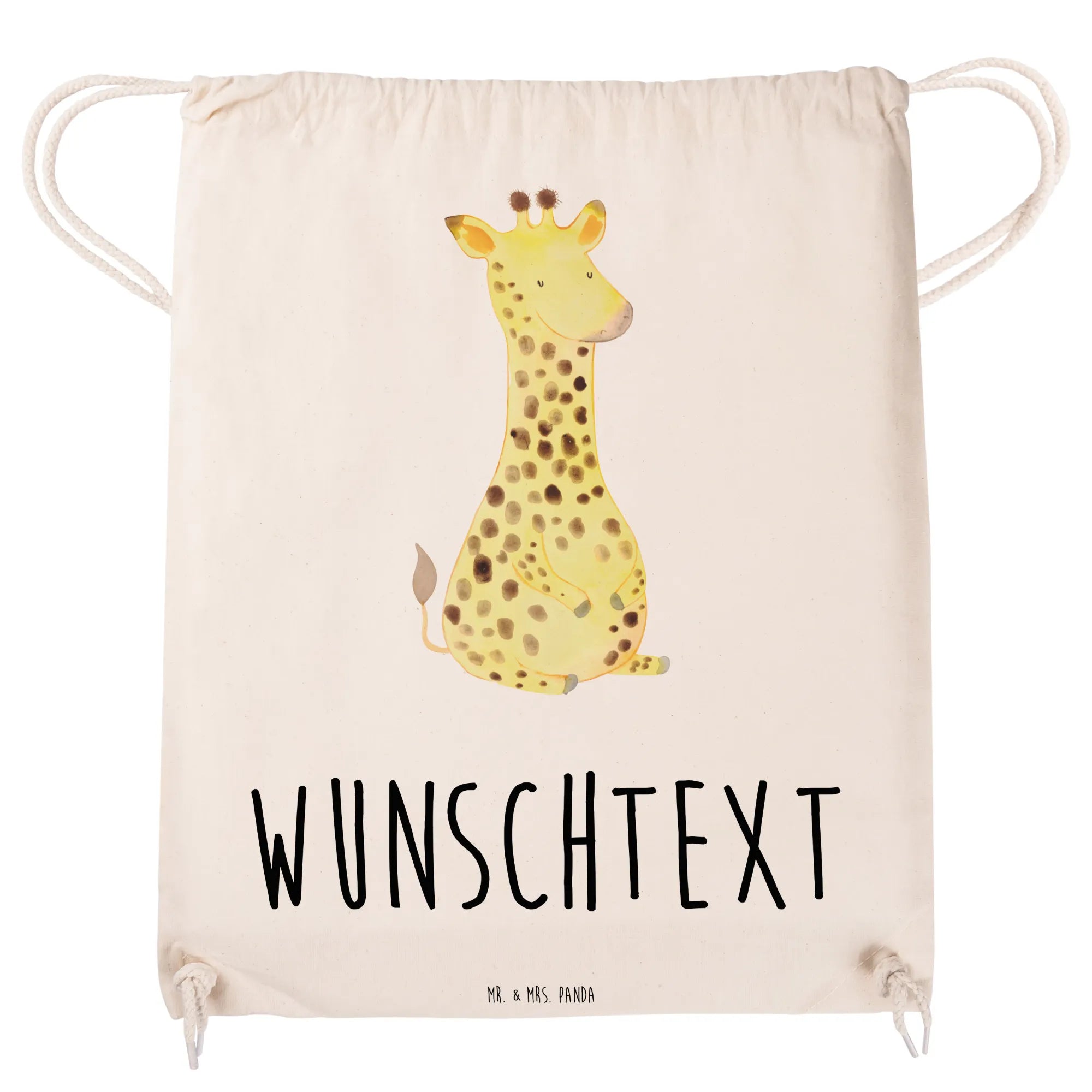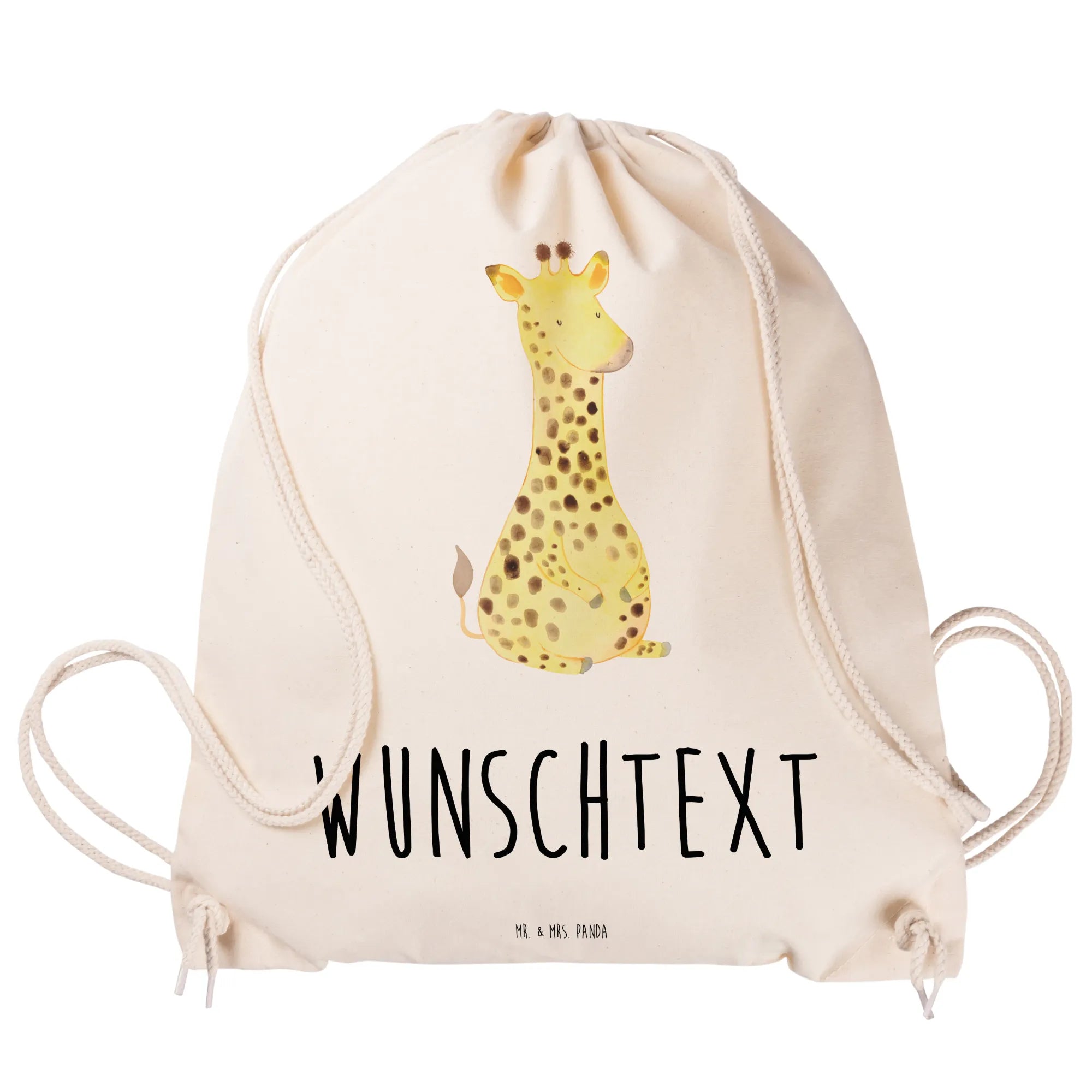 Personalisierter Sportbeutel „Giraffe Zufrieden“ – ein Freund fürs Leben und für jeden Tag. Die liebevoll von Mrs. Panda handgezeichnete Giraffe strahlt Ruhe und Glück aus und macht den Turnbeutel zu einem besonderen Begleiter für Schule, Sport, Festivals und Ausflüge. 😊