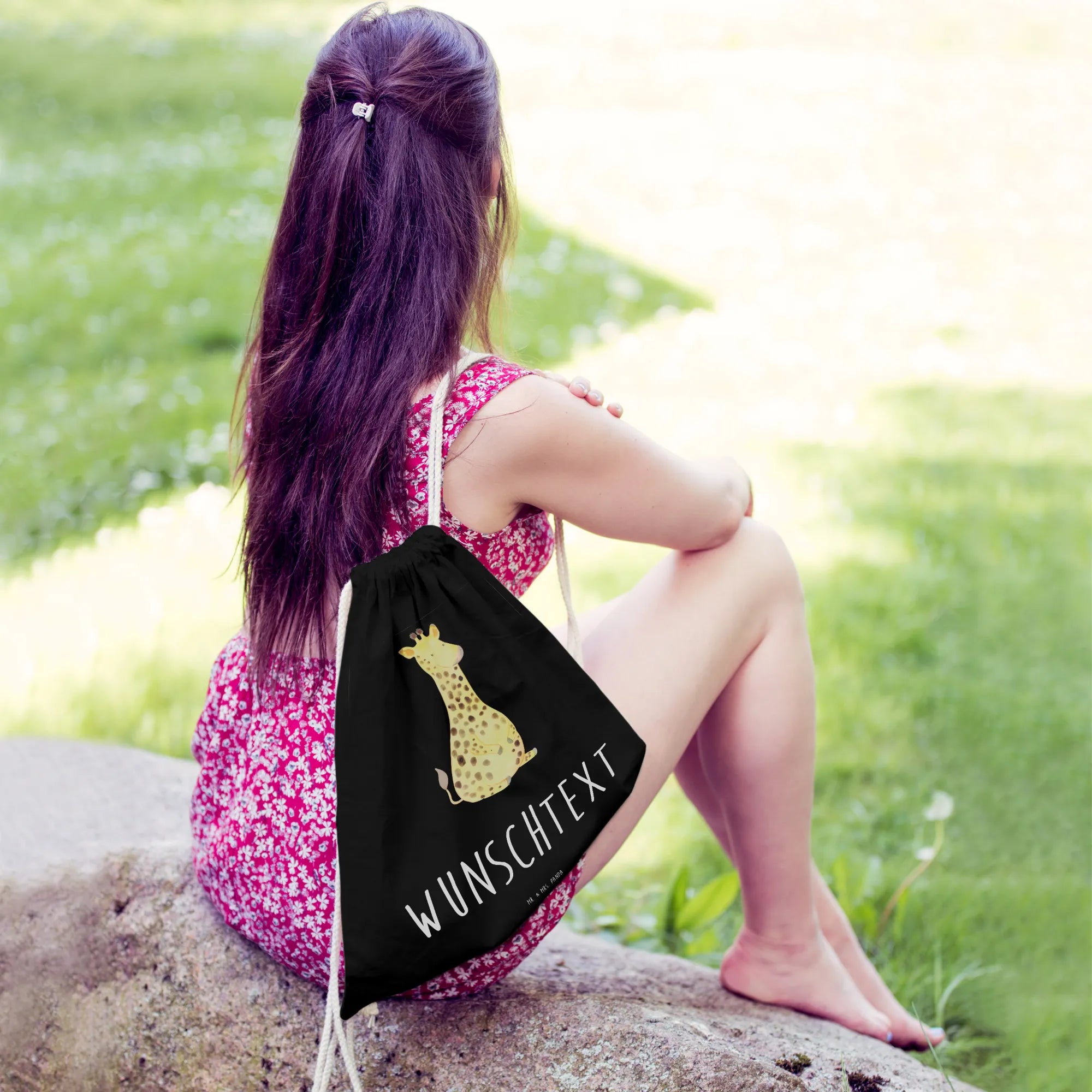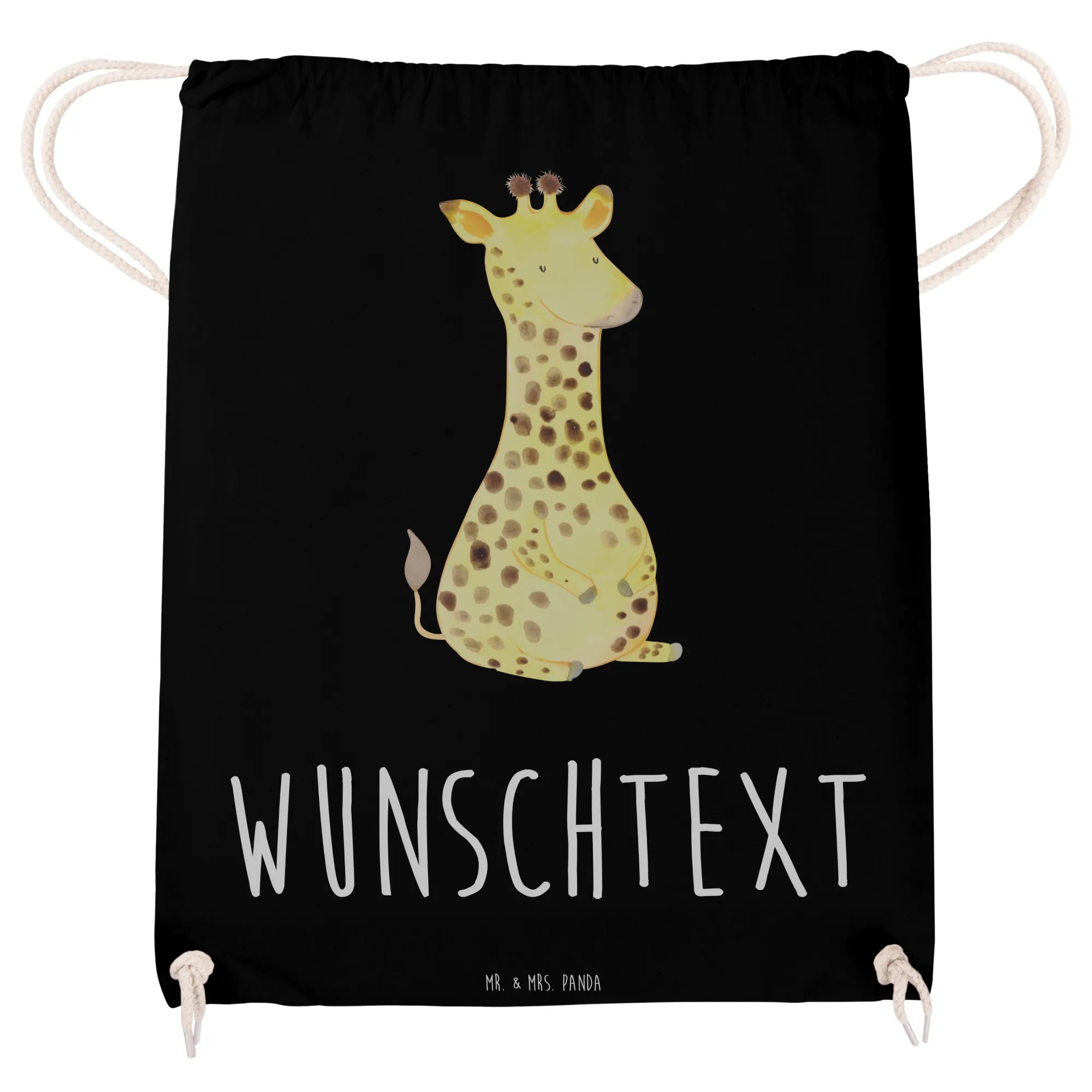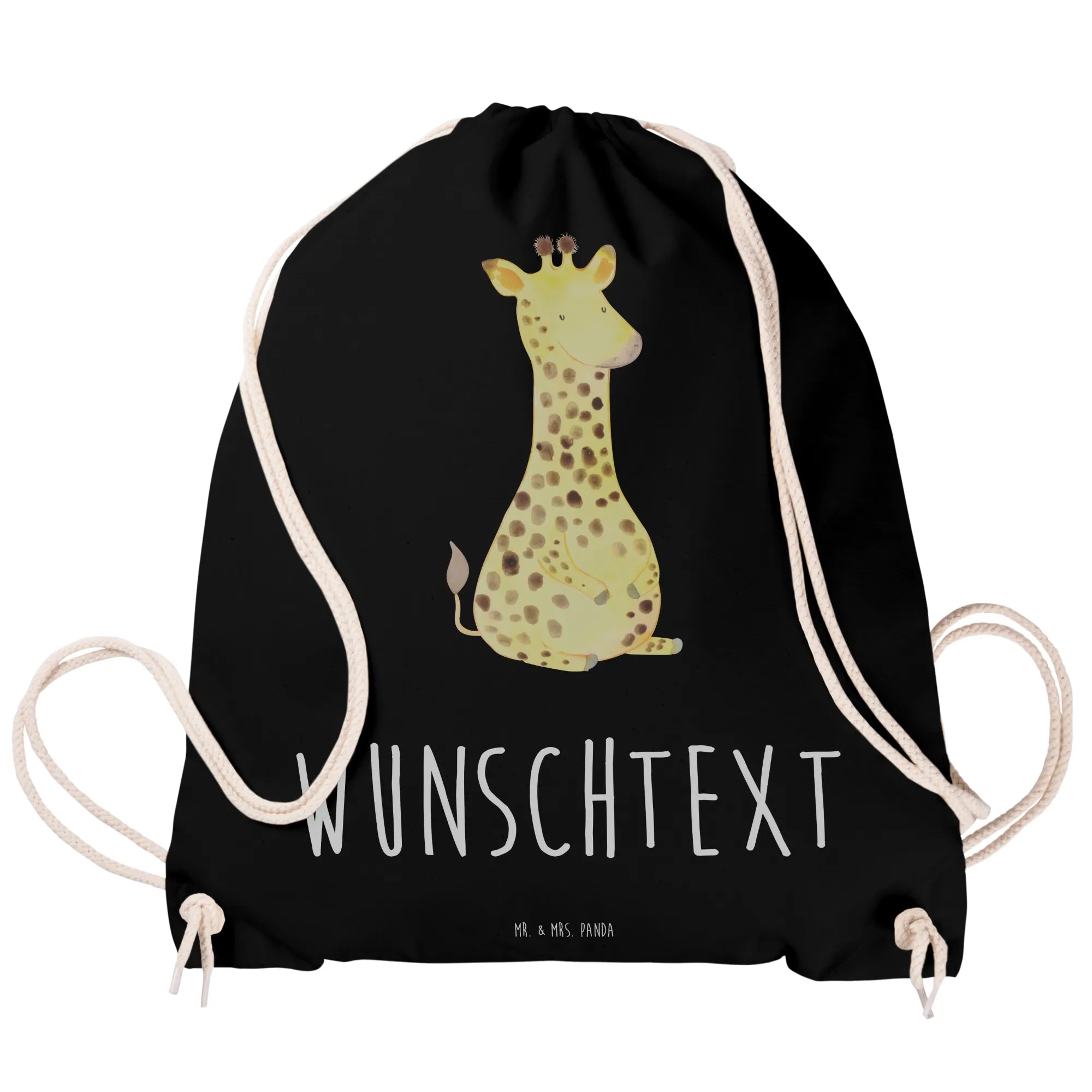 Personalisierter Sportbeutel „Giraffe Zufrieden“ – ein Freund fürs Leben und für jeden Tag. Die liebevoll von Mrs. Panda handgezeichnete Giraffe strahlt Ruhe und Glück aus und macht den Turnbeutel zu einem besonderen Begleiter für Schule, Sport, Festivals und Ausflüge. 😊