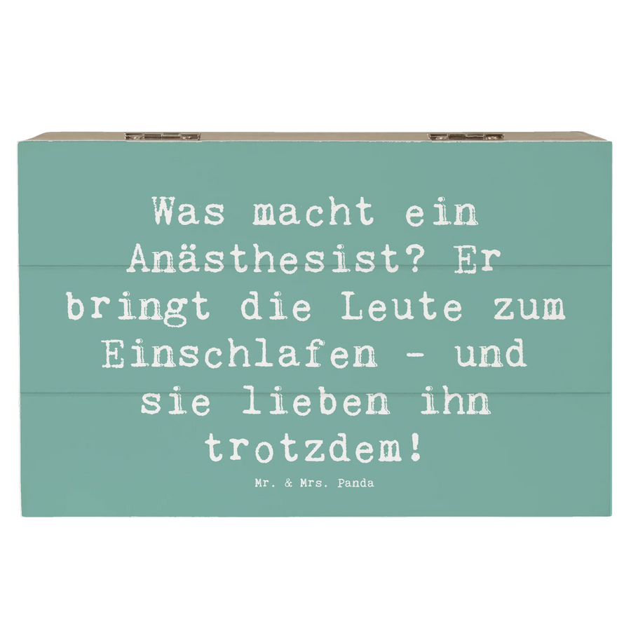 Holzkiste Spruch Was macht ein Anästhesist? Er bringt die Leute zum Einschlafen - und sie lieben ihn trotzdem! - 19 x 12 cm - Meeresbrise