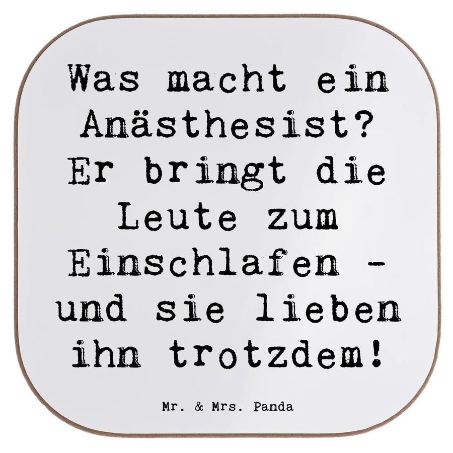 Untersetzer Spruch Was macht ein Anästhesist? Er bringt die Leute zum Einschlafen - und sie lieben ihn trotzdem! - Weiß