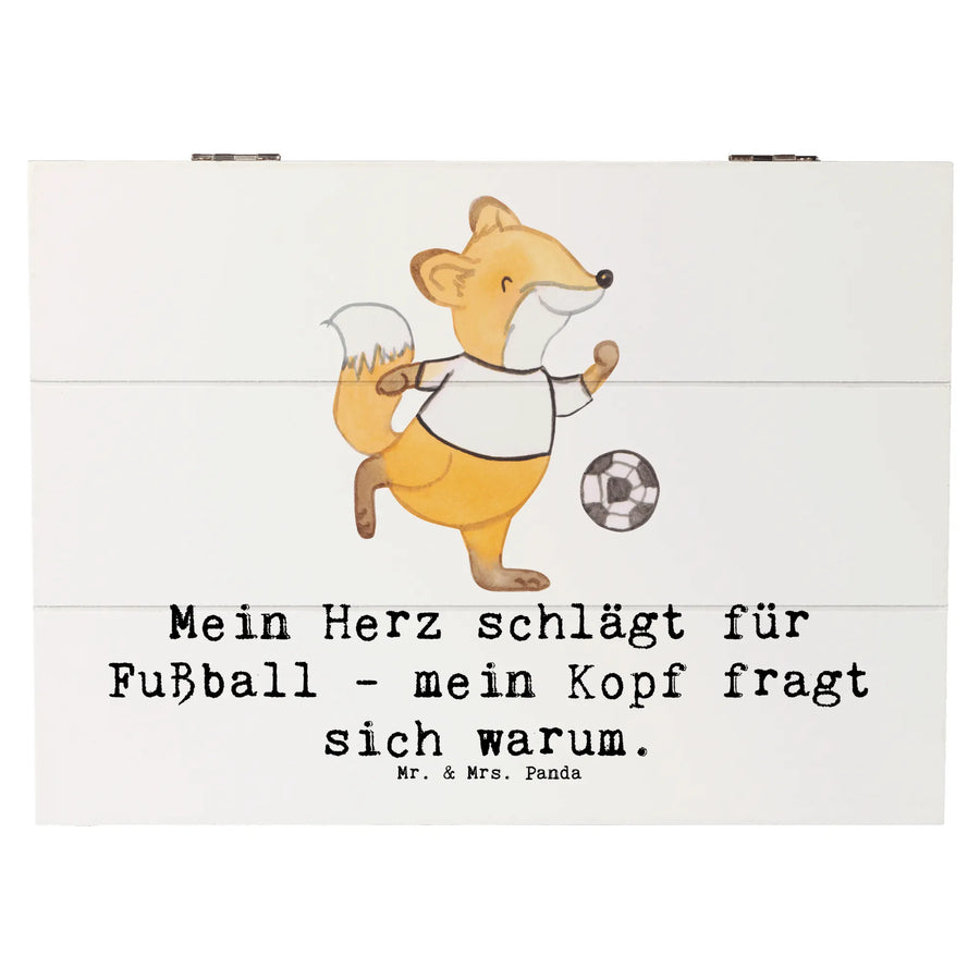 Holzkiste Fußball von Mr. & Mrs. Panda – Das perfekte Geschenk für alle Fußballfans! Mit dem liebevollen Motiv und dem frechen Spruch „Mein Herz schlägt für Fußball - mein Kopf fragt sich warum.“ wird diese Aufbewahrungsbox Holz zum Lieblingsstück in Kinderzimmern, Vereinsheimen und Wohnzimmern.