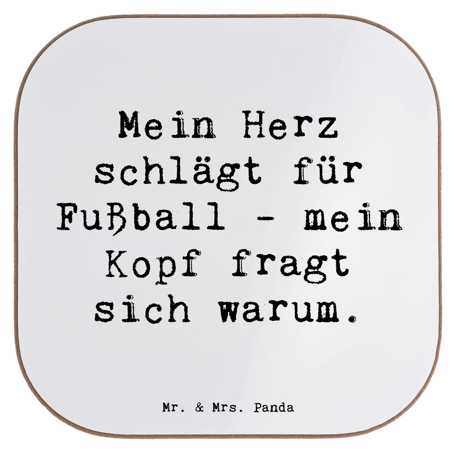 Ein wunderschöner quadratischer Untersetzer von Mr. & Mrs. Panda, bedruckt mit dem charmanten Spruch „Mein Herz schlägt für Fußball - mein Kopf fragt sich warum.“ Dieser Untersetzer aus unserer Sportarten-Kollektion ist das perfekte kleine Geschenk für alle Fußballfans – ob als Untersetzer Glas, Untersetzer Tasse oder Becheruntersetzer, der Spruch zaubert auf jedem Tisch ein Schmunzeln.