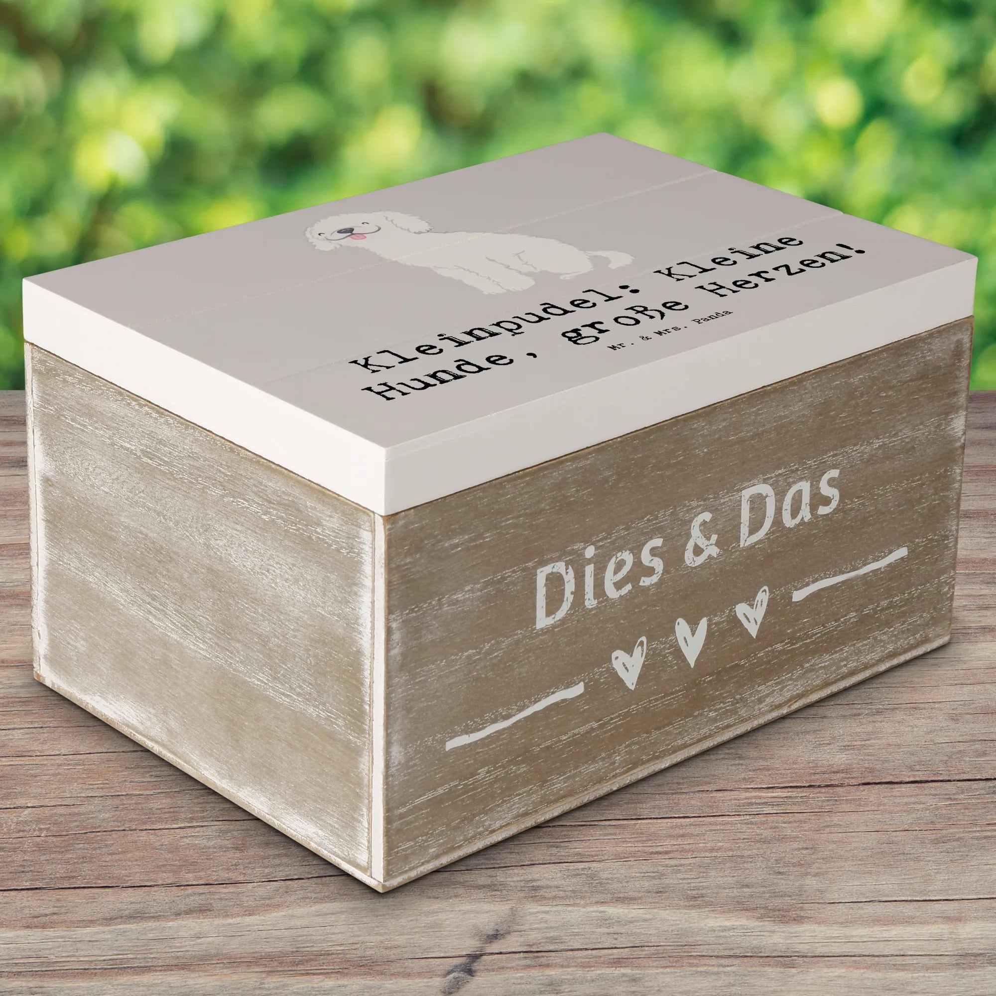 Die Holzkiste zum Thema Kleinpudel von Mr. & Mrs. Panda ist das perfekte Geschenk für alle Hundeliebhaber und Pudel-Fans! Mit ihrer liebevollen Gestaltung und dem Spruch "Kleinpudel: Kleine Hunde, große Herzen!" bringt diese Kiste ein Stück Lebensfreude in jedes Zuhause. Die Kiste misst 19 x 12 cm und ist aus robuster Holzfaser gefertigt, weshalb sie sich hervorragend als Aufbewahrungsort für wertvolle Erinnerungen eignet.