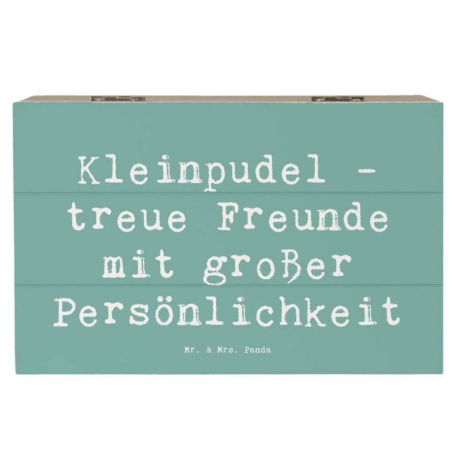 Die wunderschöne Holzkiste von Mr. & Mrs. Panda mit dem Motiv 'Kleinpudel - treue Freunde mit großer Persönlichkeit' ist das perfekte Geschenk für alle Hundefans und die stolzen Besitzer dieser charmanten Hunderasse. Mit einer Größe von 25 x 18 cm ist sie nicht nur ein echter Hingucker, sondern bietet auch jede Menge Platz für all deine Schätze und Erinnerungen. Ob als Aufbewahrungsort für Fotos, Kindheitserinnerungen oder als Dekokiste für besondere Anlässe – diese vielseitige Kiste ist immer ein Hit!