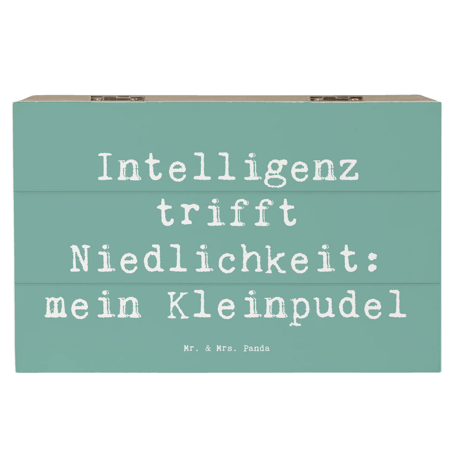 Die wunderschöne Holzkiste von Mr. & Mrs. Panda ist das perfekte Geschenk für alle Kleinpudel-Liebhaber! Mit dem charmanten Slogan "Intelligenz trifft Niedlichkeit: mein Kleinpudel" wird diese Kiste zum absoluten Highlight in jedem Zuhause.